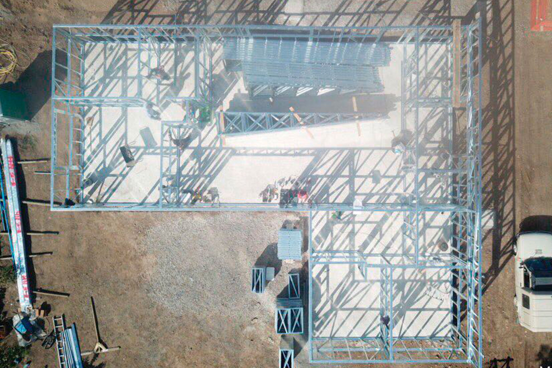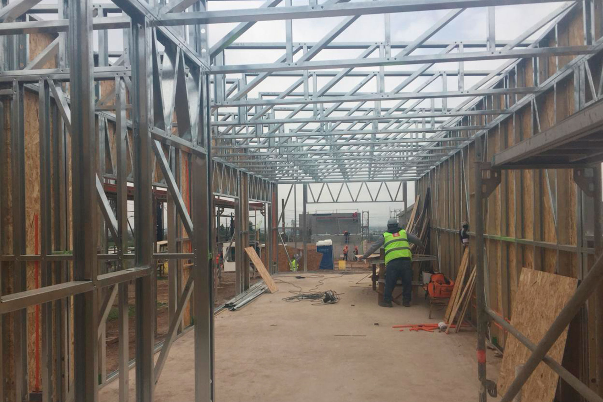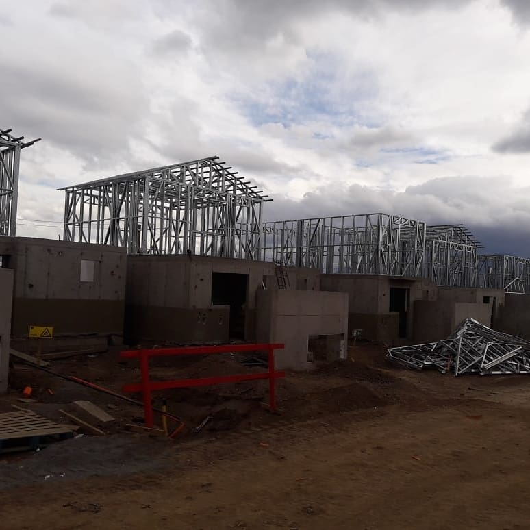 Montaje de nuevas estructuras en Steel Frame, cimentación y avance simultáneo en varios puntos del terreno.