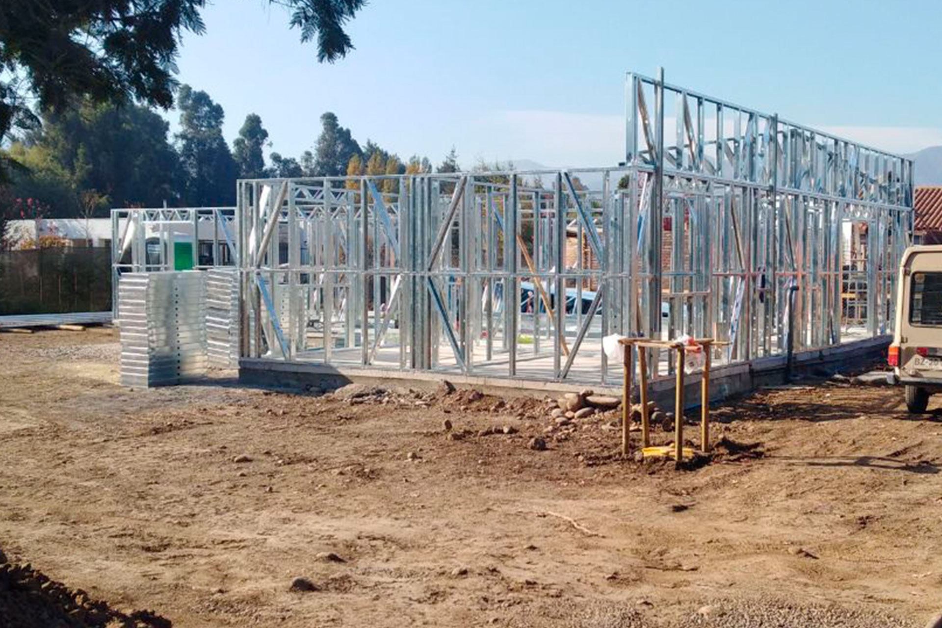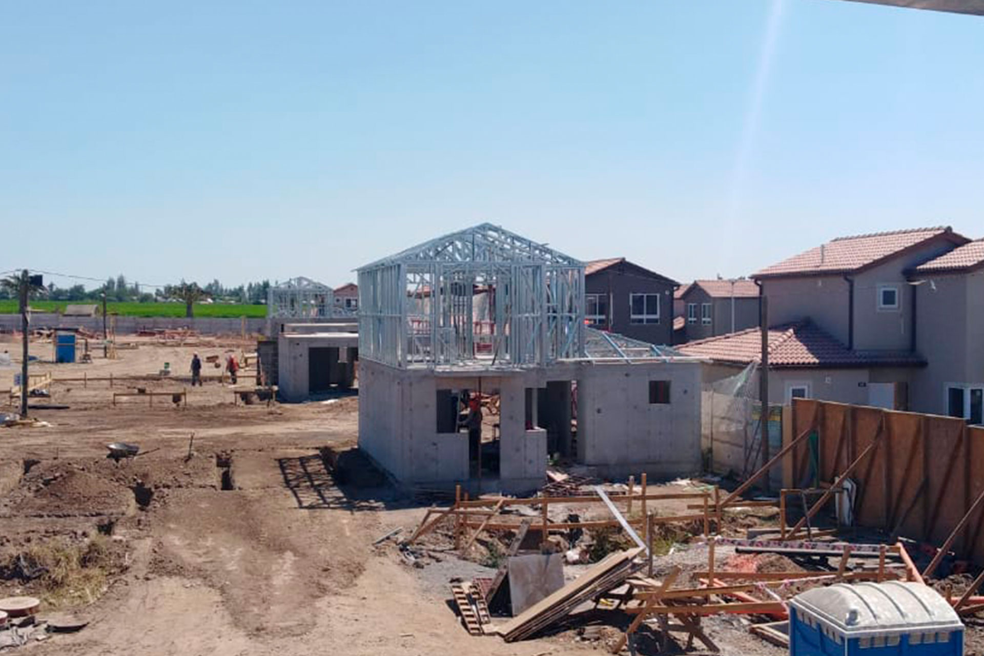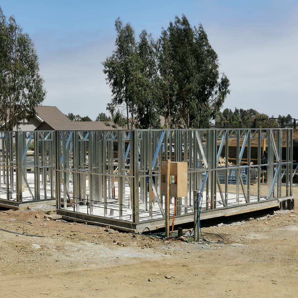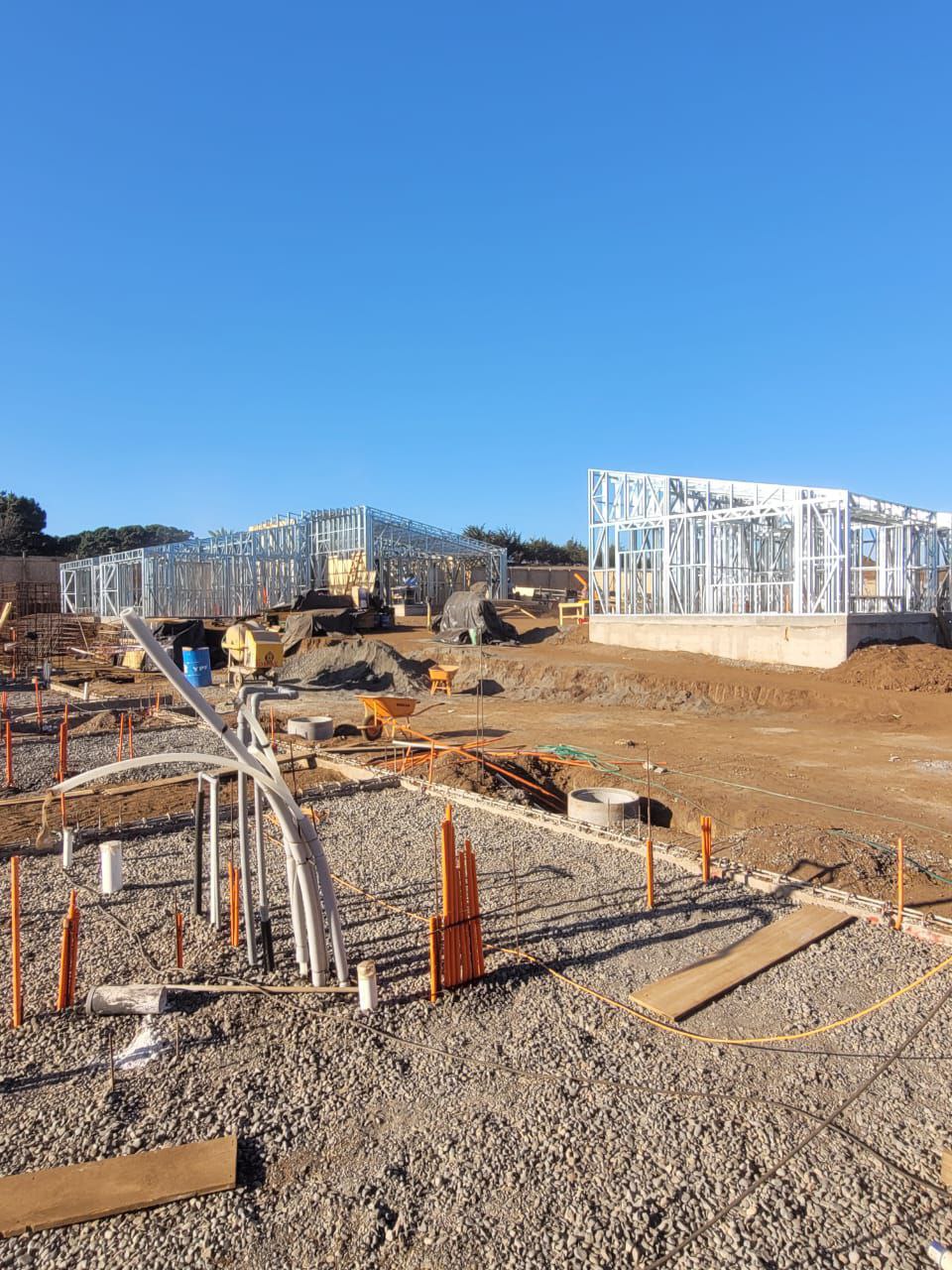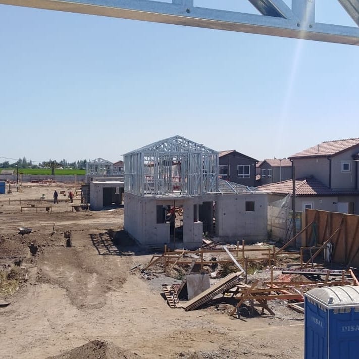 Primera etapa del proyecto habitacional en Bucalemu, utilizando estructura de acero galvanizado tipo Steel Frame.