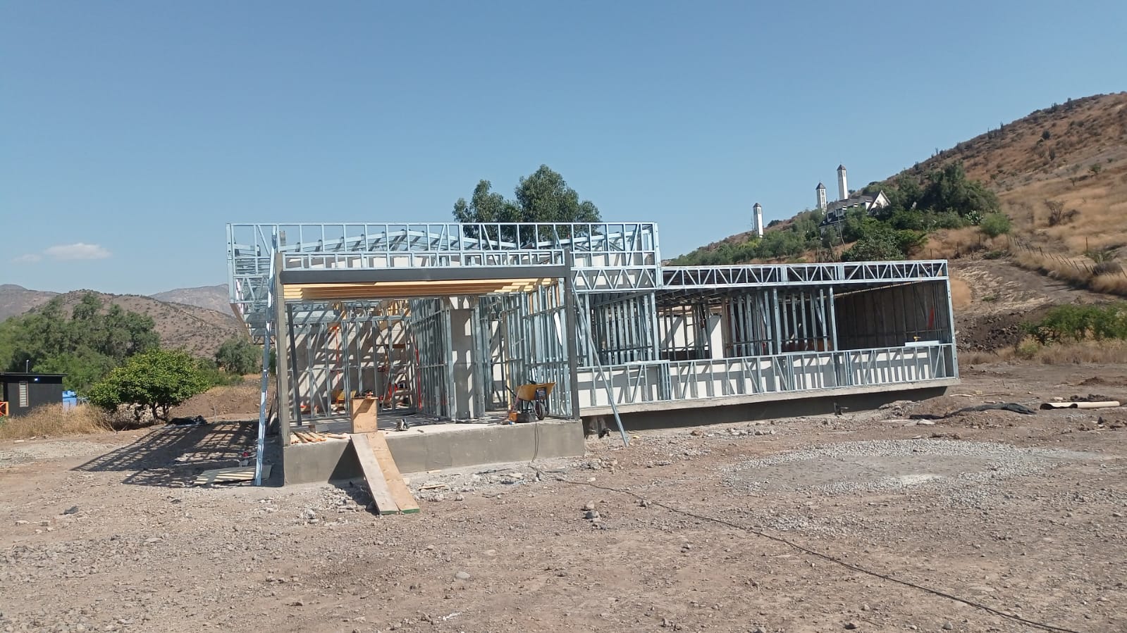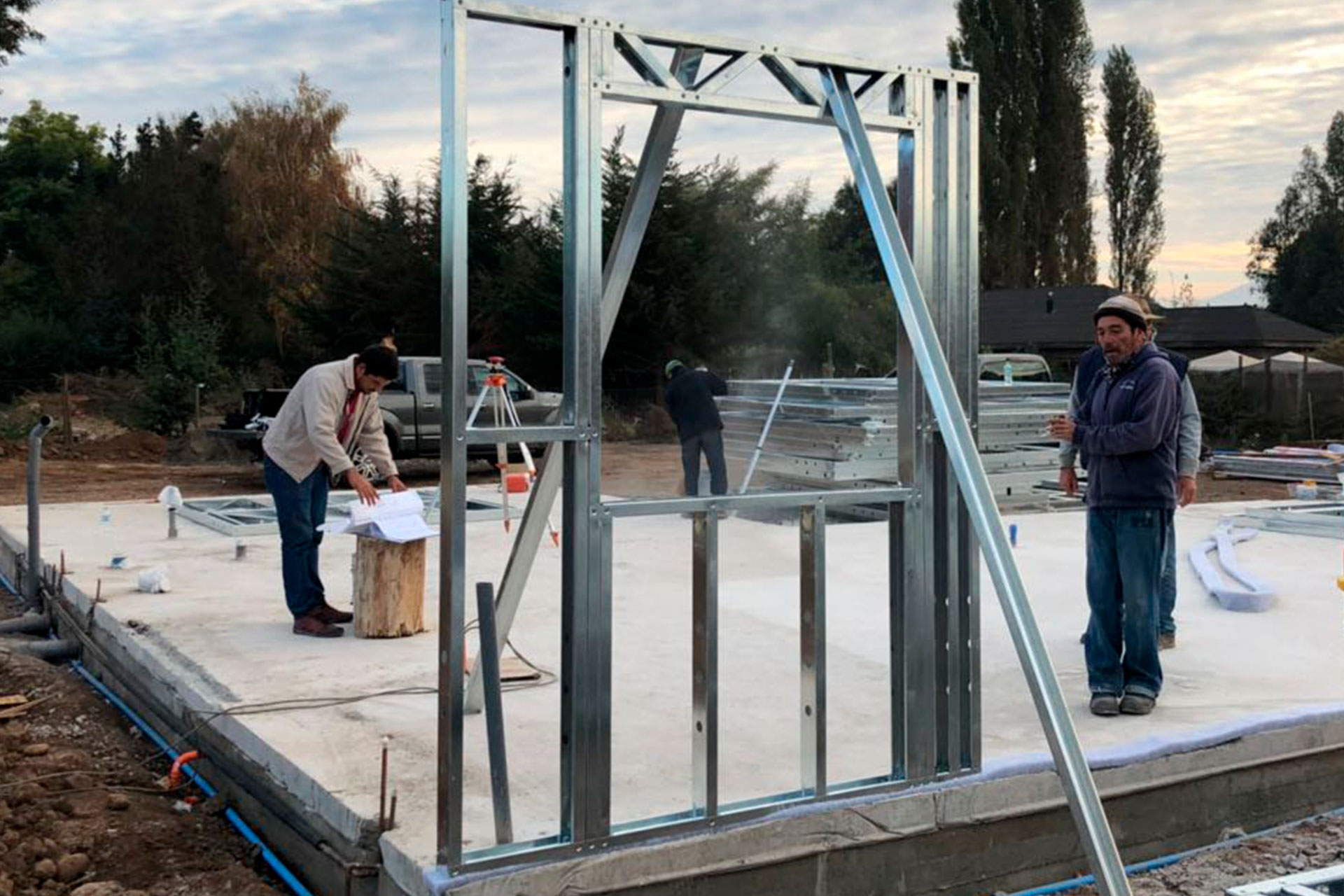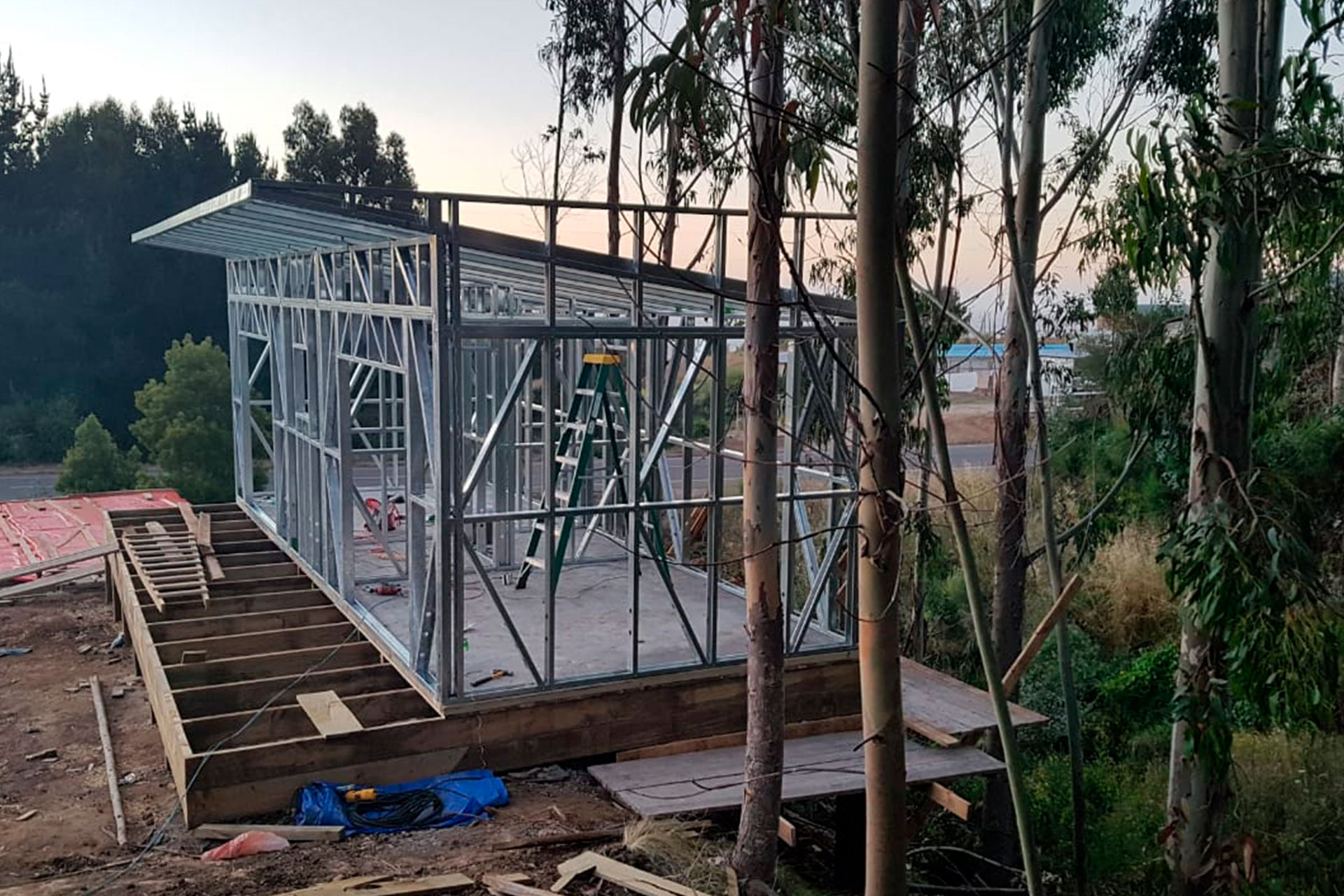 Proyecto de vivienda de 120 m², utilizando estructura de acero liviano tecnificado. La instalación se realizó sobre un radier con pendiente natural del terreno, optimizando el diseño estructural para adaptarse al desnivel. Una solución liviana, resistente y eficiente, ideal para zonas geográficas con topografía irregular.