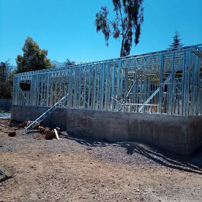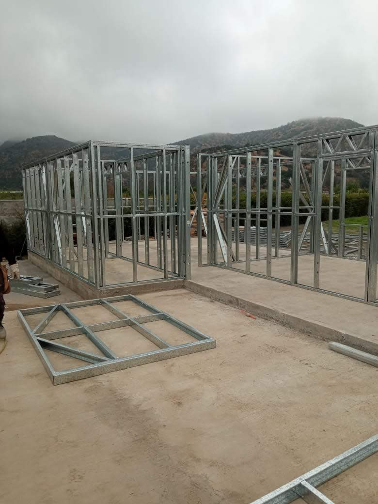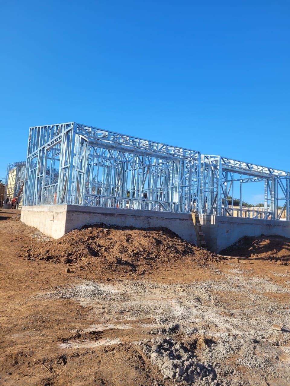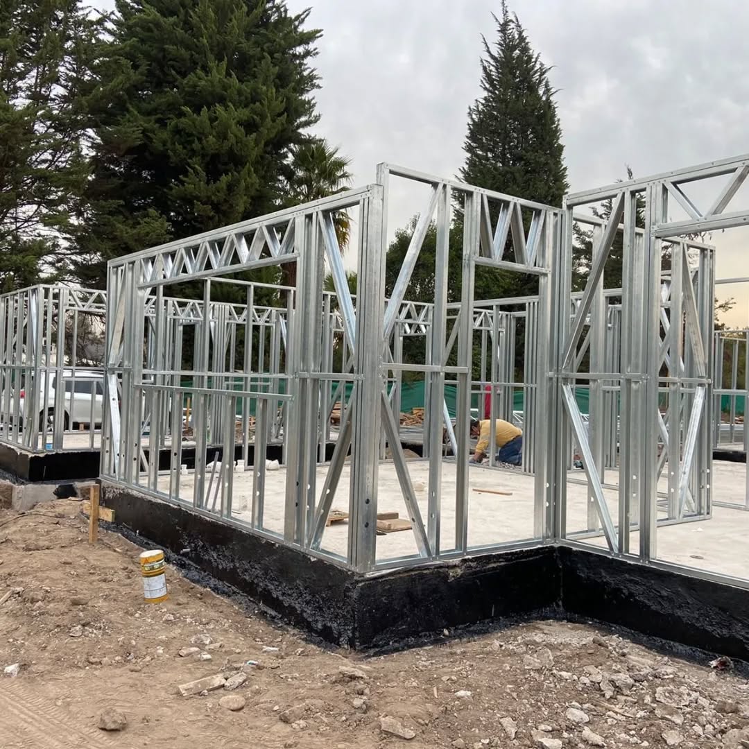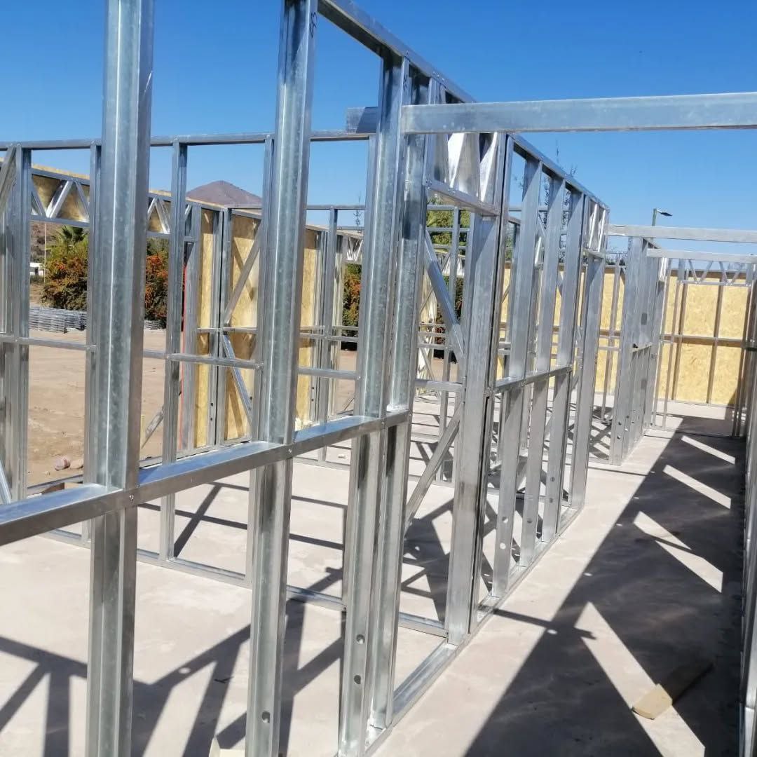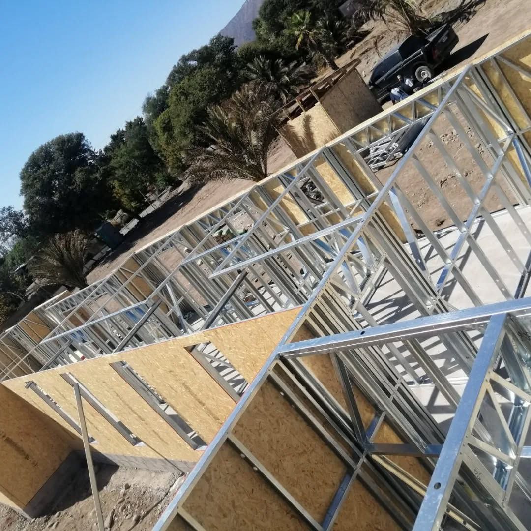 Está construida con perfiles de acero galvanizado tipo Steel Frame, una solución moderna, liviana y duradera, ideal para todo tipo de clima. La estructura ya se encuentra anclada sobre radier y cuenta con división de espacios claramente definidos, listos para recibir cerramientos y terminaciones. Este sistema permite una ejecución limpia, rápida y altamente precisa.