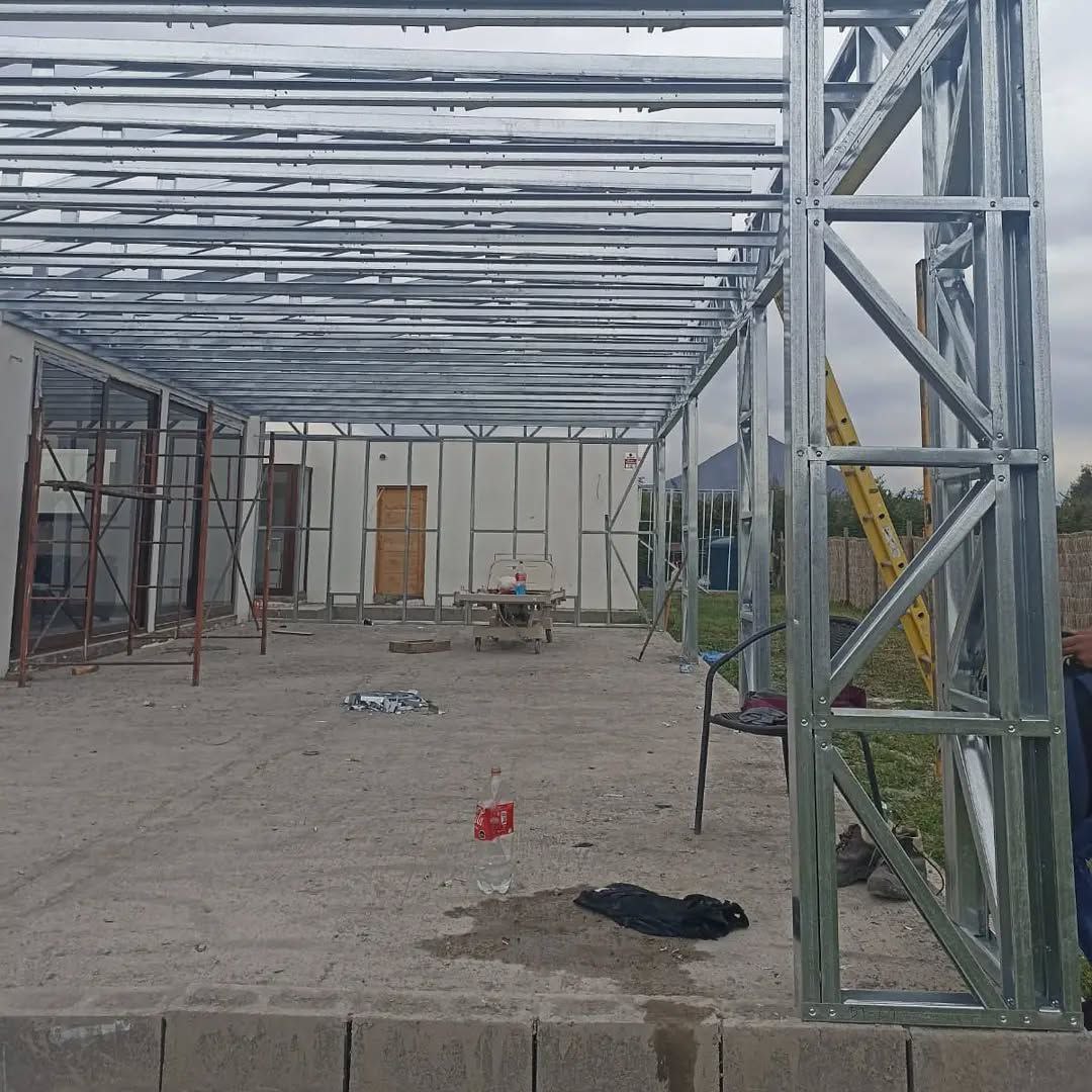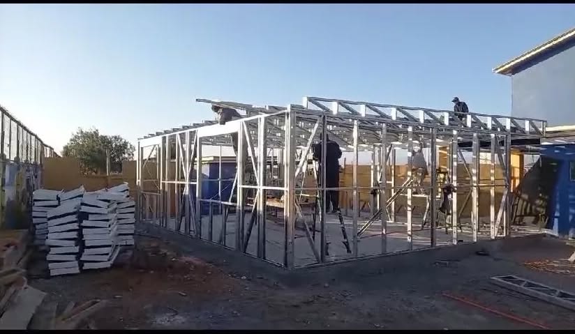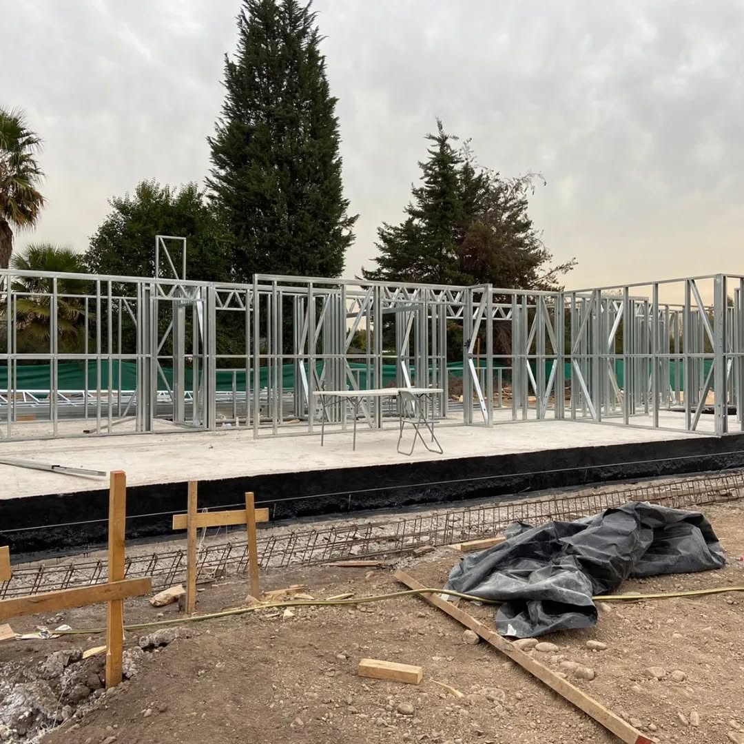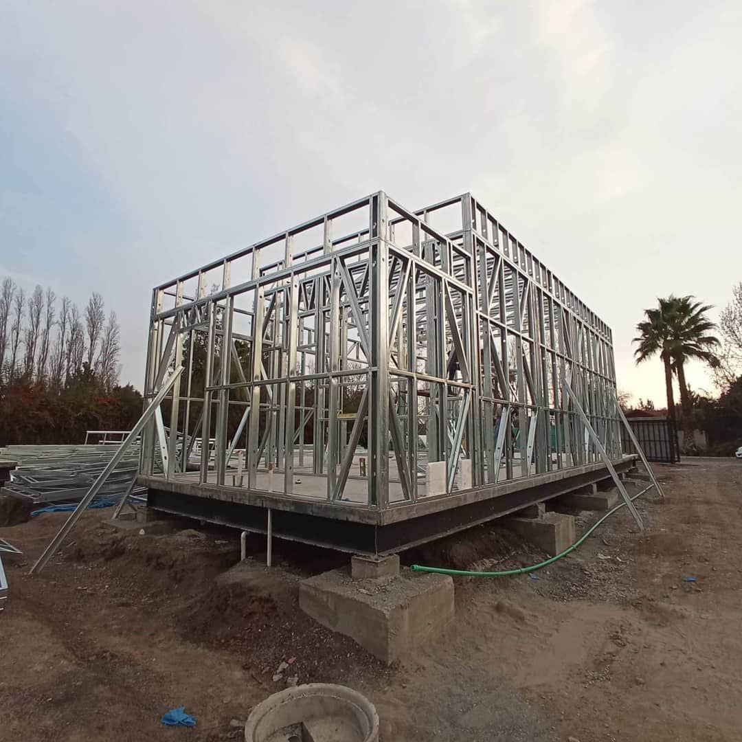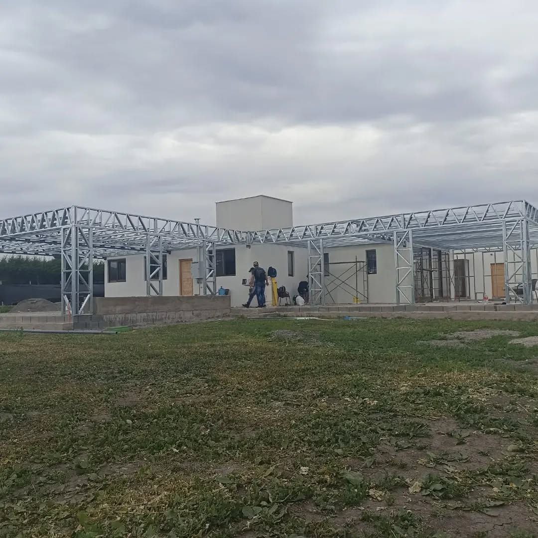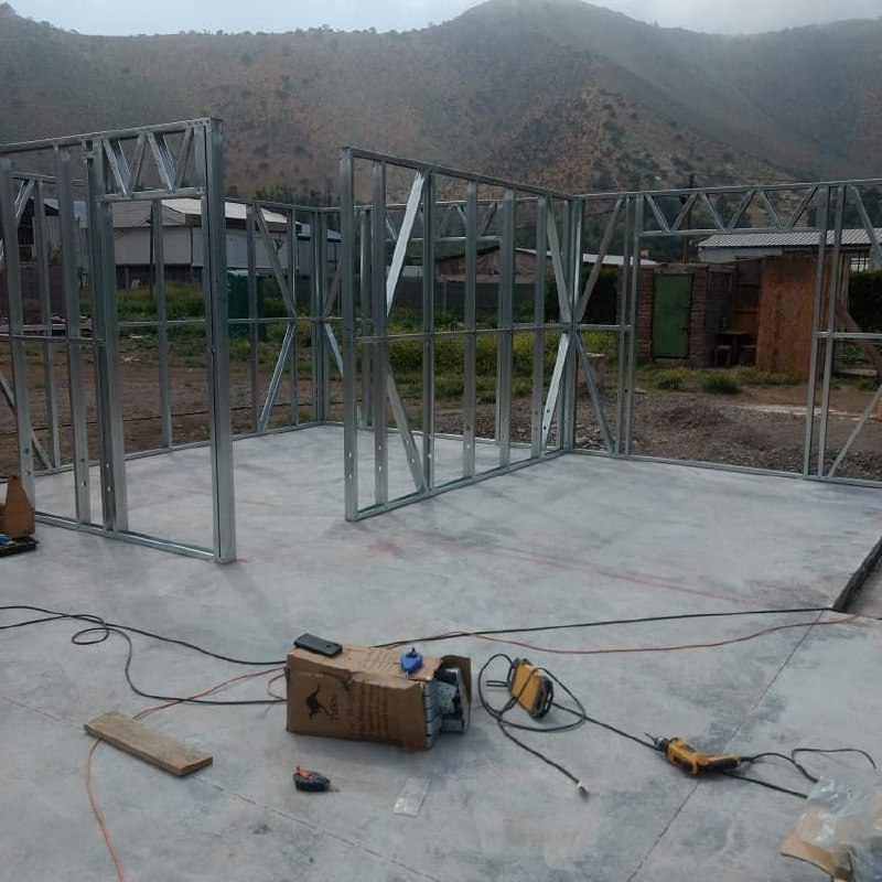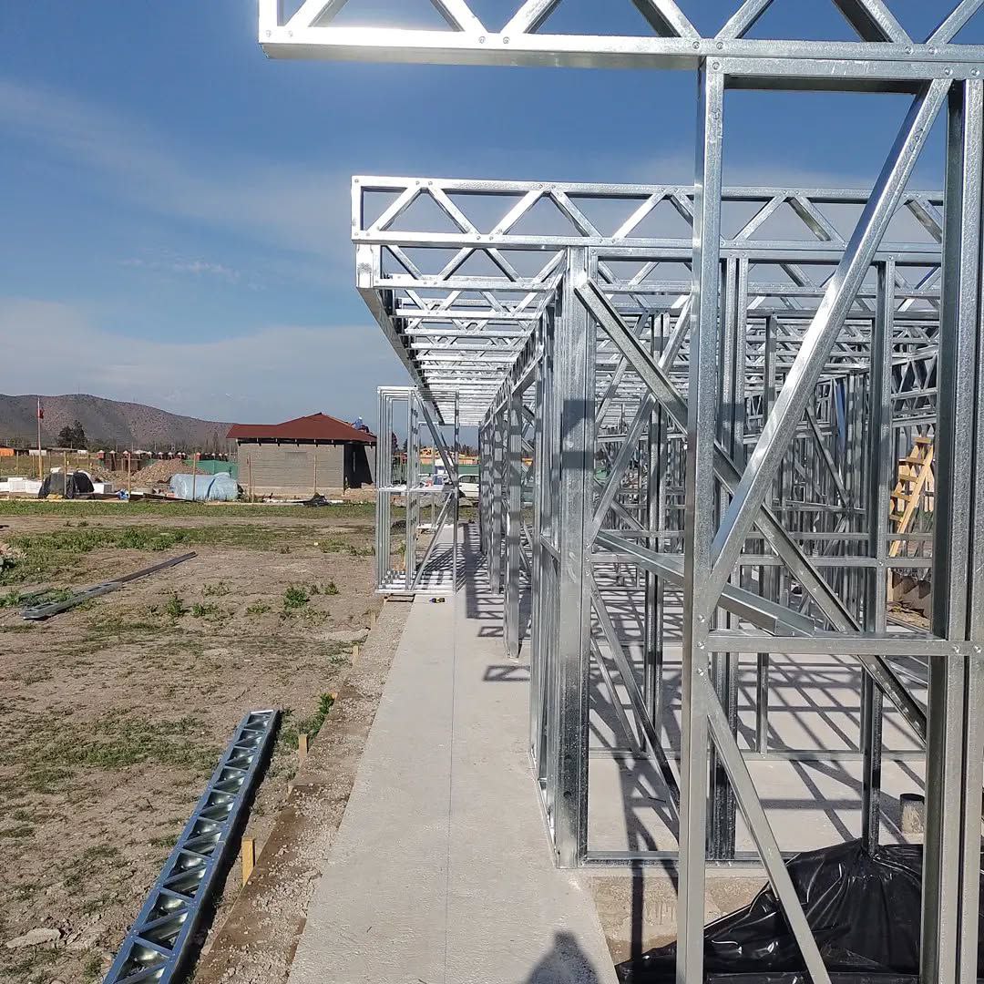 Está construida con perfiles de acero galvanizado tipo Steel Frame, una solución moderna, liviana y duradera, ideal para todo tipo de clima. La estructura ya se encuentra anclada sobre radier y cuenta con división de espacios claramente definidos, listos para recibir cerramientos y terminaciones. Este sistema permite una ejecución limpia, rápida y altamente precisa.
