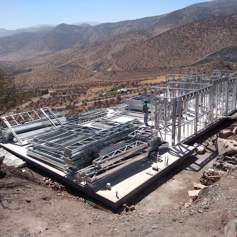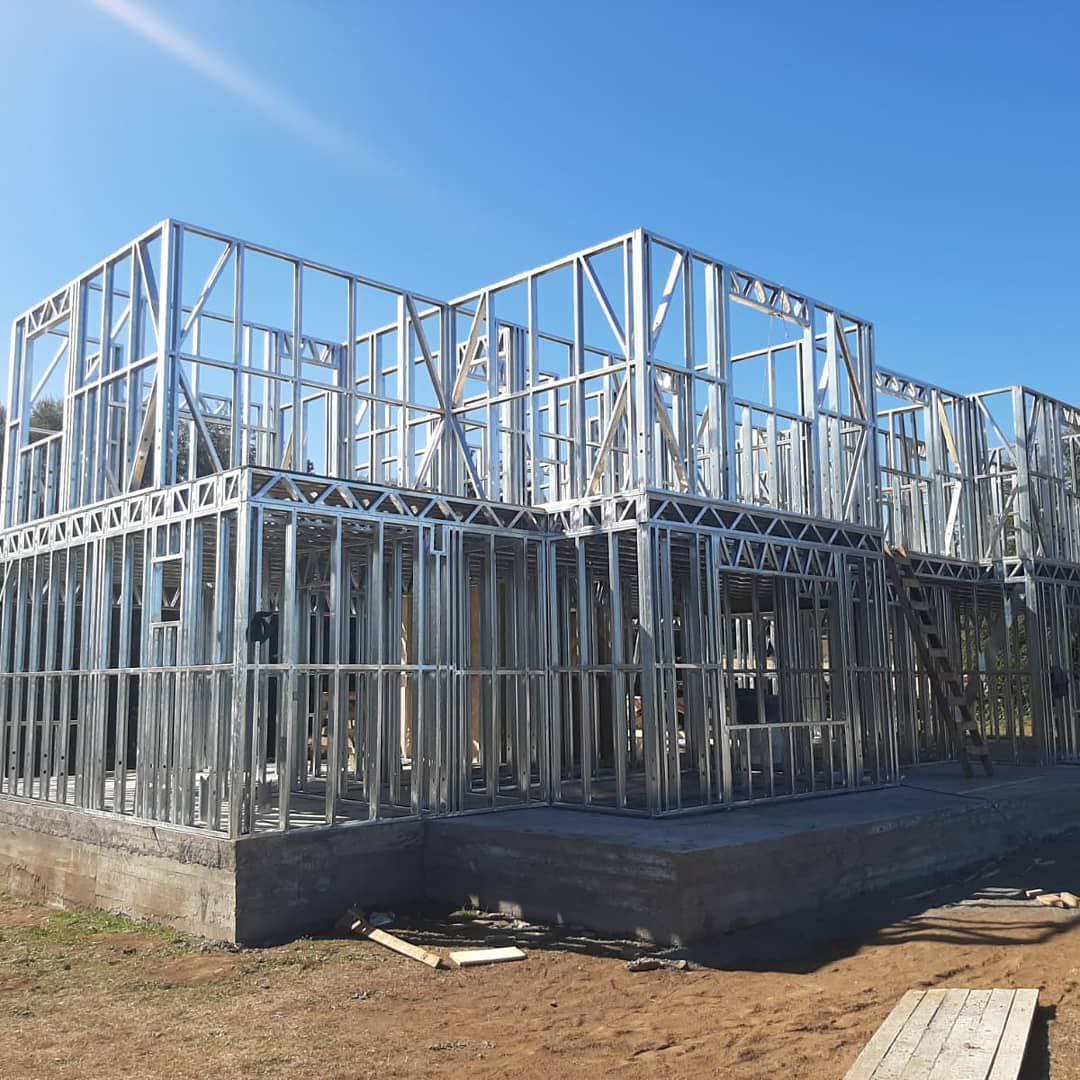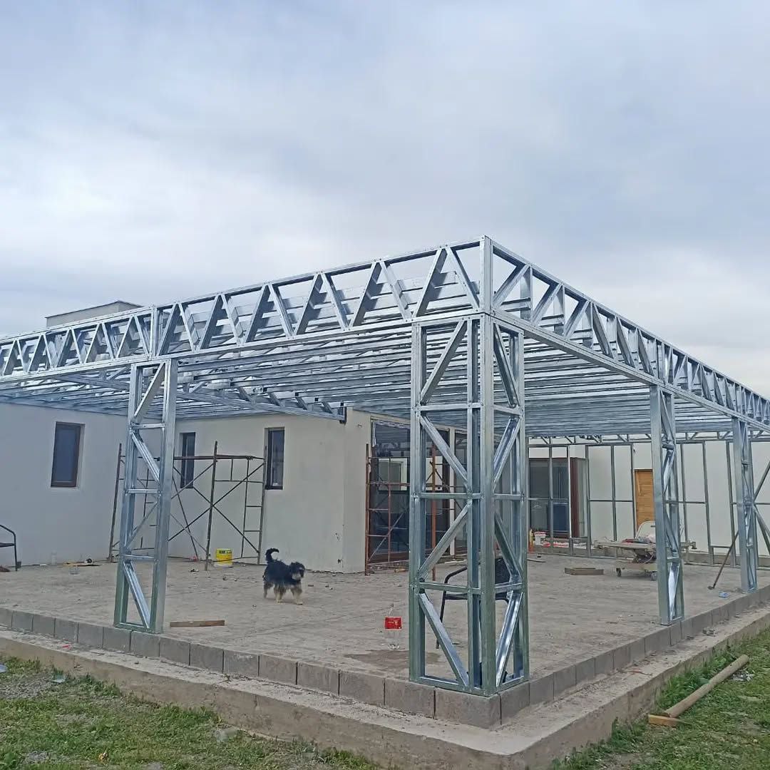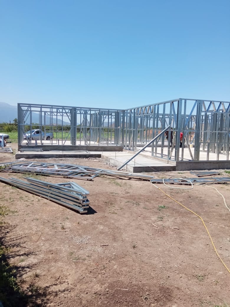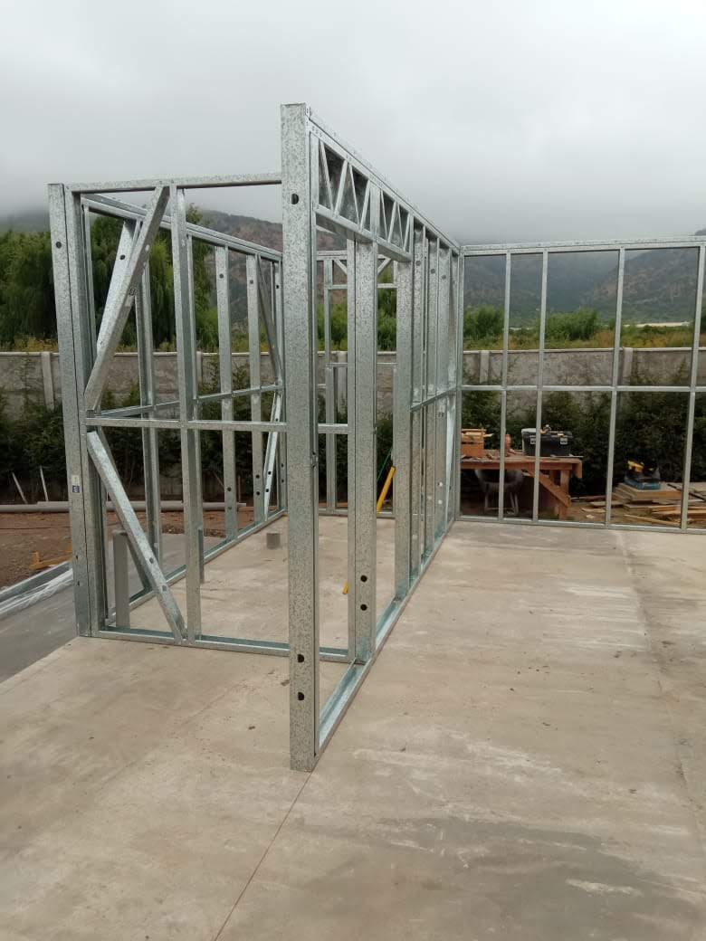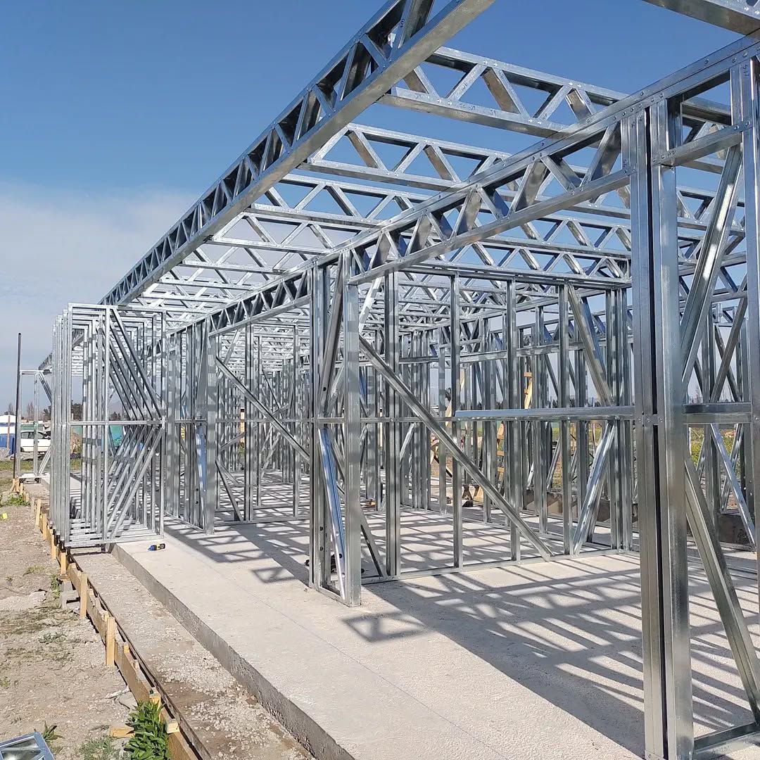 Está construida con perfiles de acero galvanizado tipo Steel Frame, una solución moderna, liviana y duradera, ideal para todo tipo de clima. La estructura ya se encuentra anclada sobre radier y cuenta con división de espacios claramente definidos, listos para recibir cerramientos y terminaciones. Este sistema permite una ejecución limpia, rápida y altamente precisa.