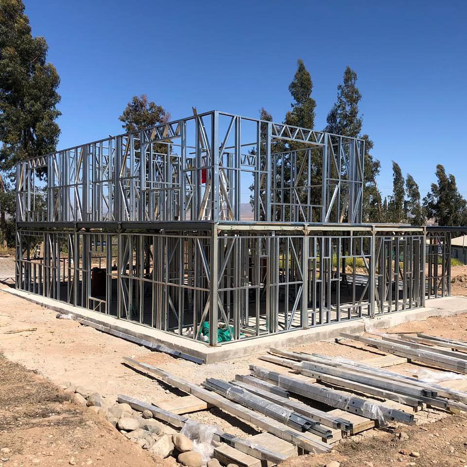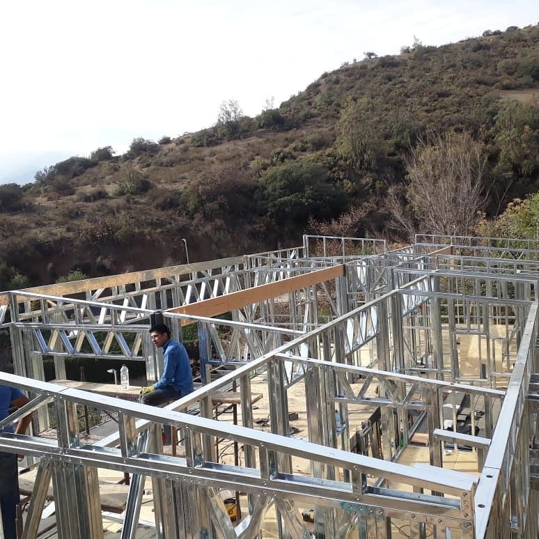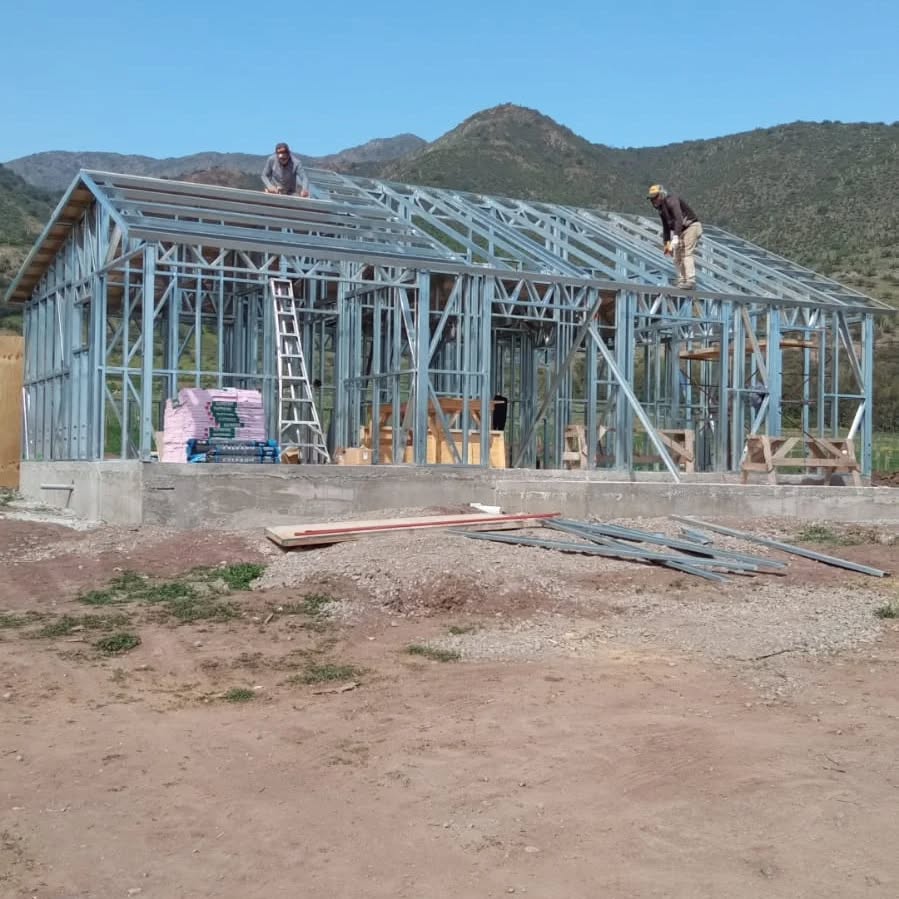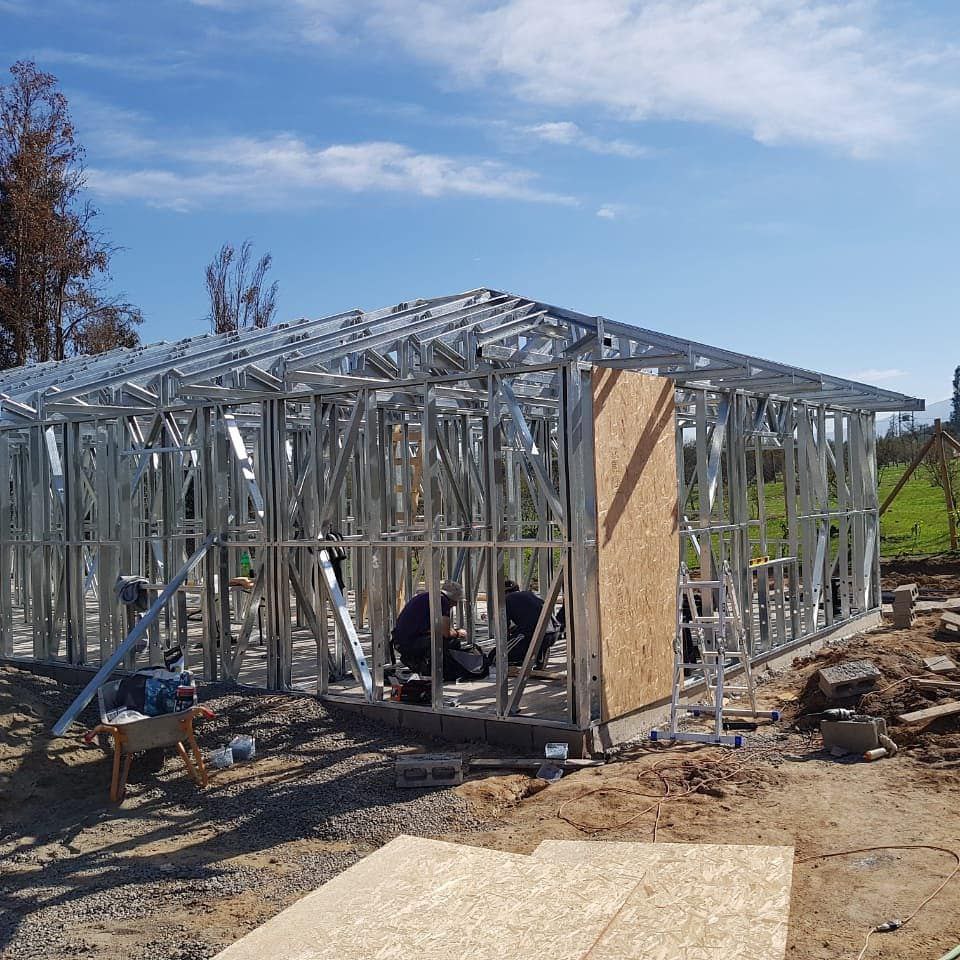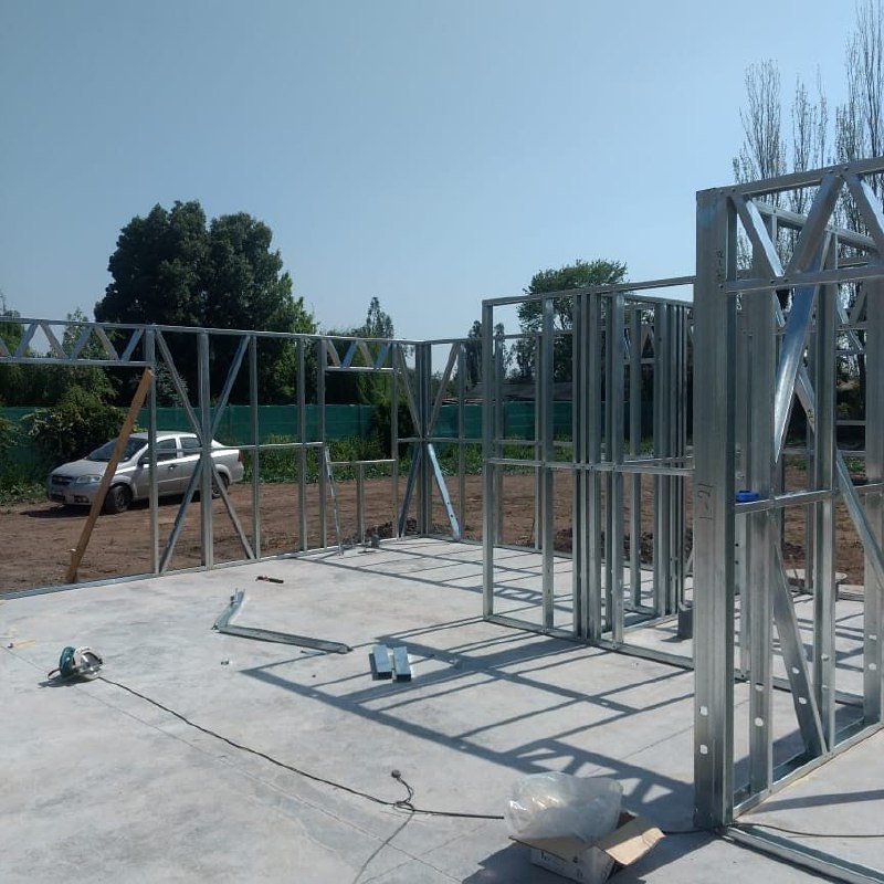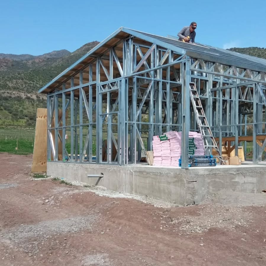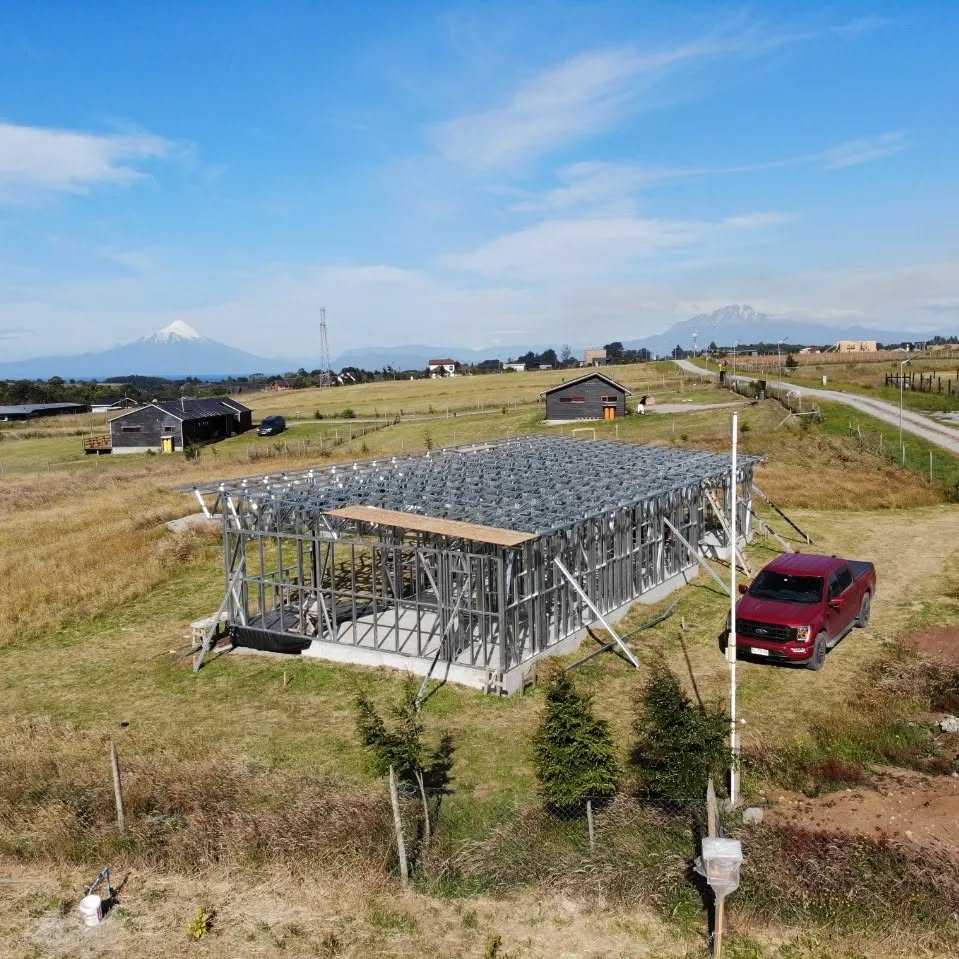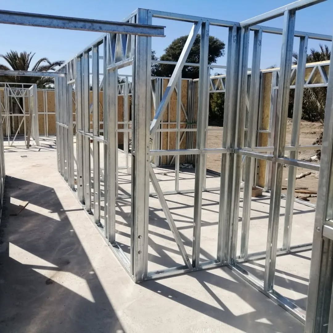 Está construida con perfiles de acero galvanizado tipo Steel Frame, una solución moderna, liviana y duradera, ideal para todo tipo de clima. La estructura ya se encuentra anclada sobre radier y cuenta con división de espacios claramente definidos, listos para recibir cerramientos y terminaciones. Este sistema permite una ejecución limpia, rápida y altamente precisa.
