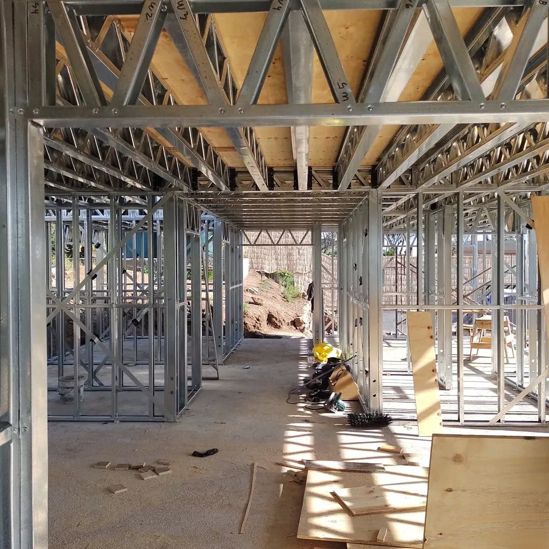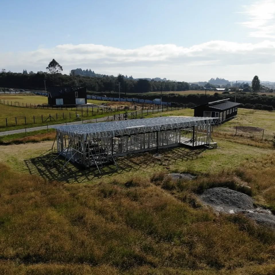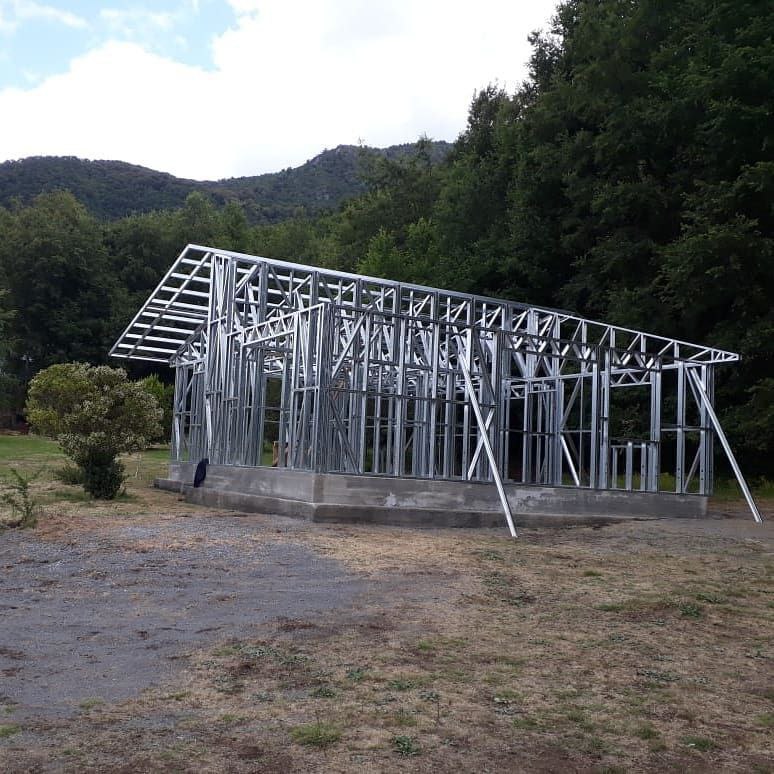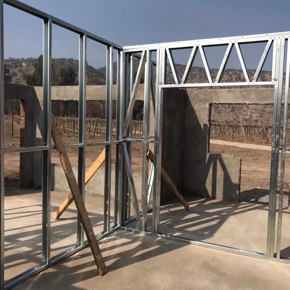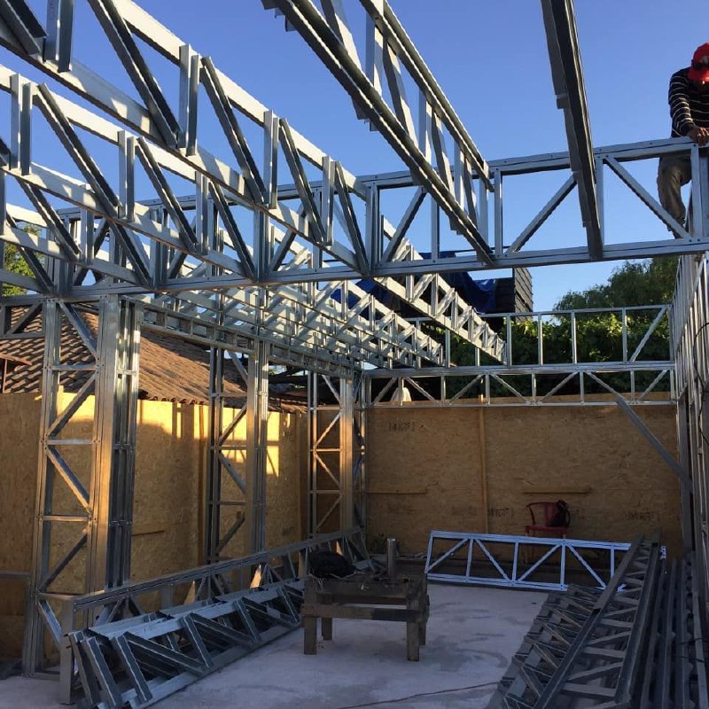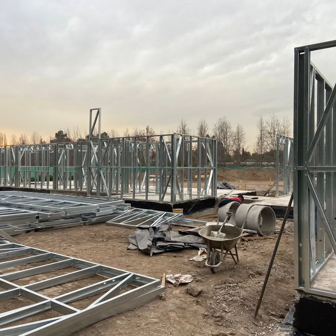 Está construida con perfiles de acero galvanizado tipo Steel Frame, una solución moderna, liviana y duradera, ideal para todo tipo de clima. La estructura ya se encuentra anclada sobre radier y cuenta con división de espacios claramente definidos, listos para recibir cerramientos y terminaciones. Este sistema permite una ejecución limpia, rápida y altamente precisa.