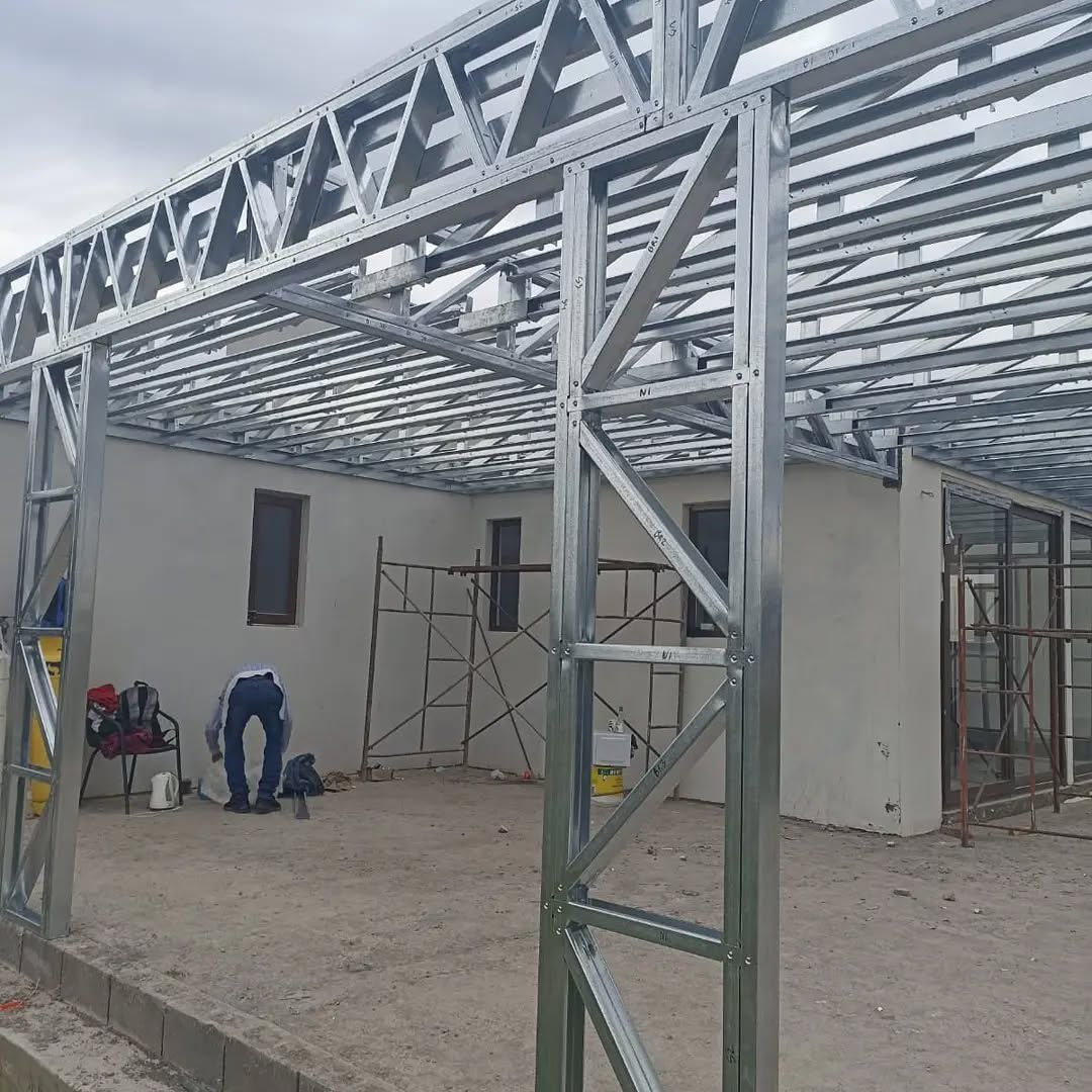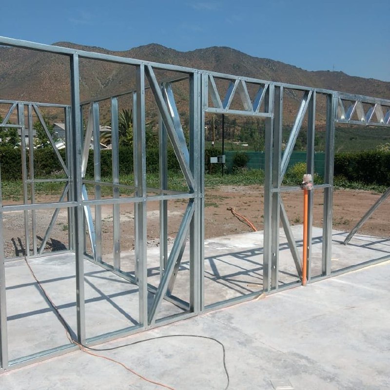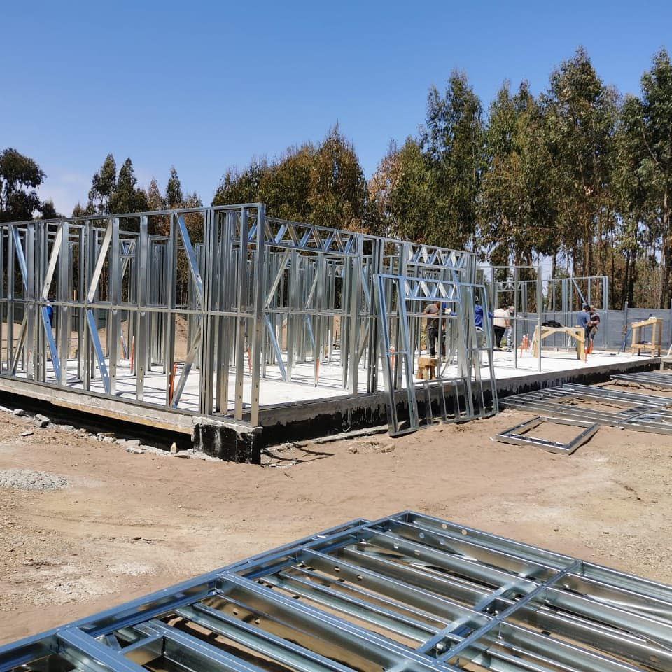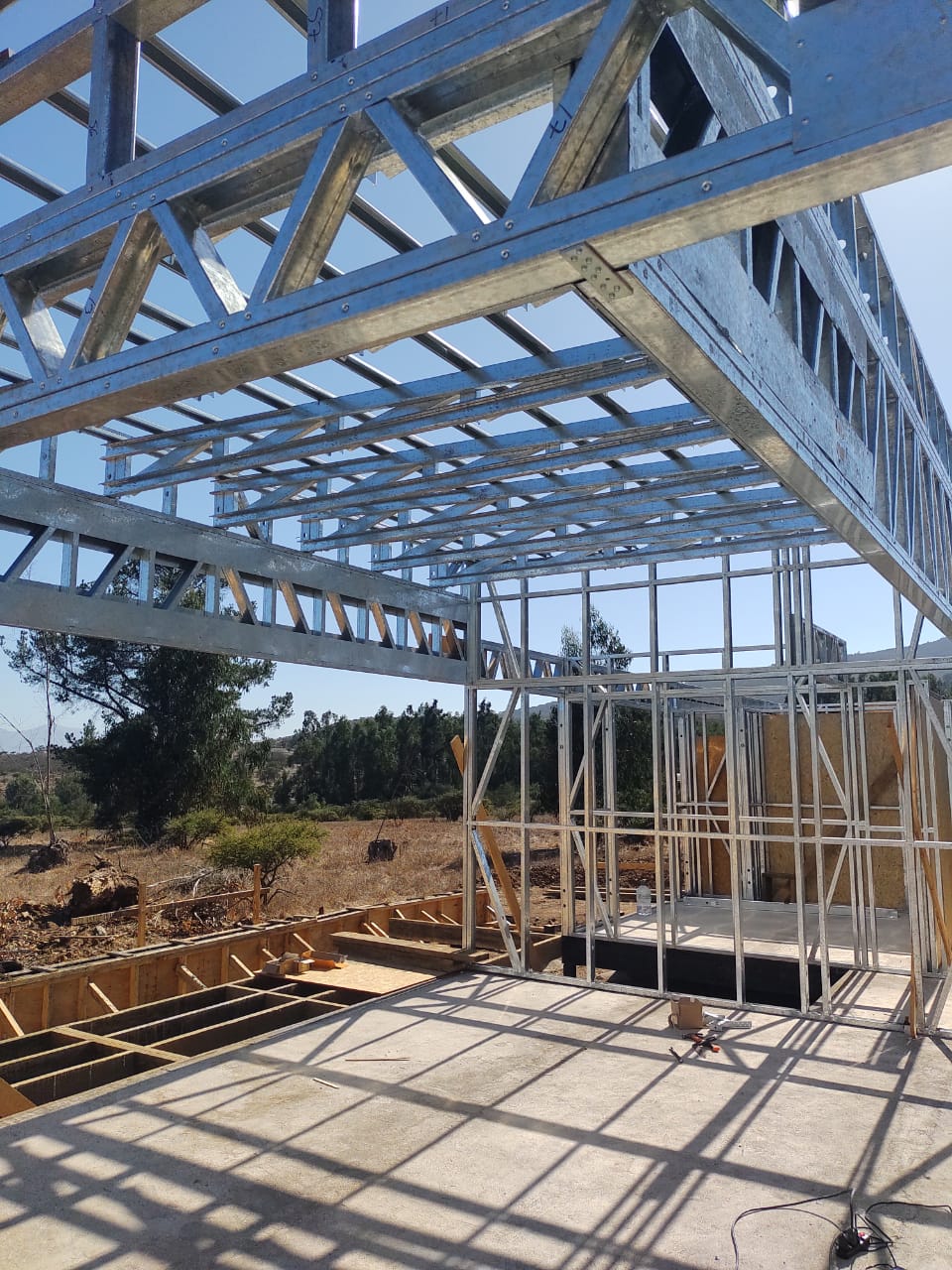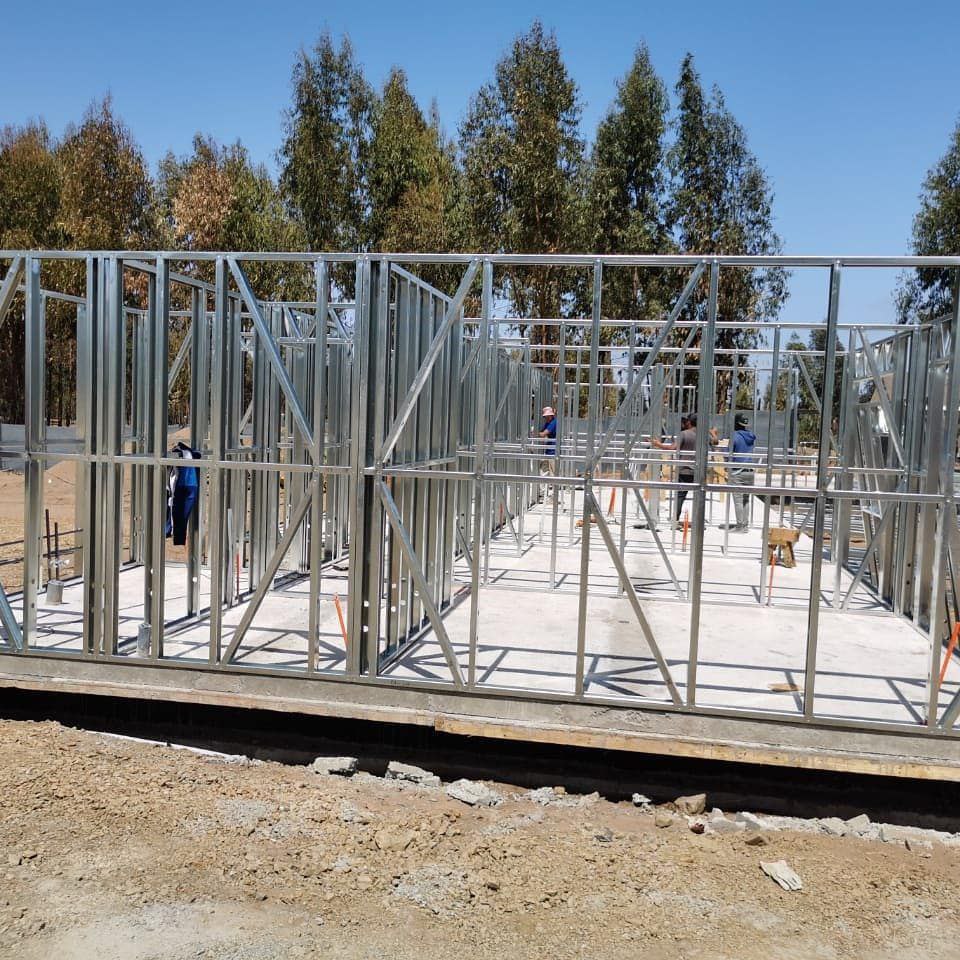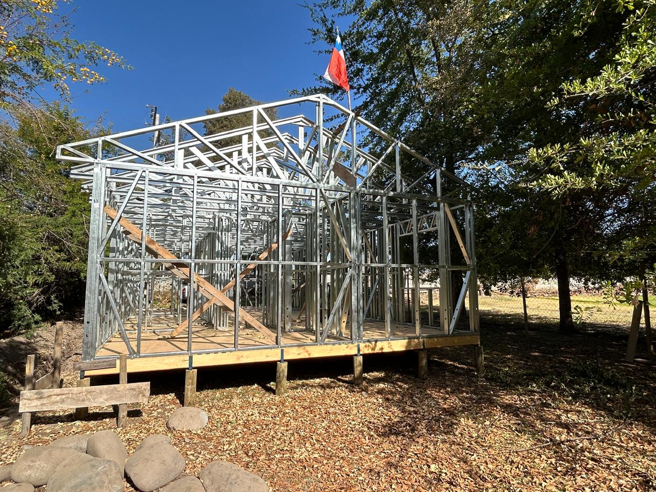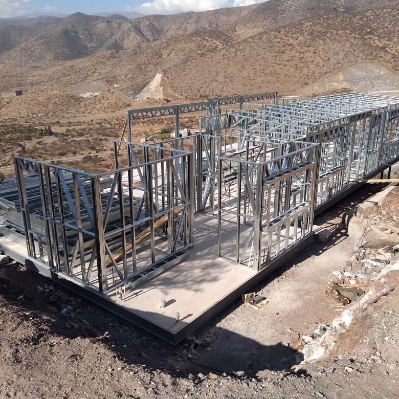 Está construida con perfiles de acero galvanizado tipo Steel Frame, una solución moderna, liviana y duradera, ideal para todo tipo de clima. La estructura ya se encuentra anclada sobre radier y cuenta con división de espacios claramente definidos, listos para recibir cerramientos y terminaciones. Este sistema permite una ejecución limpia, rápida y altamente precisa.