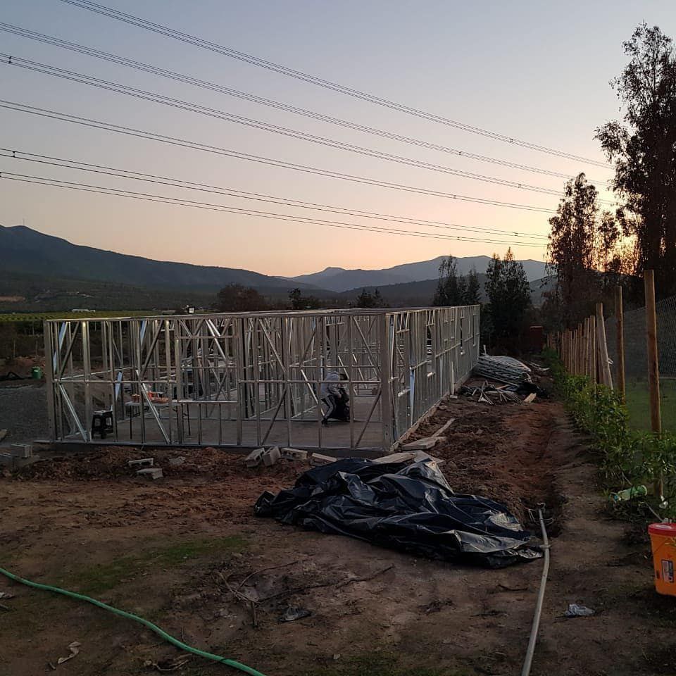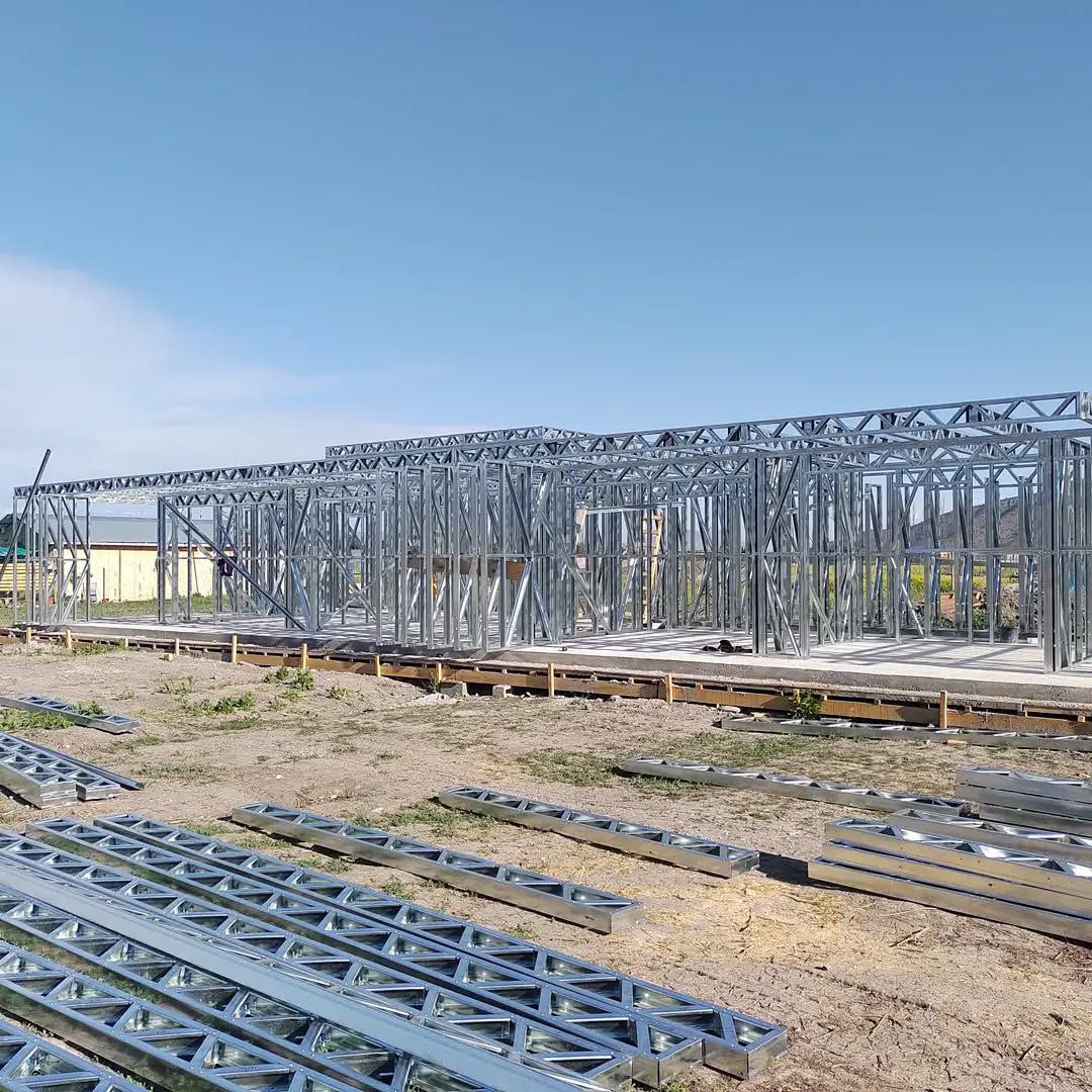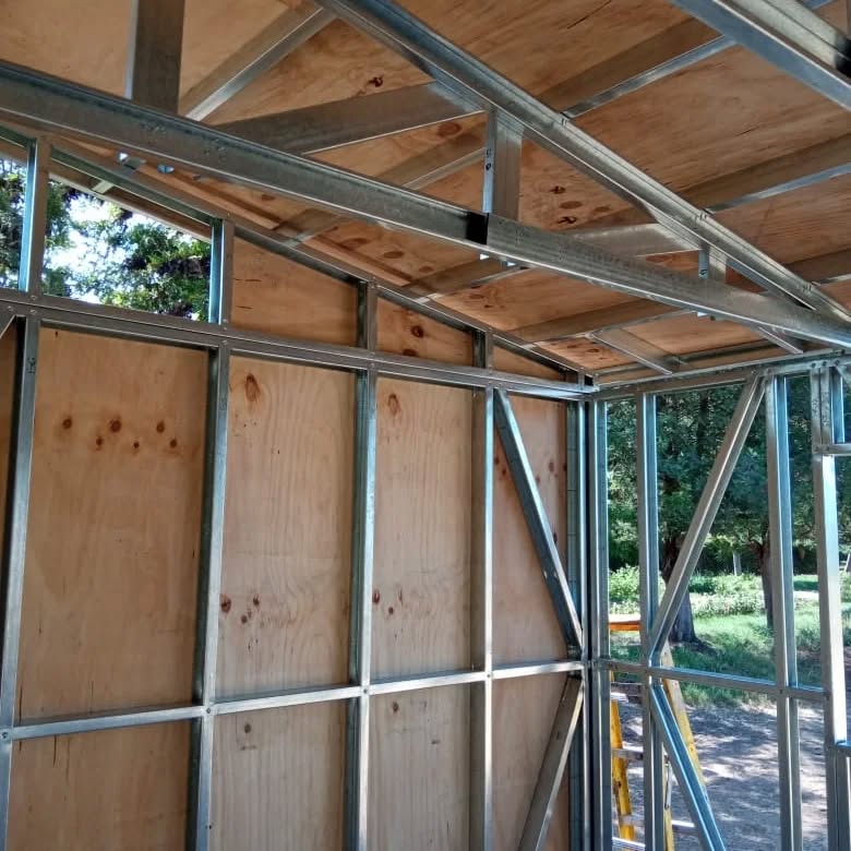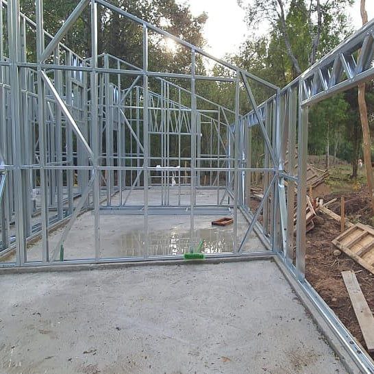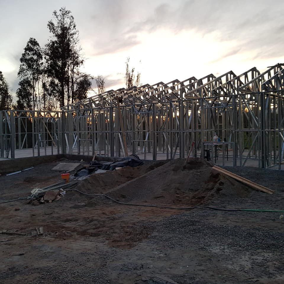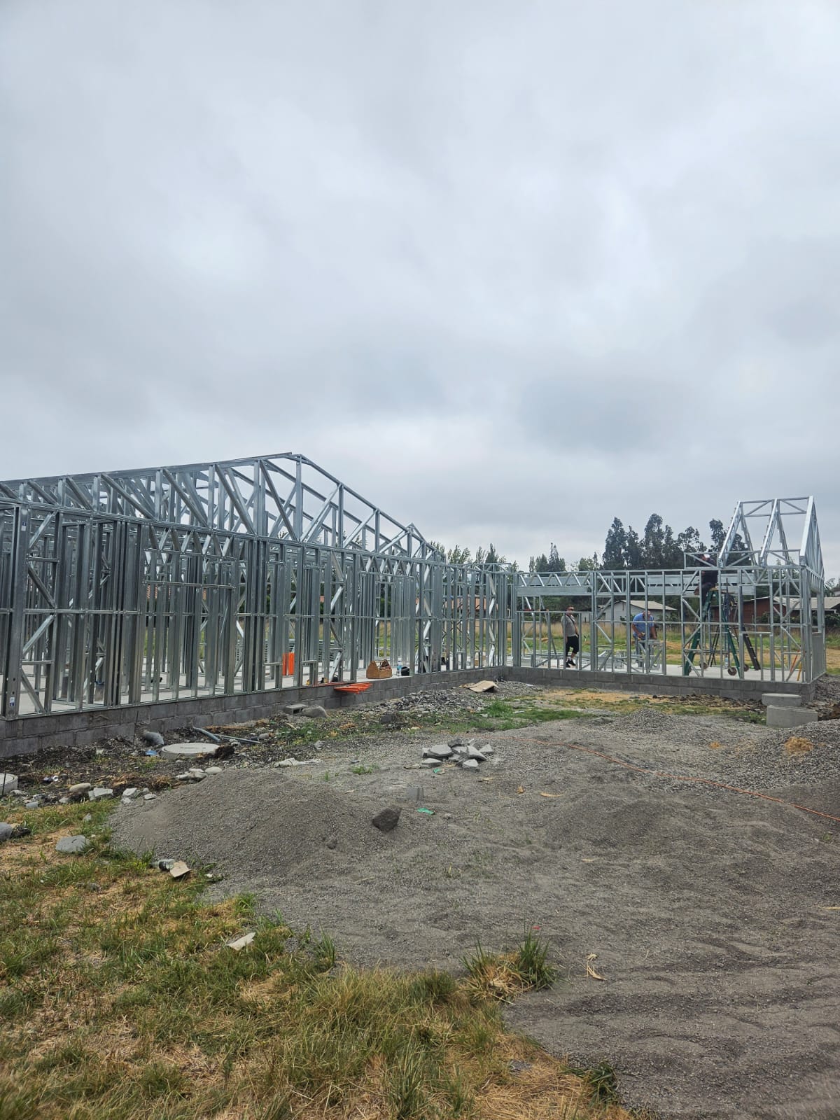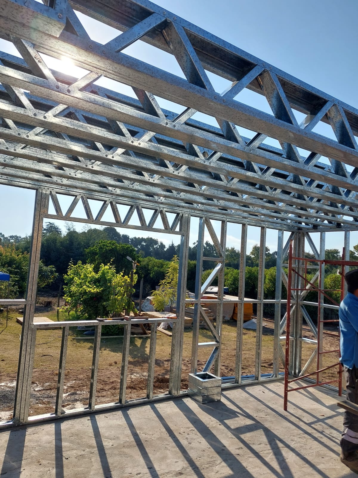 Está construida con perfiles de acero galvanizado tipo Steel Frame, una solución moderna, liviana y duradera, ideal para todo tipo de clima. La estructura ya se encuentra anclada sobre radier y cuenta con división de espacios claramente definidos, listos para recibir cerramientos y terminaciones. Este sistema permite una ejecución limpia, rápida y altamente precisa.