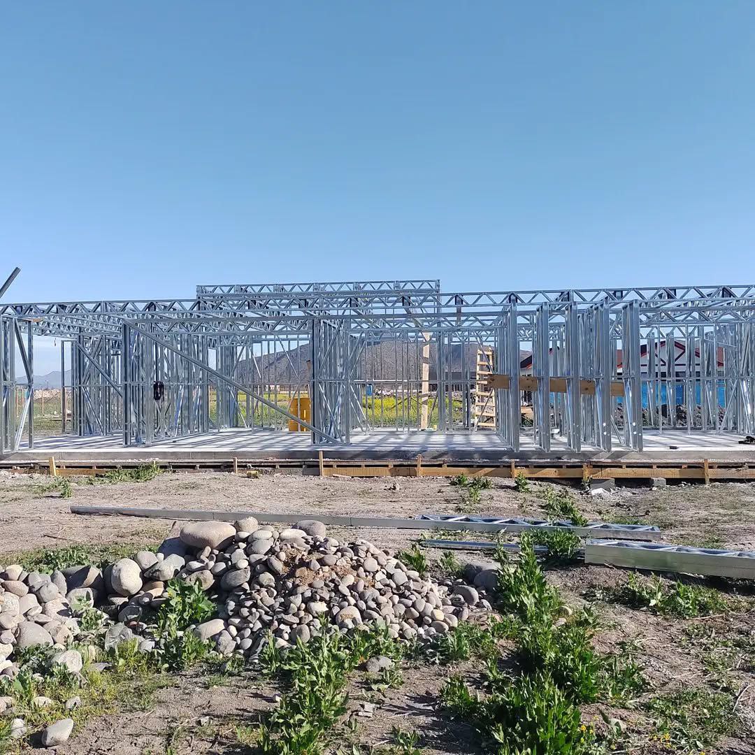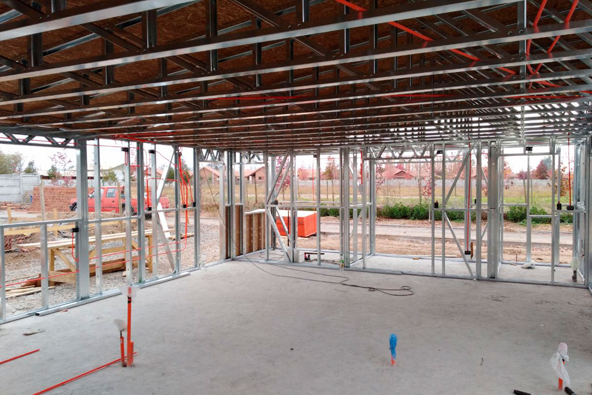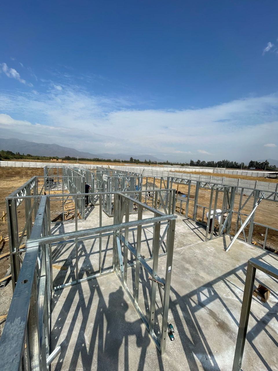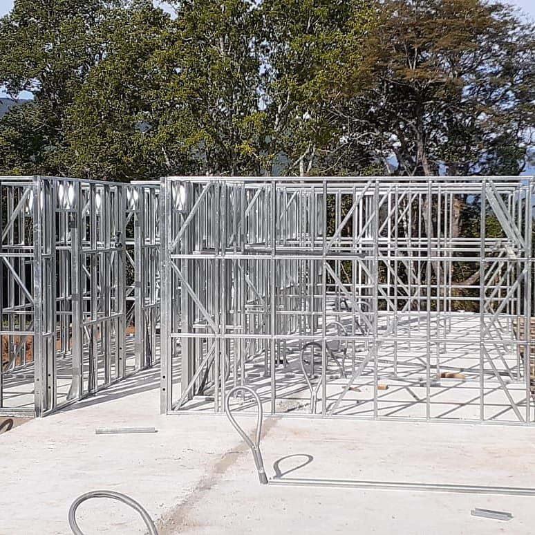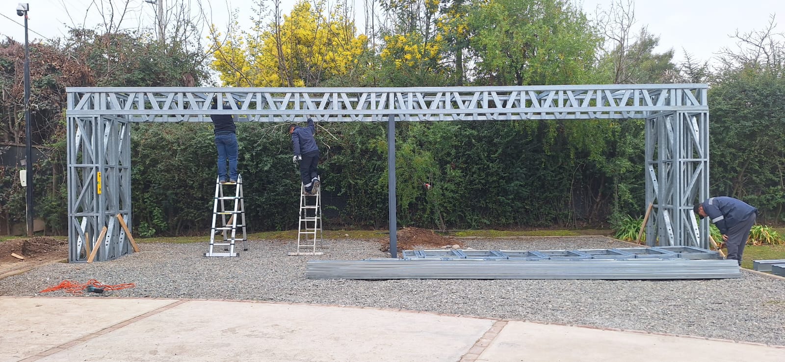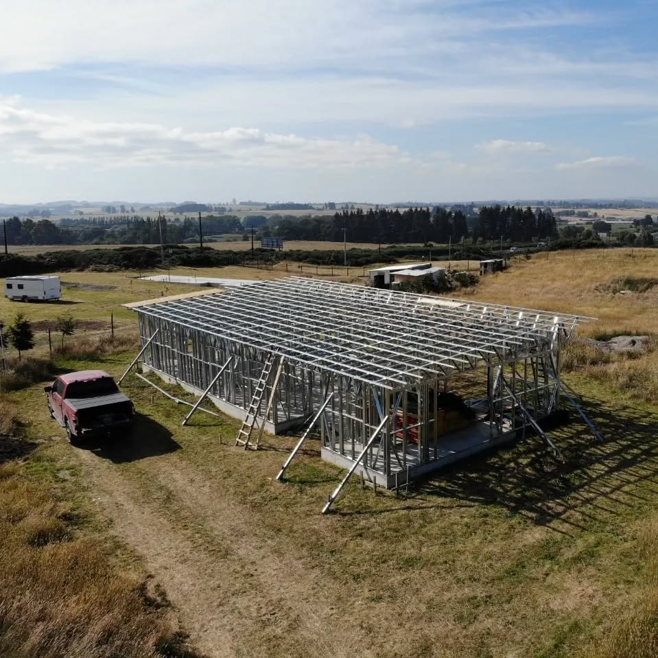 Está construida con perfiles de acero galvanizado tipo Steel Frame, una solución moderna, liviana y duradera, ideal para todo tipo de clima. La estructura ya se encuentra anclada sobre radier y cuenta con división de espacios claramente definidos, listos para recibir cerramientos y terminaciones. Este sistema permite una ejecución limpia, rápida y altamente precisa.