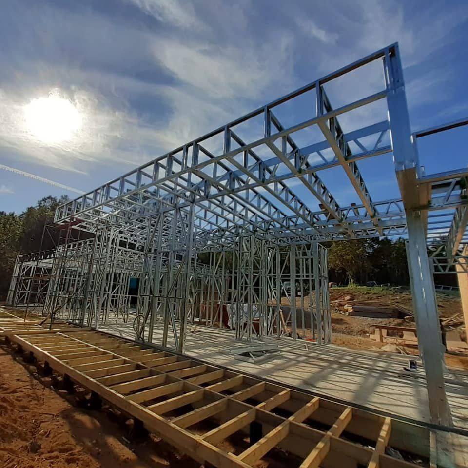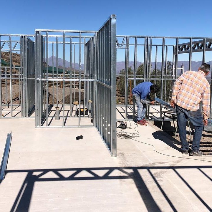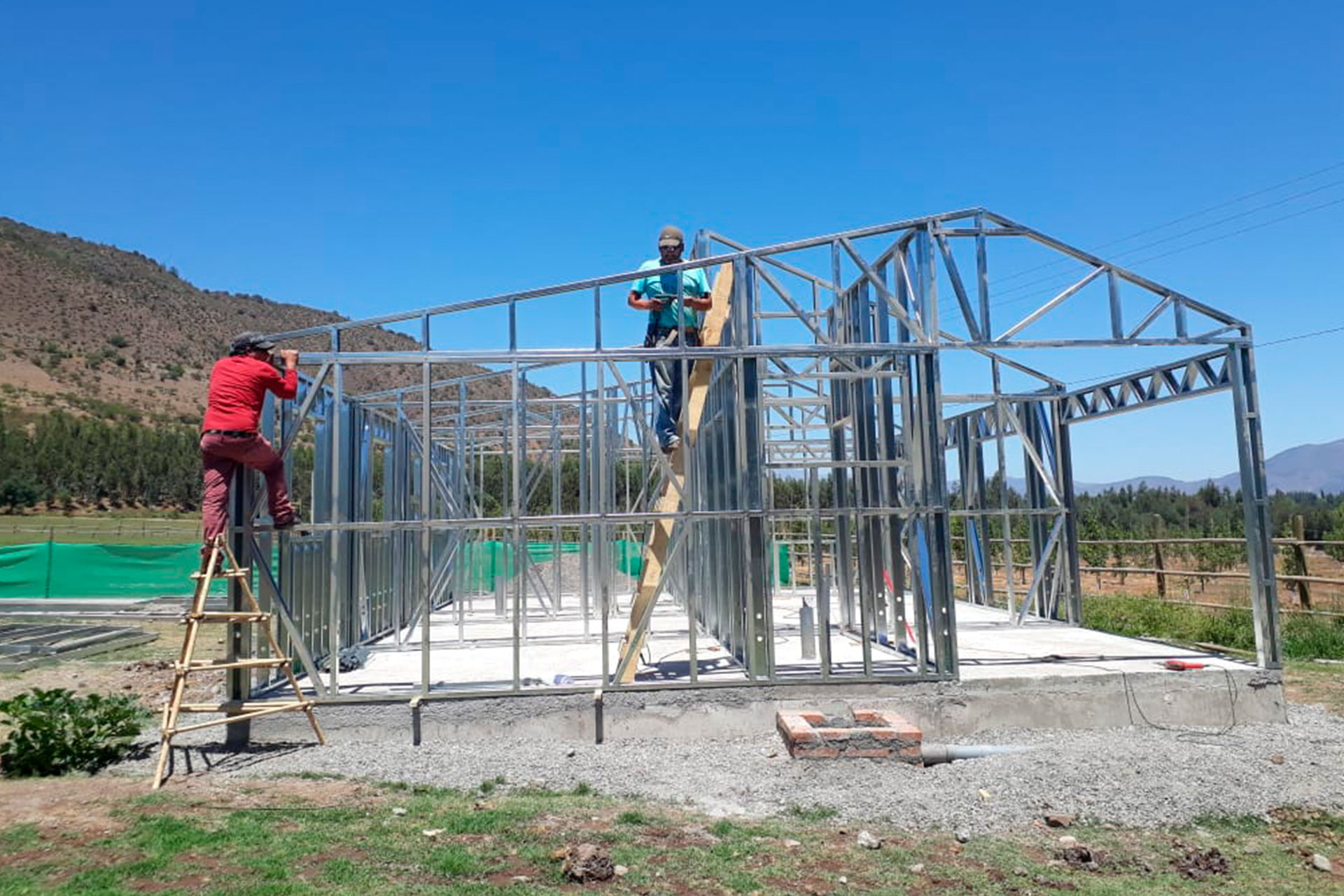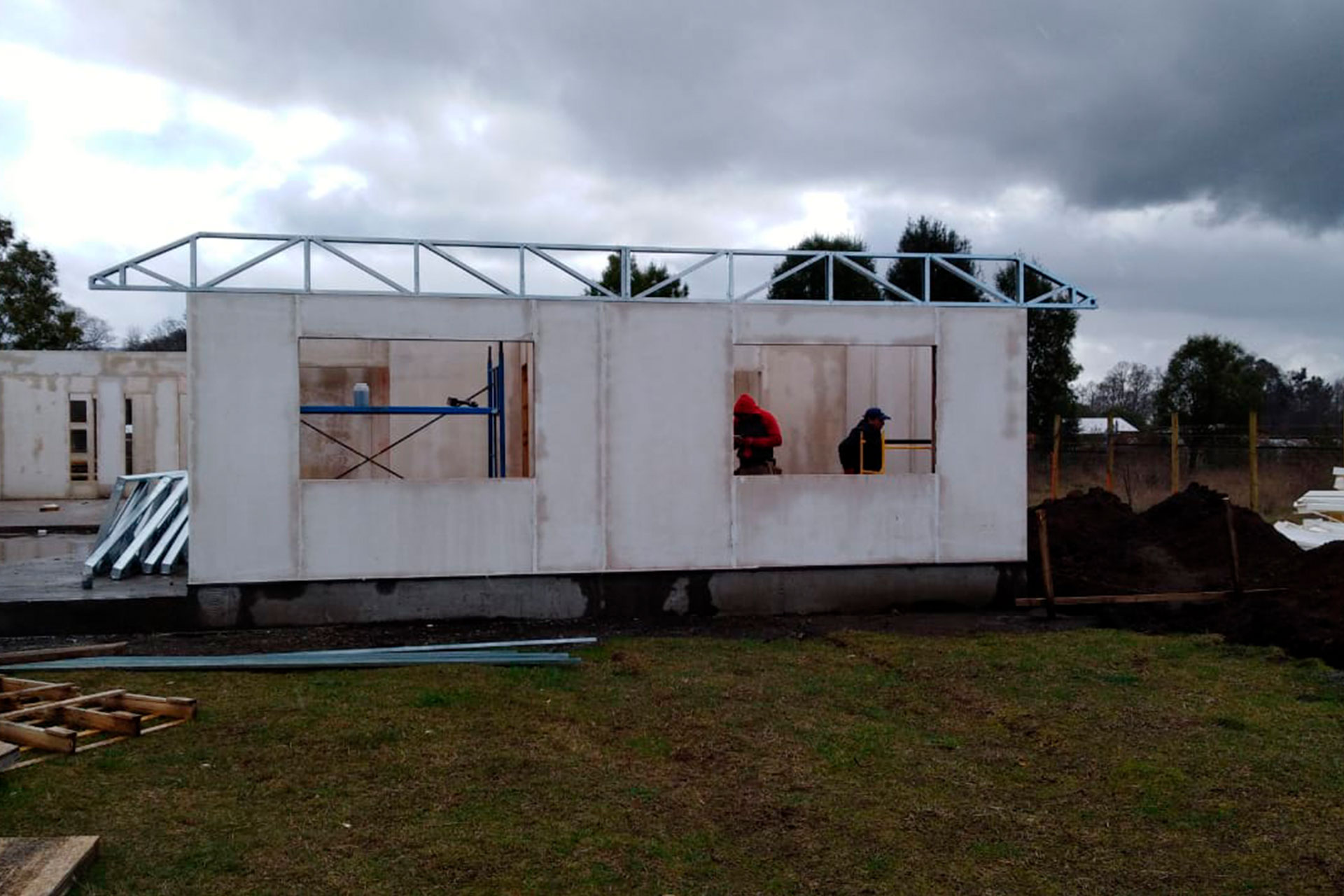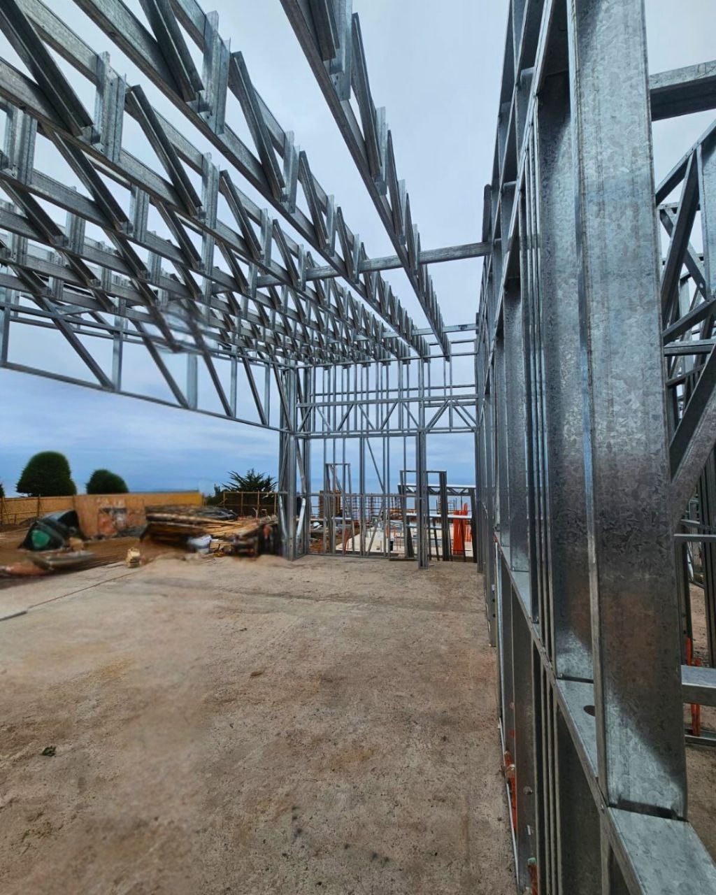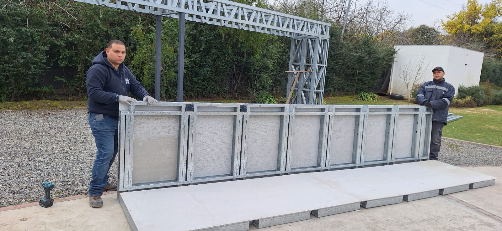 Está construida con perfiles de acero galvanizado tipo Steel Frame, una solución moderna, liviana y duradera, ideal para todo tipo de clima. La estructura ya se encuentra anclada sobre radier y cuenta con división de espacios claramente definidos, listos para recibir cerramientos y terminaciones. Este sistema permite una ejecución limpia, rápida y altamente precisa.