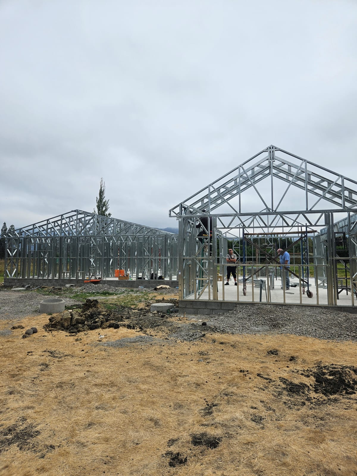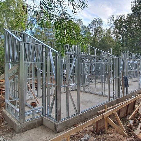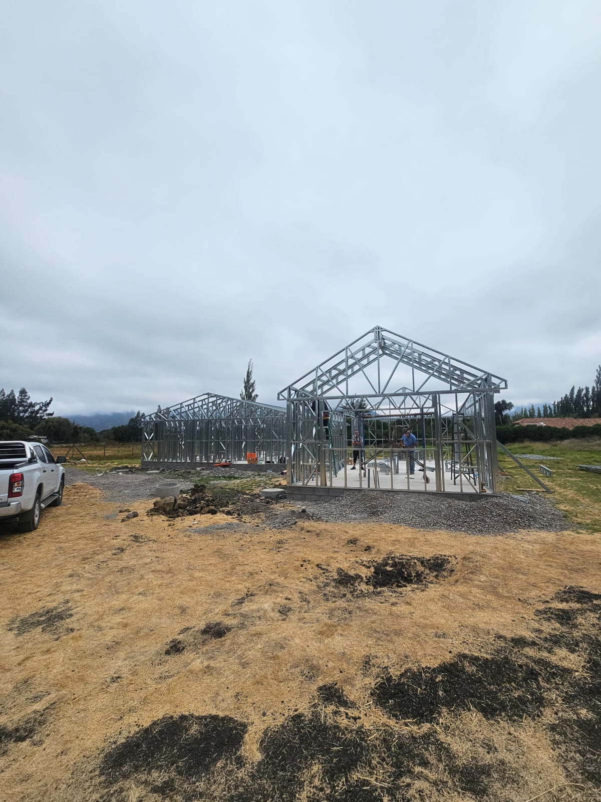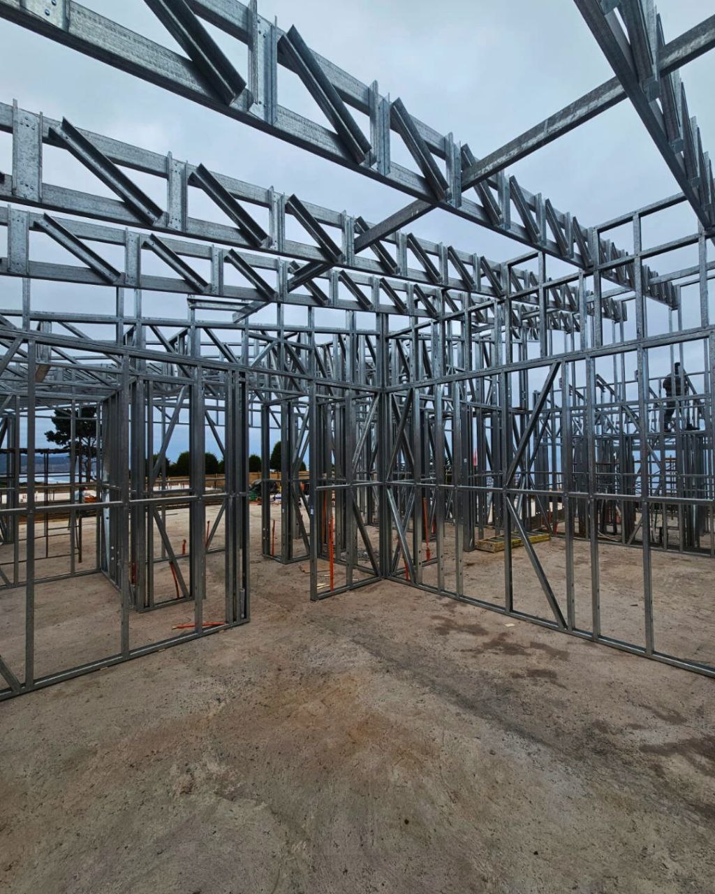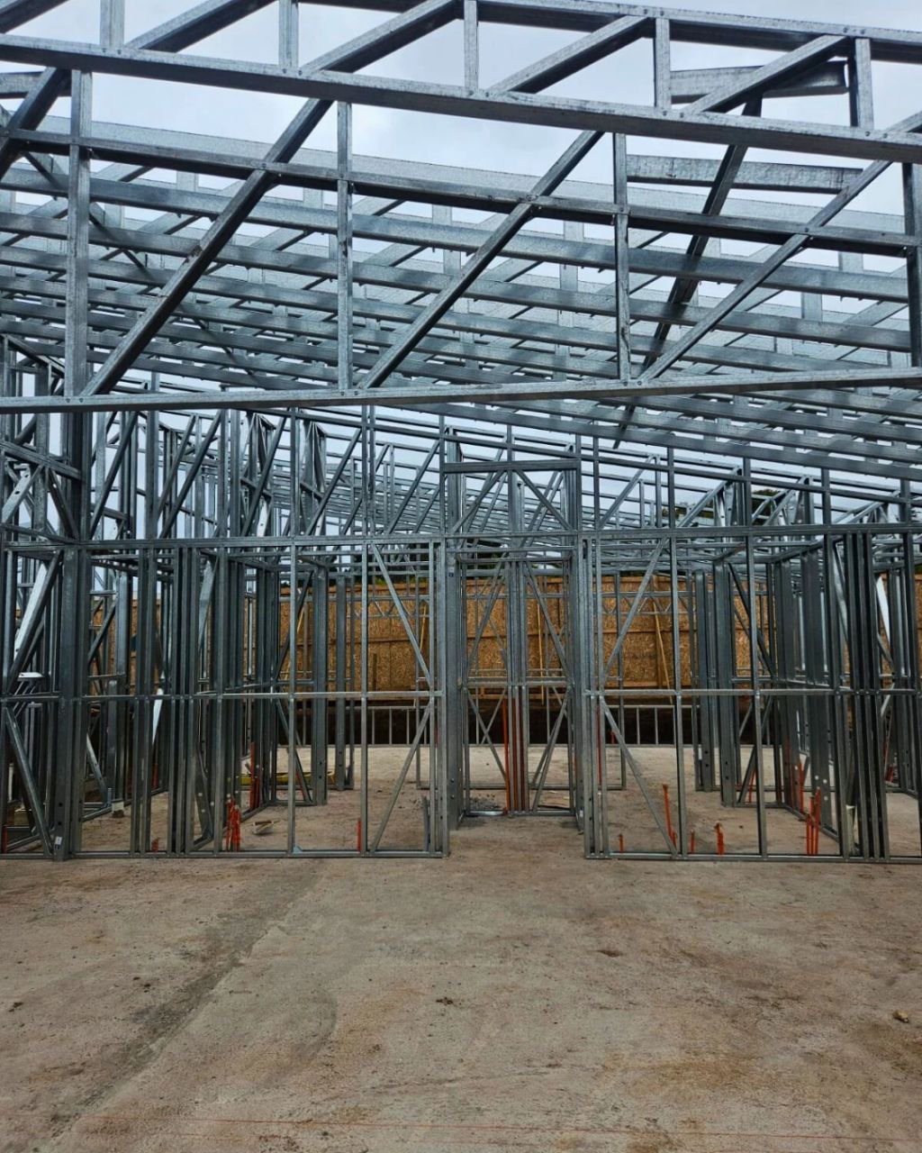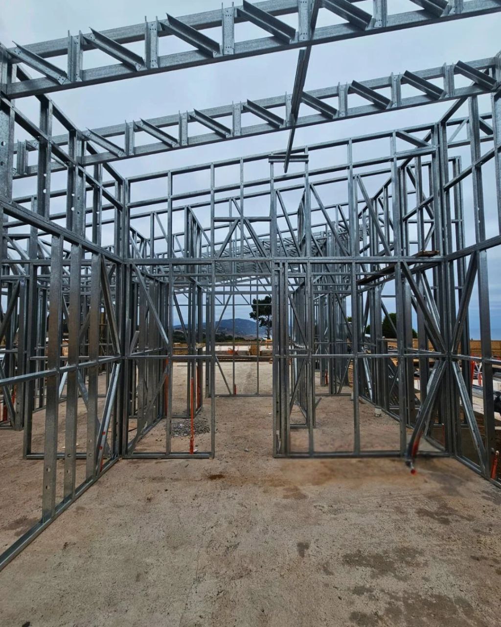 Está construida con perfiles de acero galvanizado tipo Steel Frame, una solución moderna, liviana y duradera, ideal para todo tipo de clima. La estructura ya se encuentra anclada sobre radier y cuenta con división de espacios claramente definidos, listos para recibir cerramientos y terminaciones. Este sistema permite una ejecución limpia, rápida y altamente precisa.