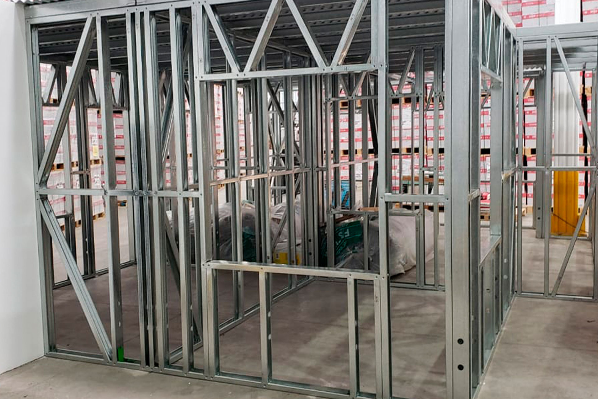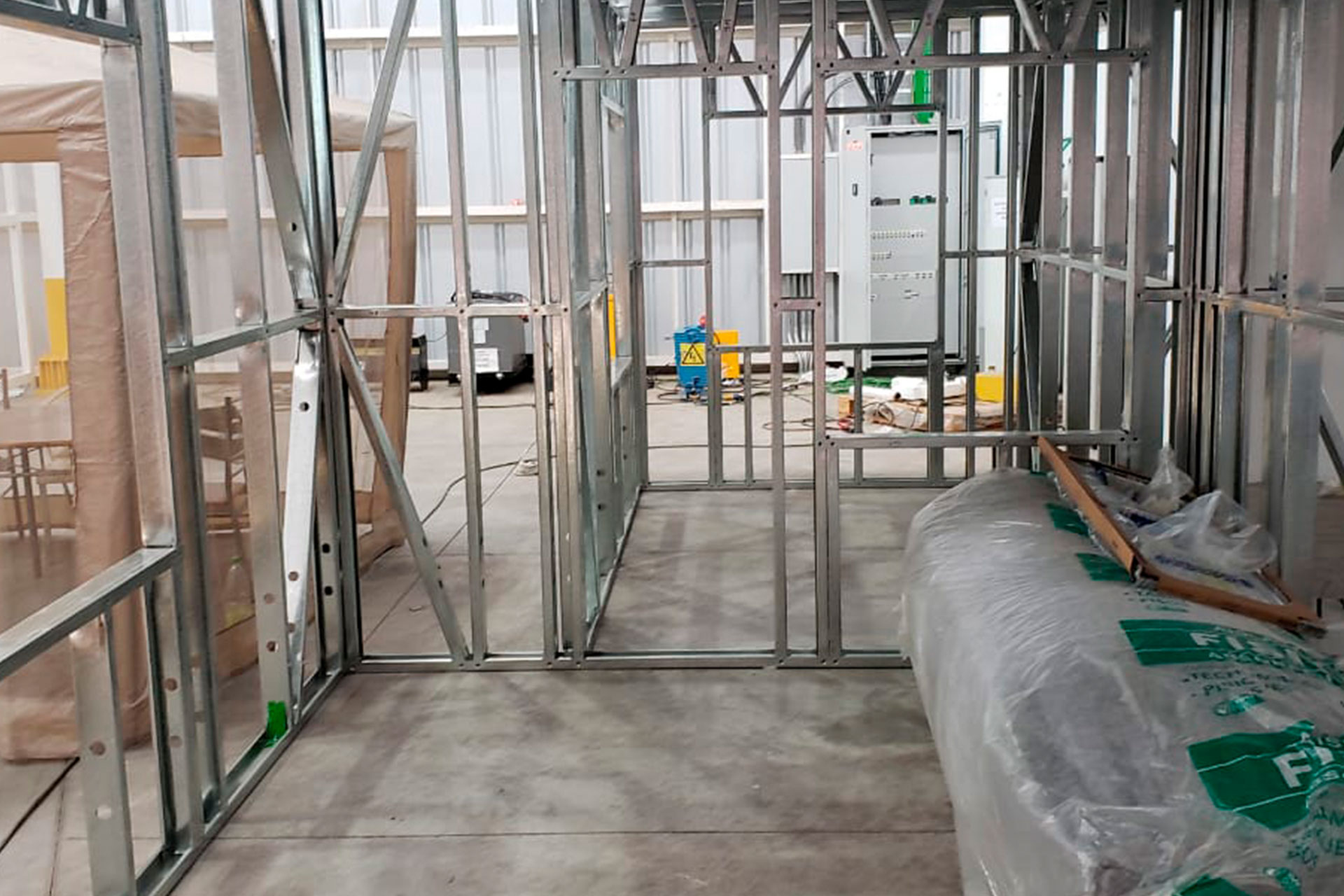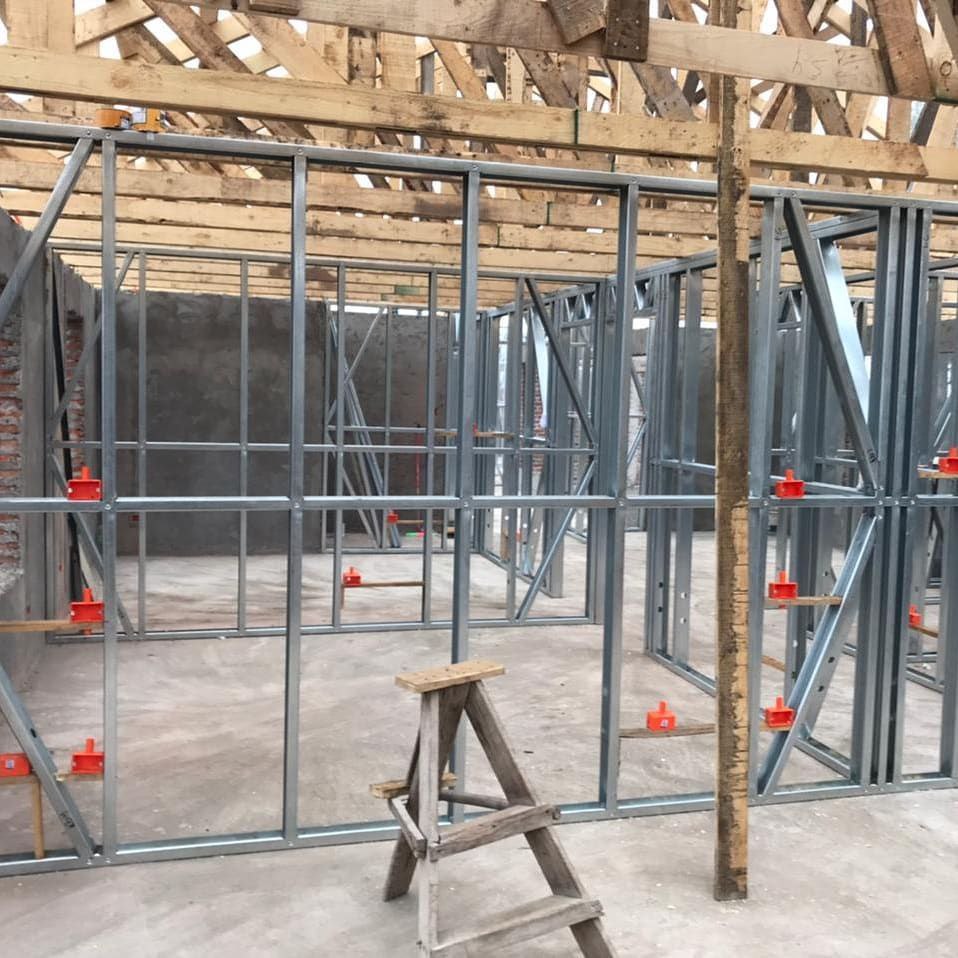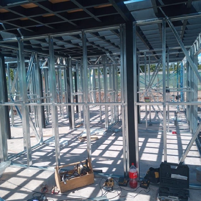 Proyecto de instalación de tabiques interiores con estructuras prefabricadas en acero galvanizado tipo Steel Frame, Este sistema permite dividir espacios de forma eficiente, sin sobrecargar la estructura principal. Es ideal para construcciones livianas, resistentes y con excelente comportamiento térmico y acústico.