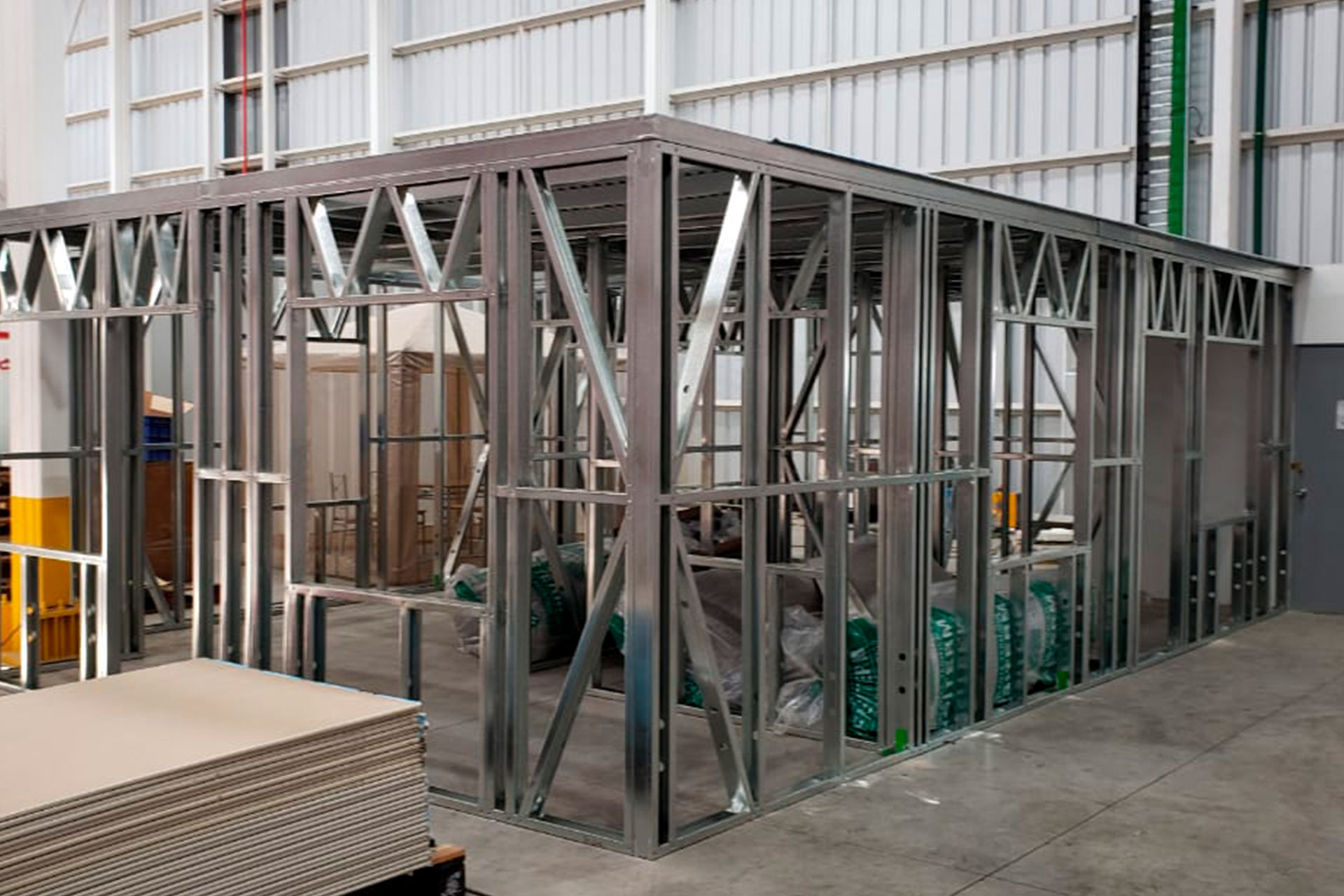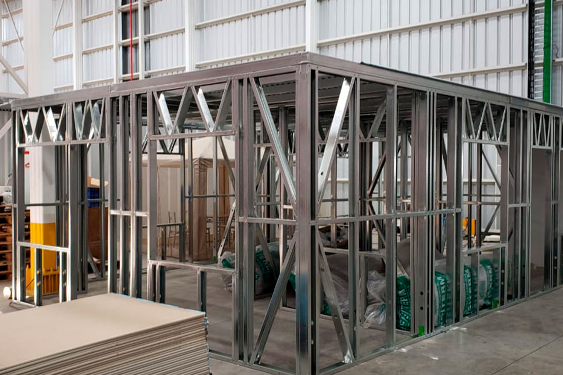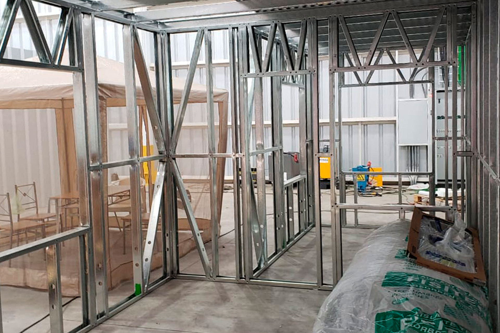 Proyecto de instalación de tabiques interiores con estructuras prefabricadas en acero galvanizado tipo Steel Frame, Este sistema permite dividir espacios de forma eficiente, sin sobrecargar la estructura principal. Es ideal para construcciones livianas, resistentes y con excelente comportamiento térmico y acústico.