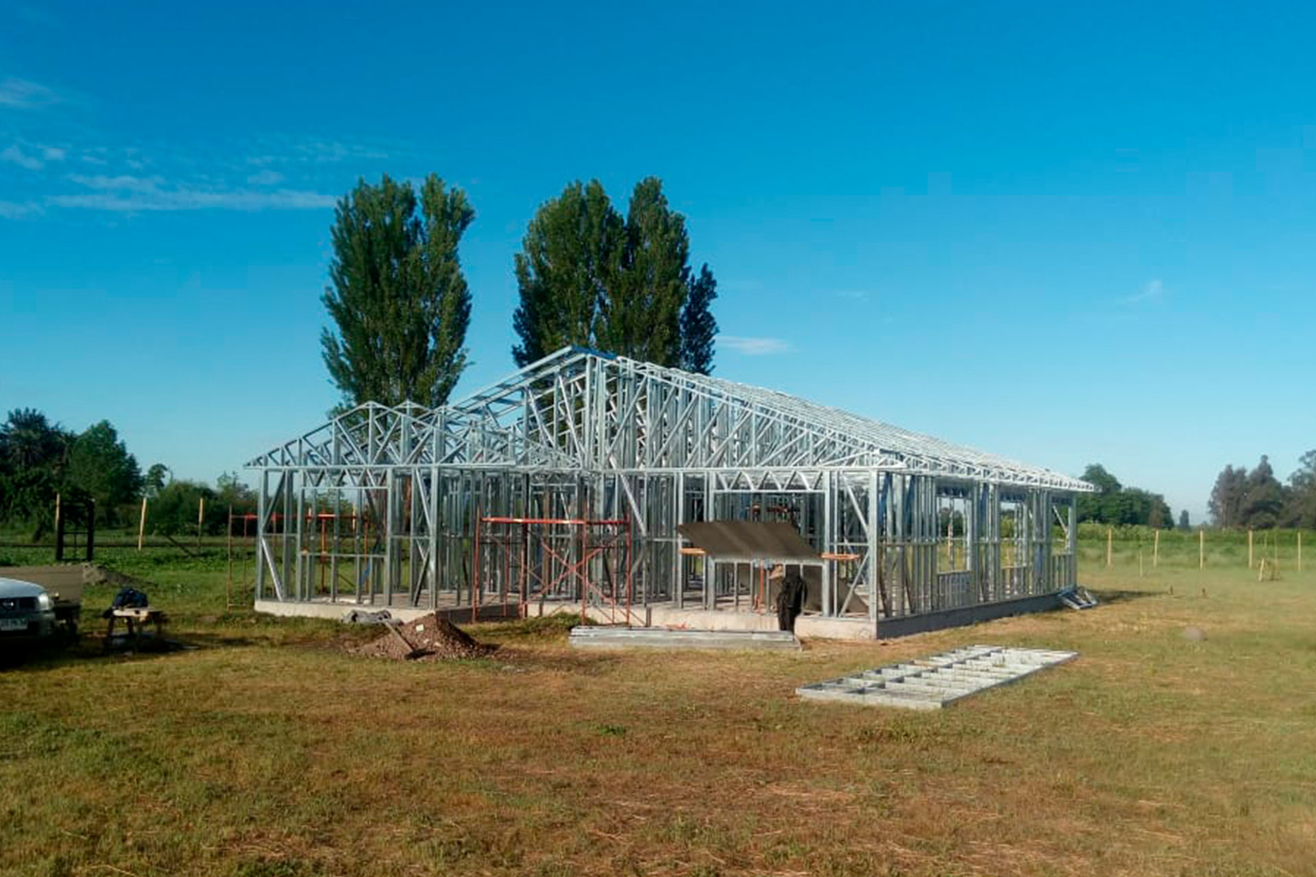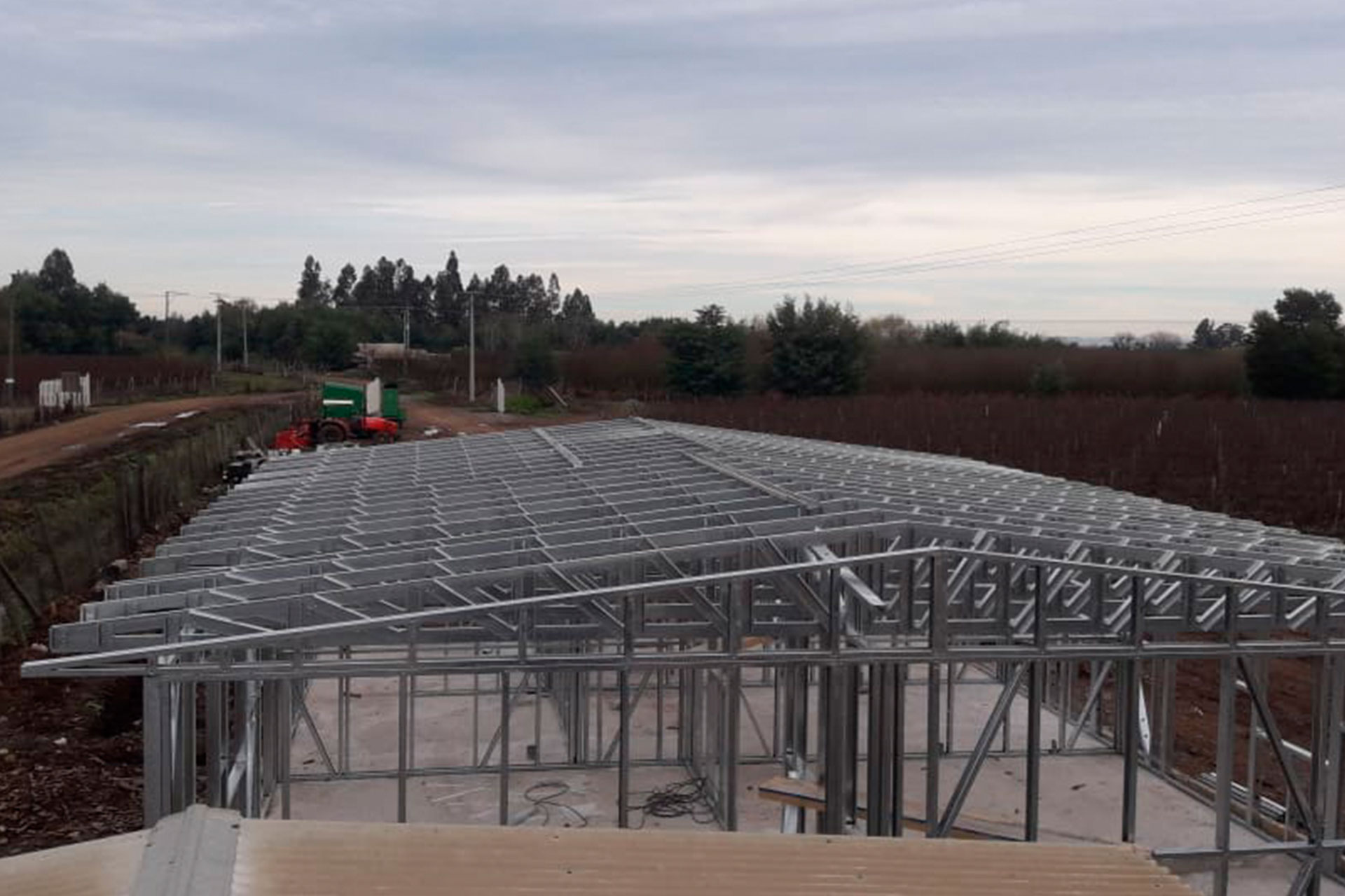 Cobertizo de 160 m² montado en tiempo récord con estructura Steel Frame. Precisión, rapidez y calidad garantizada.