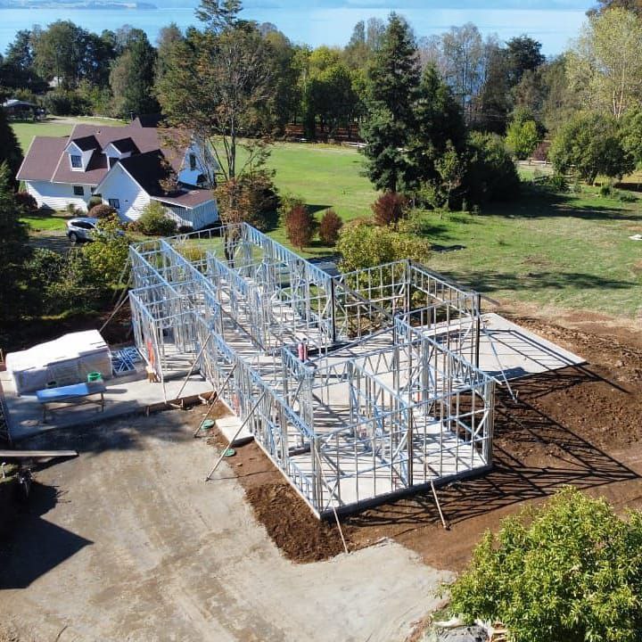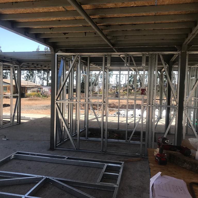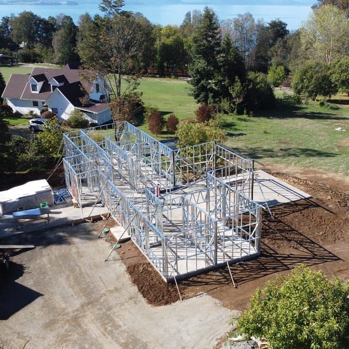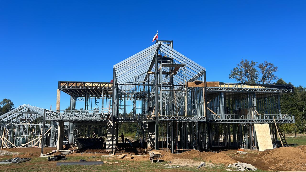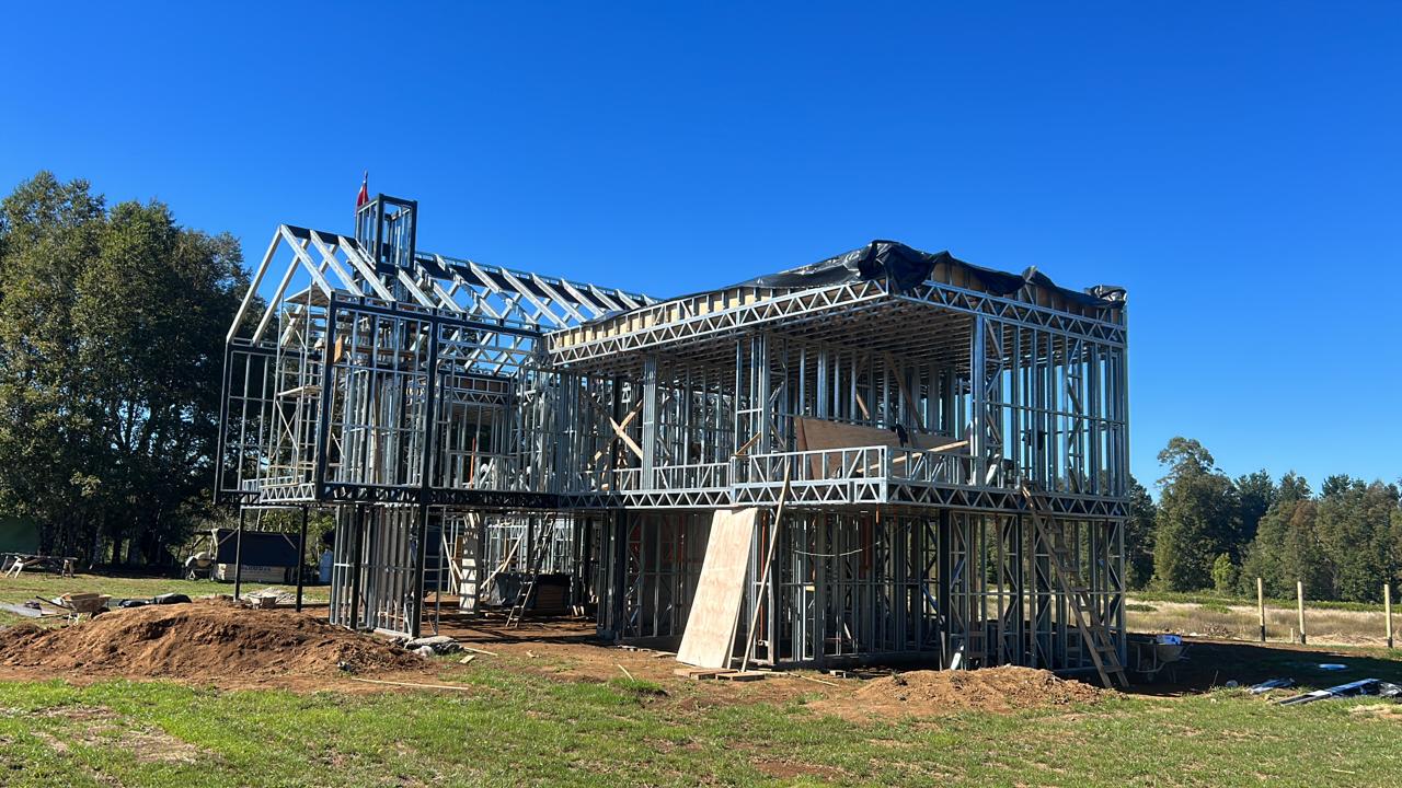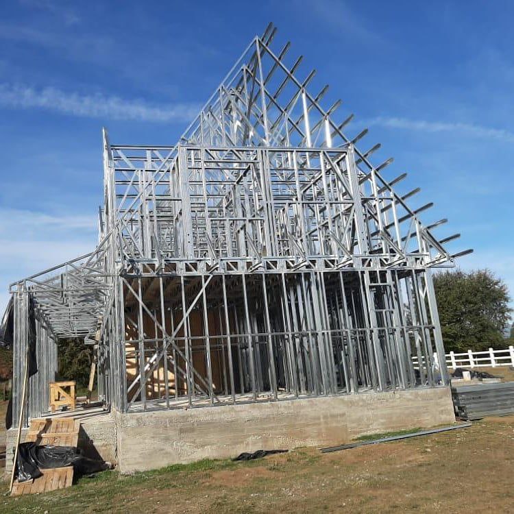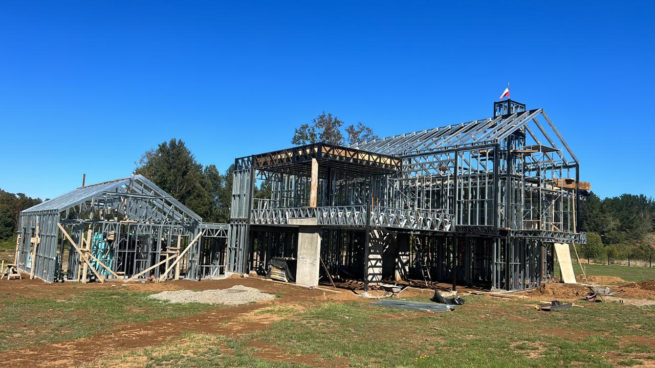 Suministro y montaje de estructura Steel Frame para vivienda en Huentelauquén. Proyecto entregado en obra gruesa estructural.