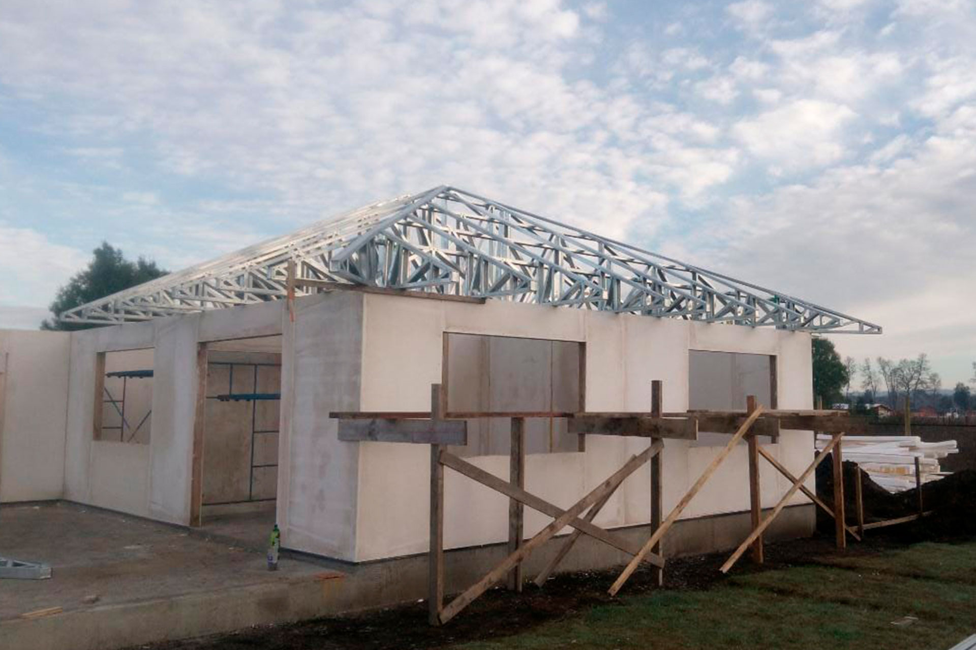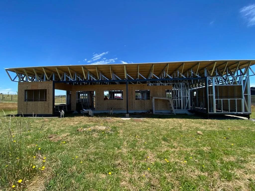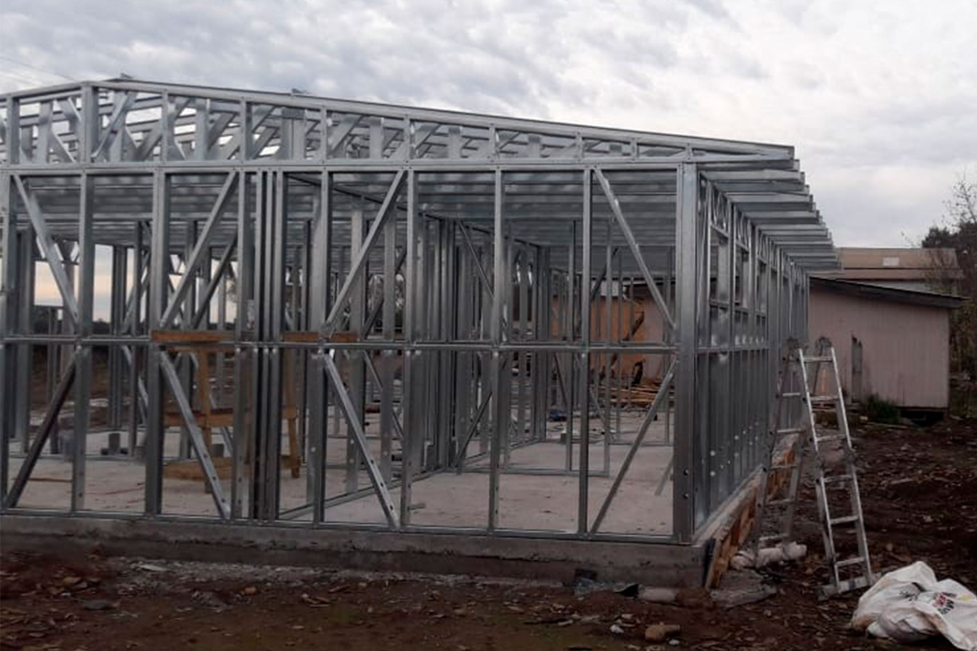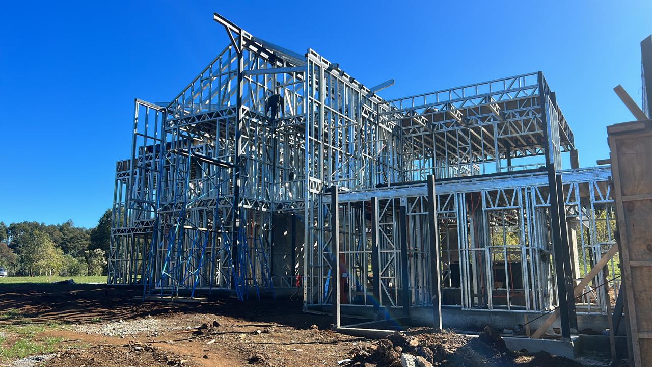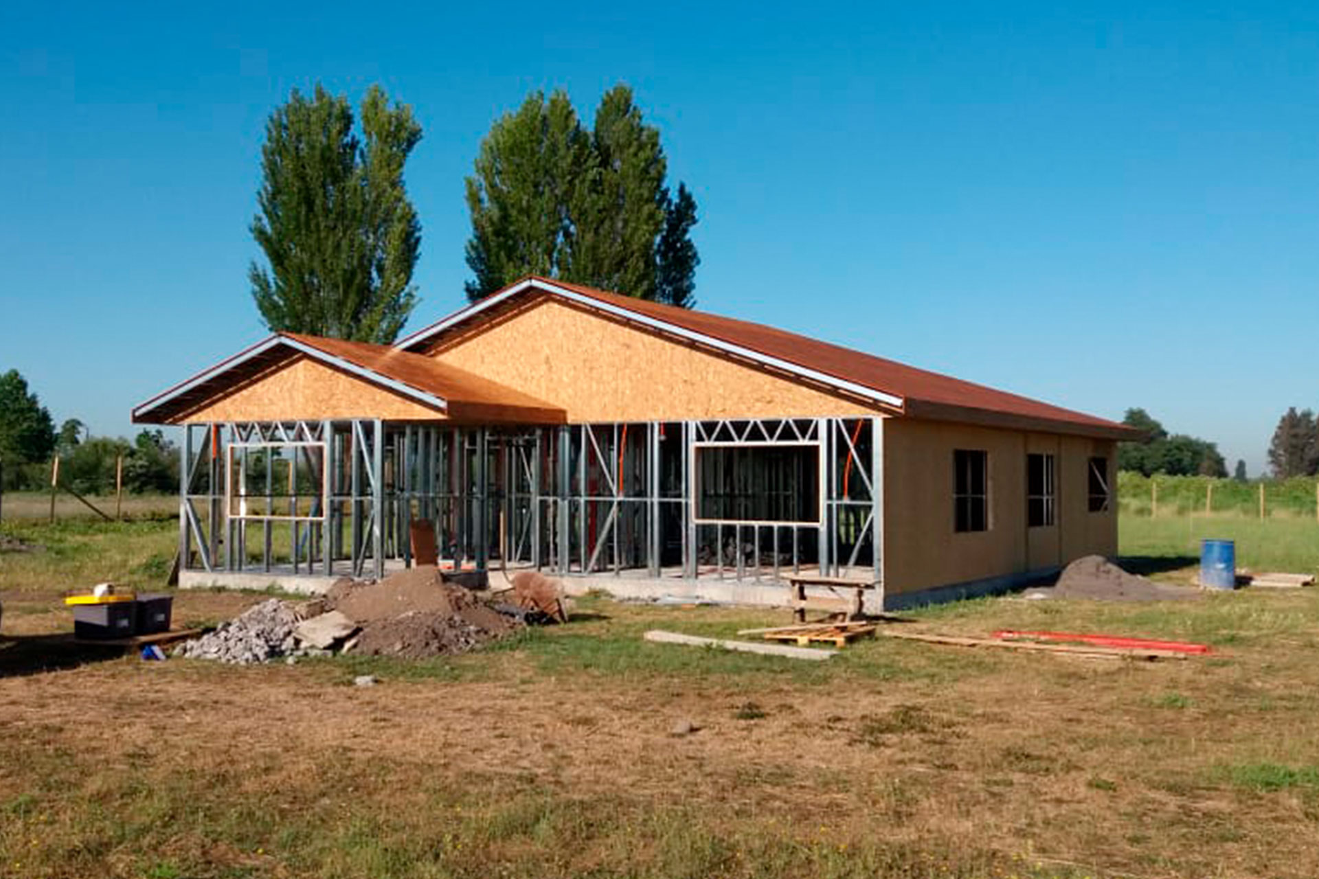 Suministro y montaje de estructura Steel Frame para vivienda en Huentelauquén. Proyecto entregado en obra gruesa estructural.