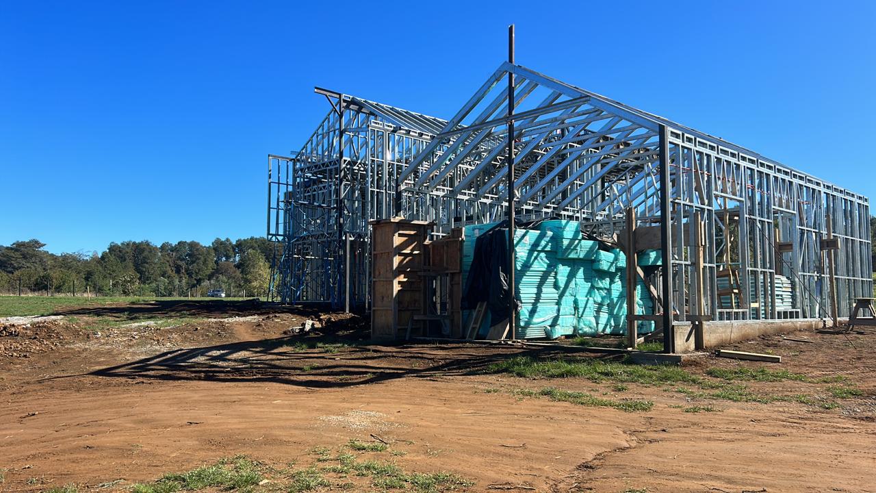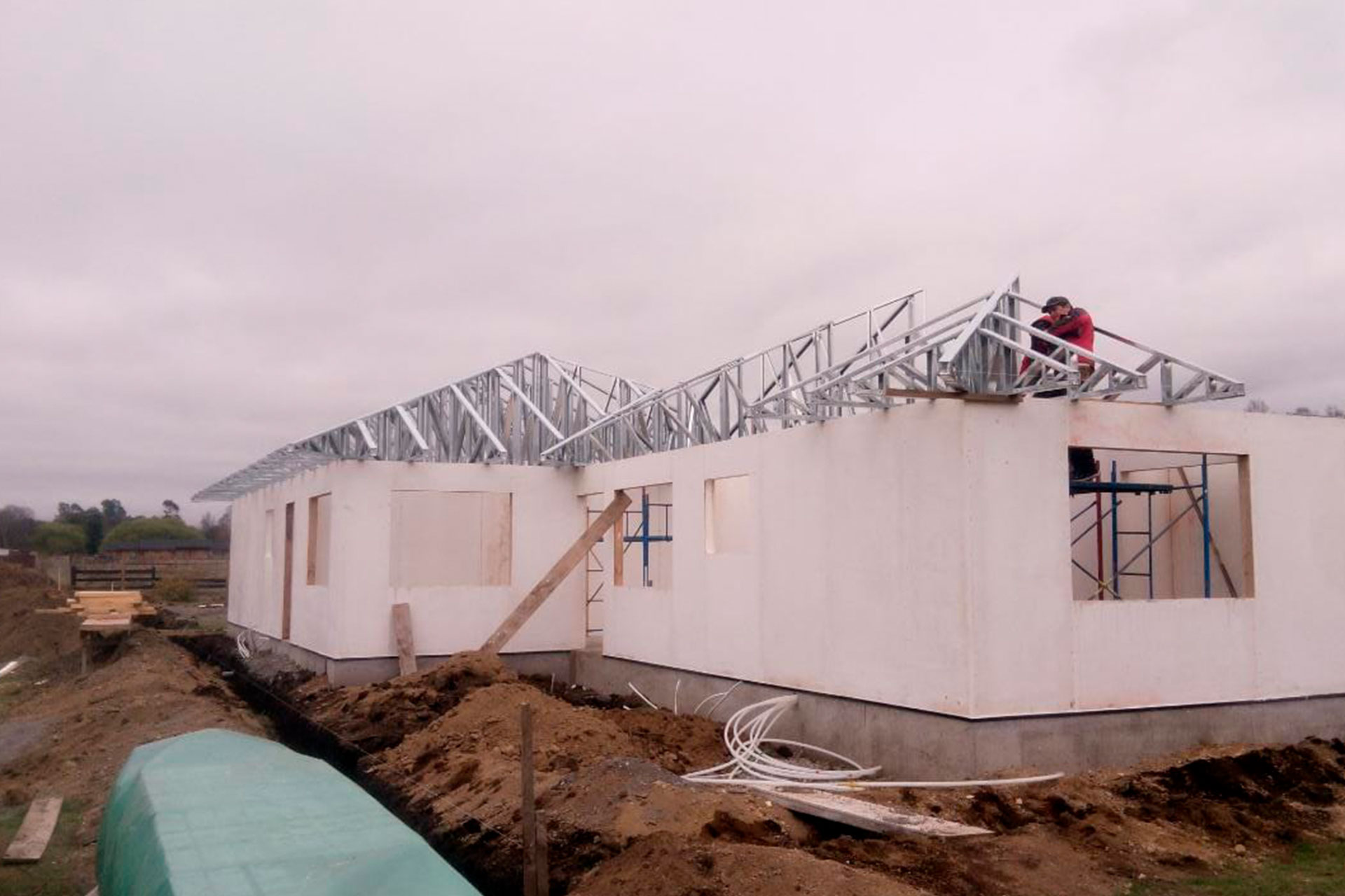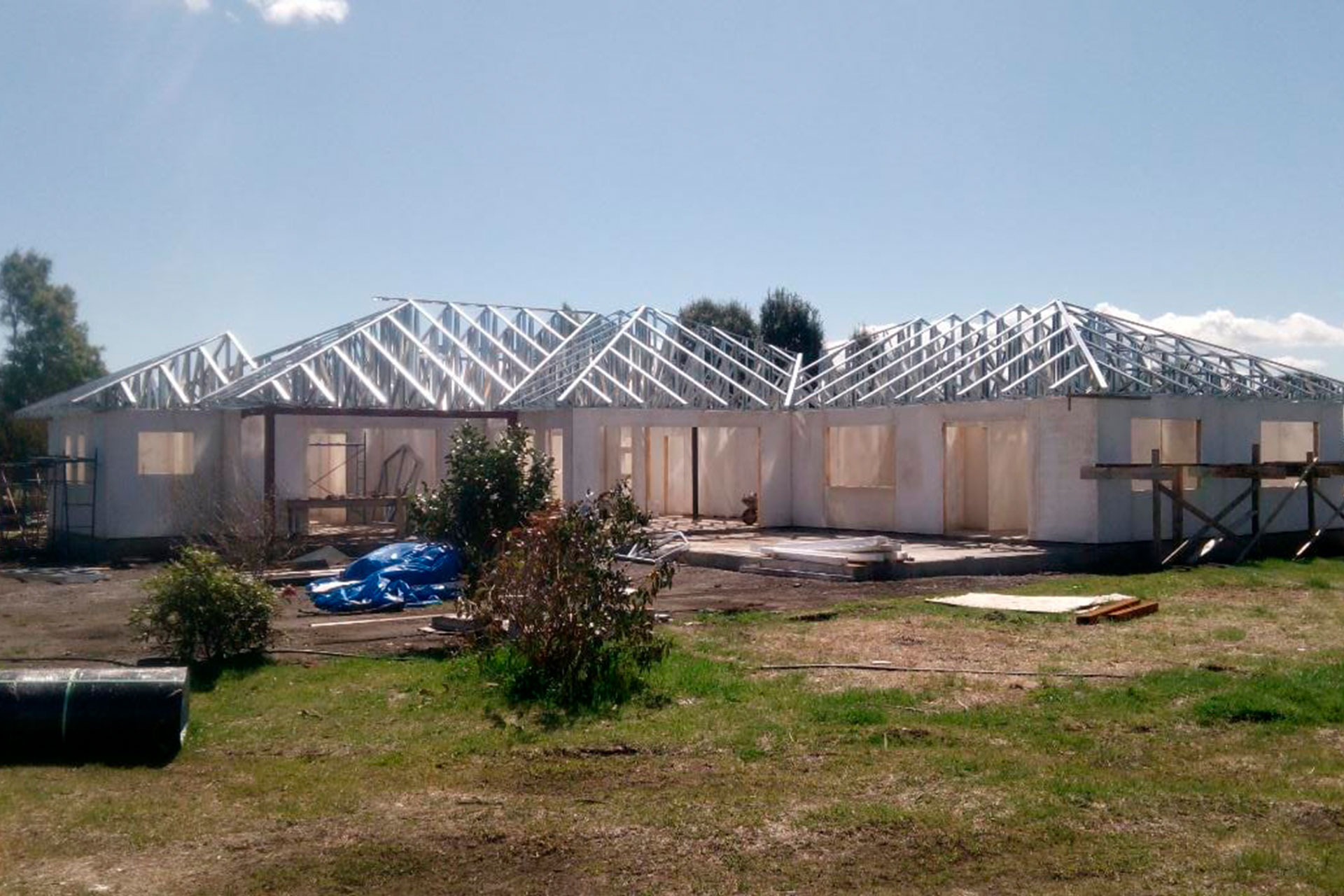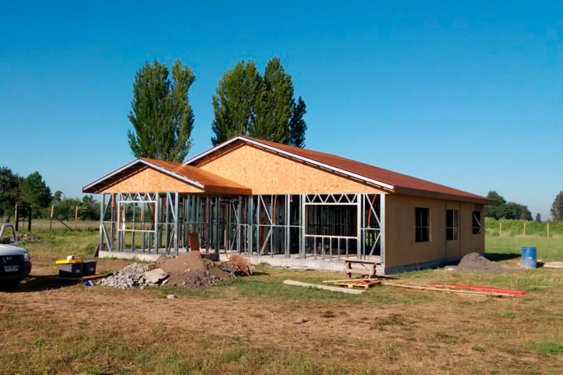 Suministro y montaje de estructura Steel Frame para vivienda en Huentelauquén. Proyecto entregado en obra gruesa estructural.