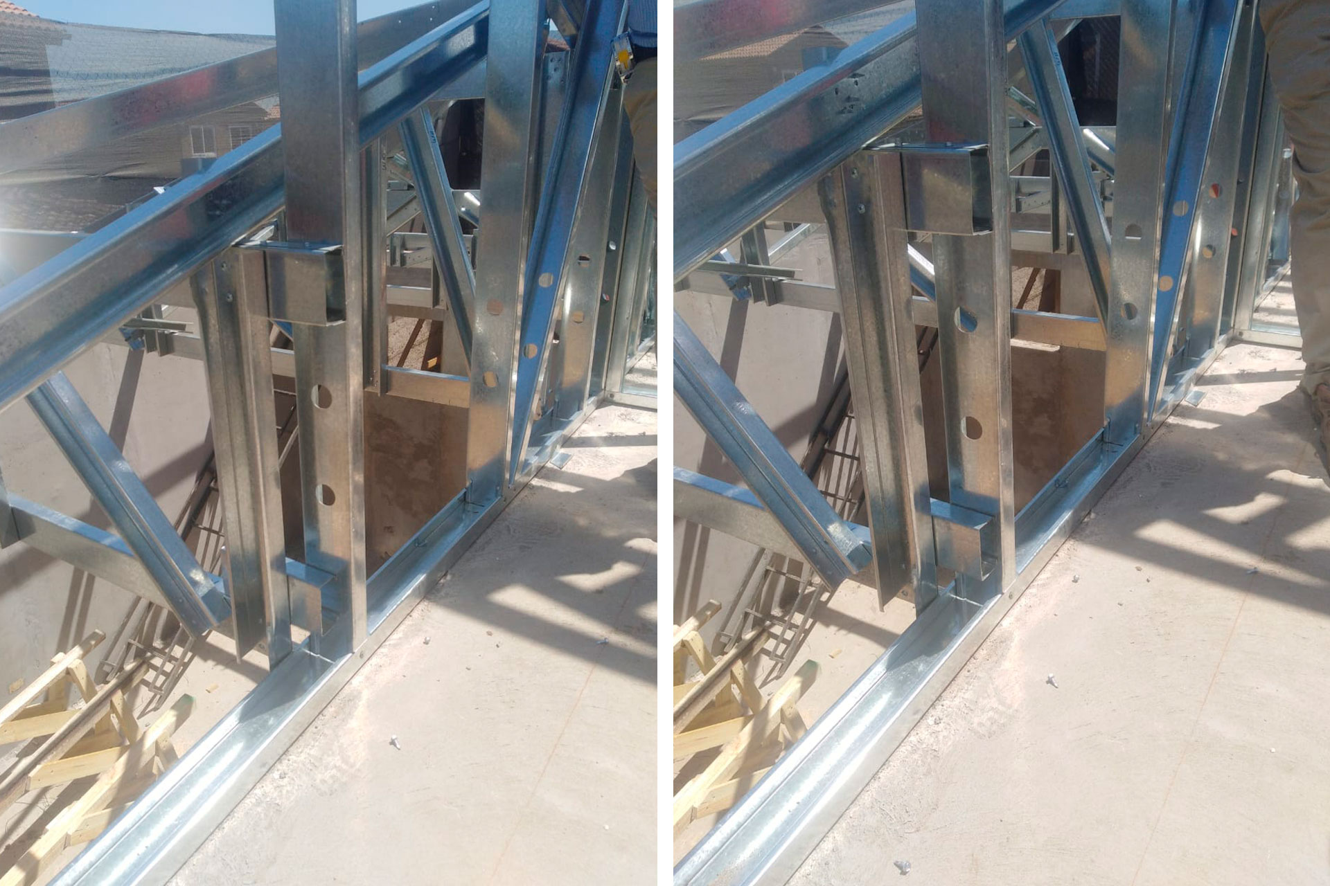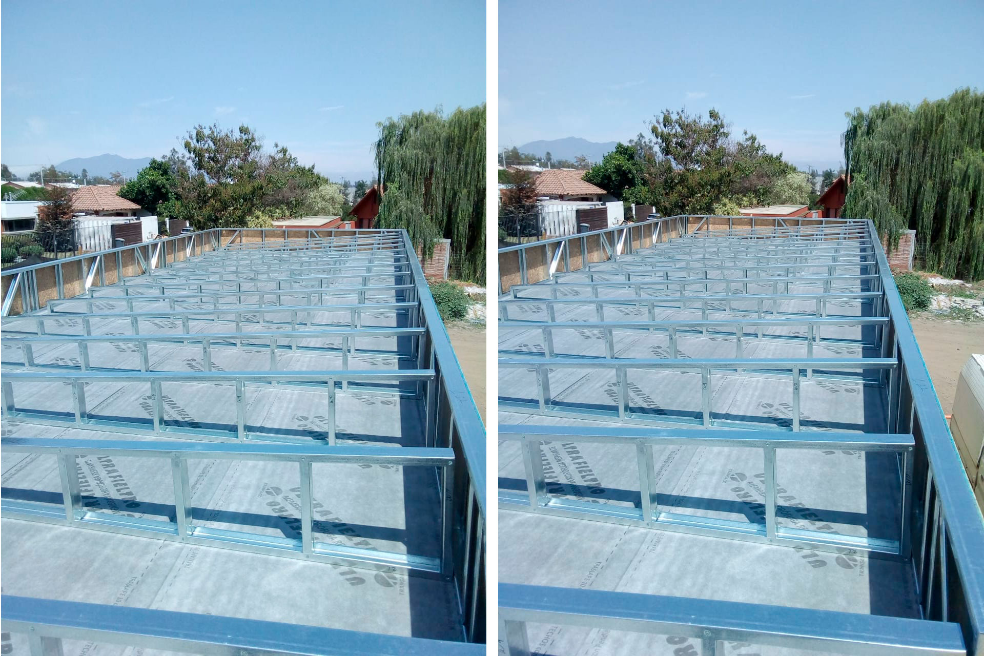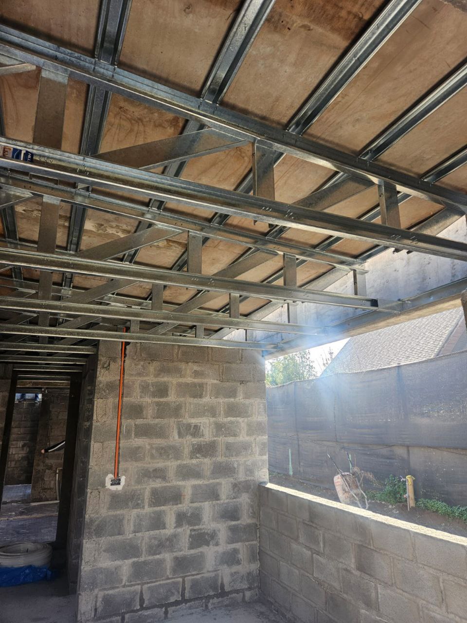 Se instaló una techumbre fabricada en acero liviano con sistema steelframe, diseñada con precisión milimétrica para ajustarse perfectamente a la estructura existente. Esta solución rápida, resistente y exacta demuestra la versatilidad del sistema Steel Frame en aplicaciones específicas como techumbres personalizadas.