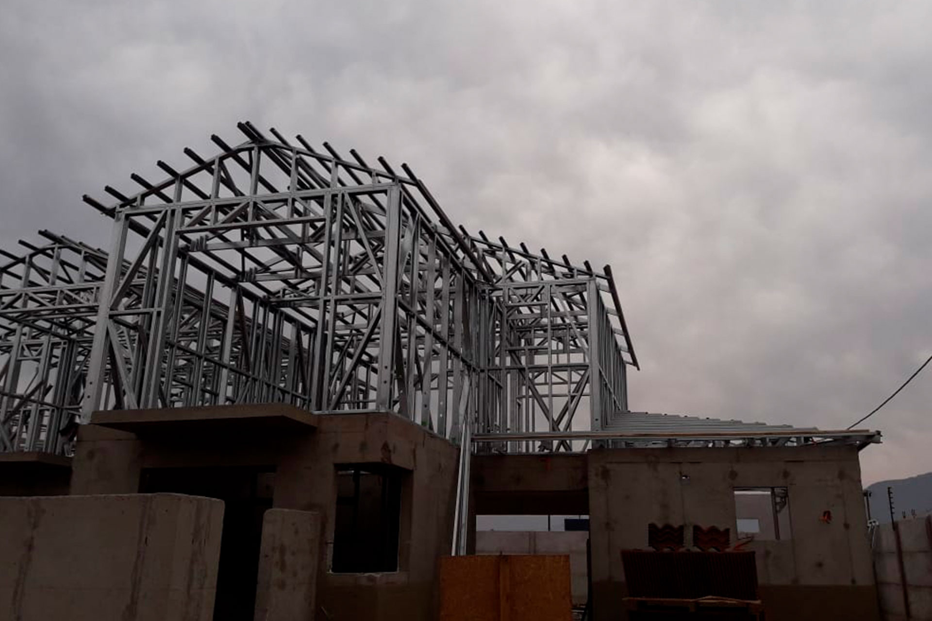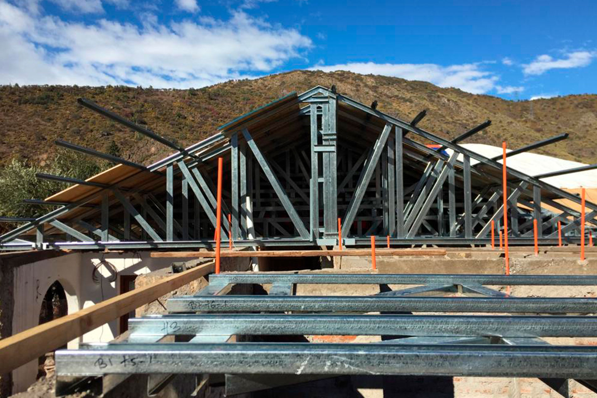 Estructura tecnificada de acero liviano para segundo piso con diseño de techo estilo mediterráneo.