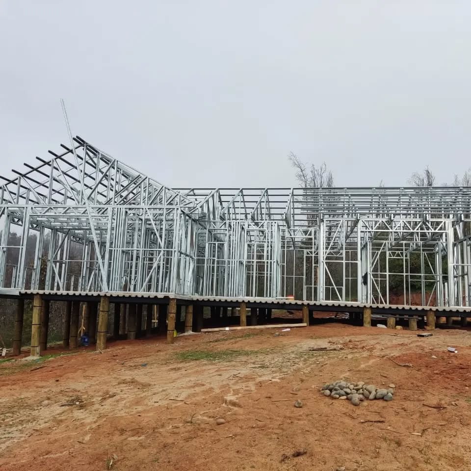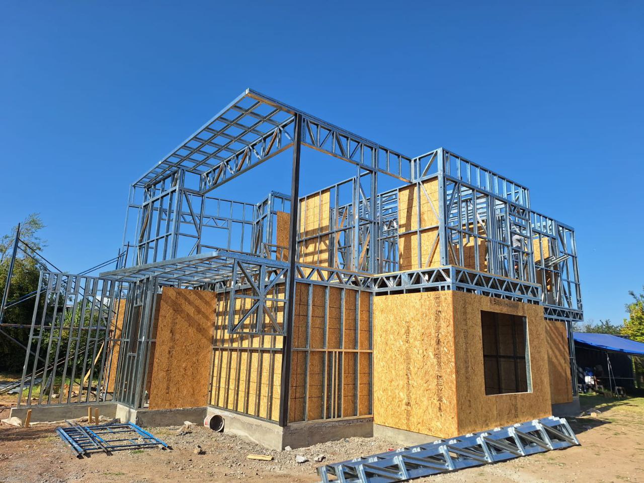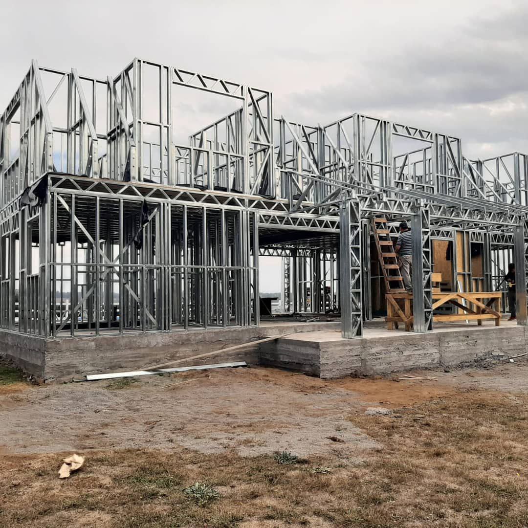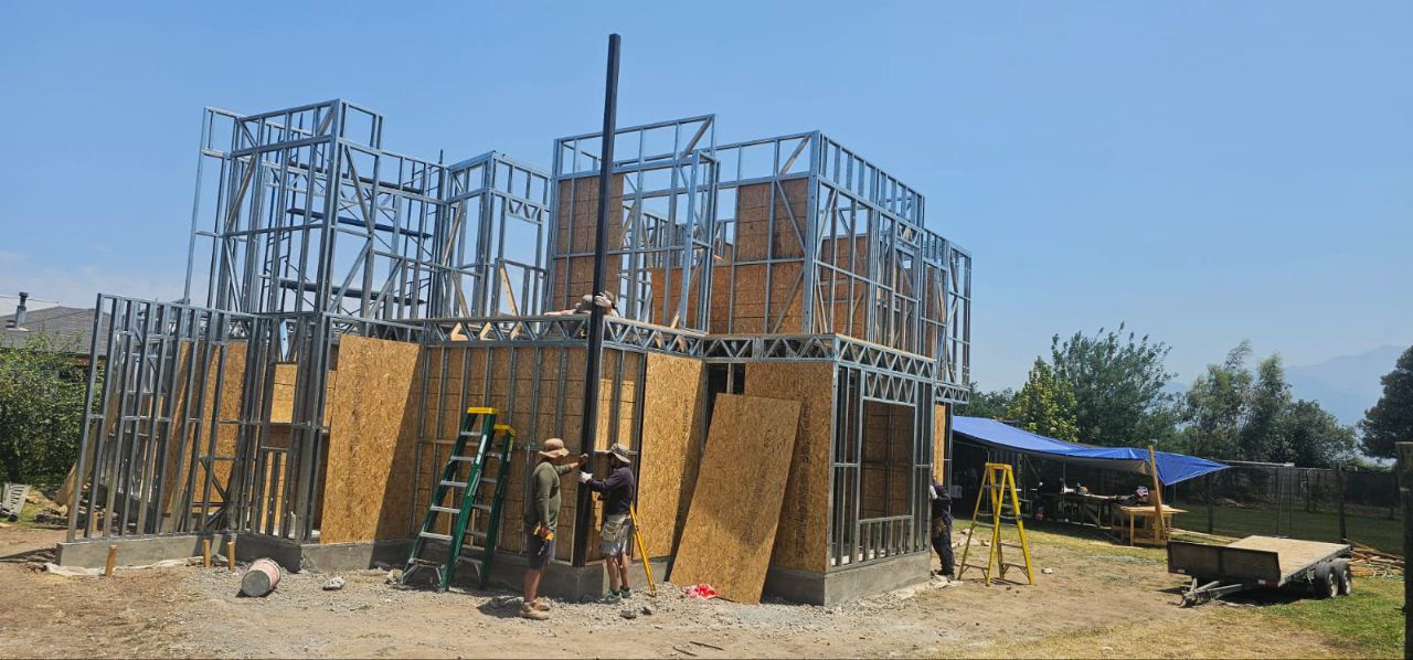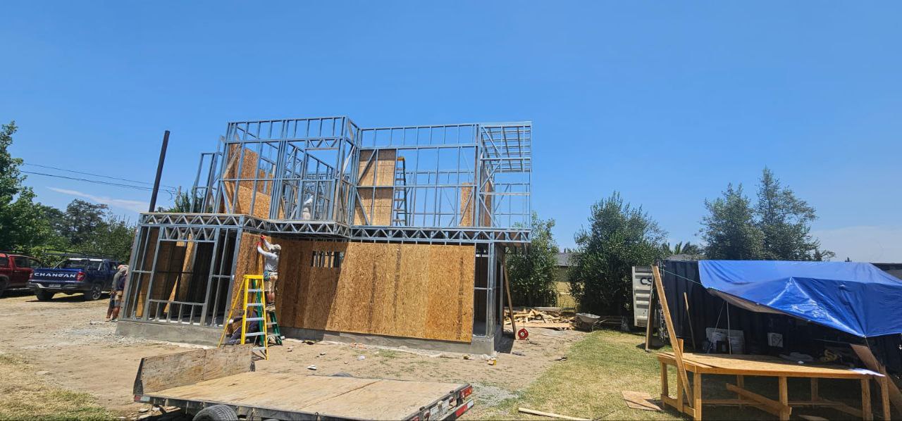 El proyecto destaca por la robustez y limpieza estructural, permitiendo levantar una vivienda de dos niveles en poco tiempo y con gran eficiencia constructiva. Se realizó el montaje de una estructura de acero liviano prefabricada para una casa de dos pisos, utilizando el sistema SteelFrame.