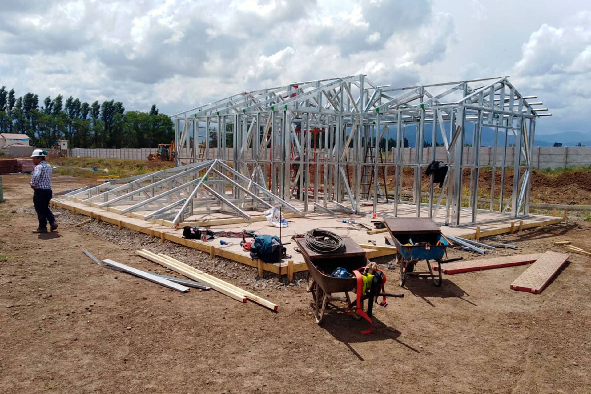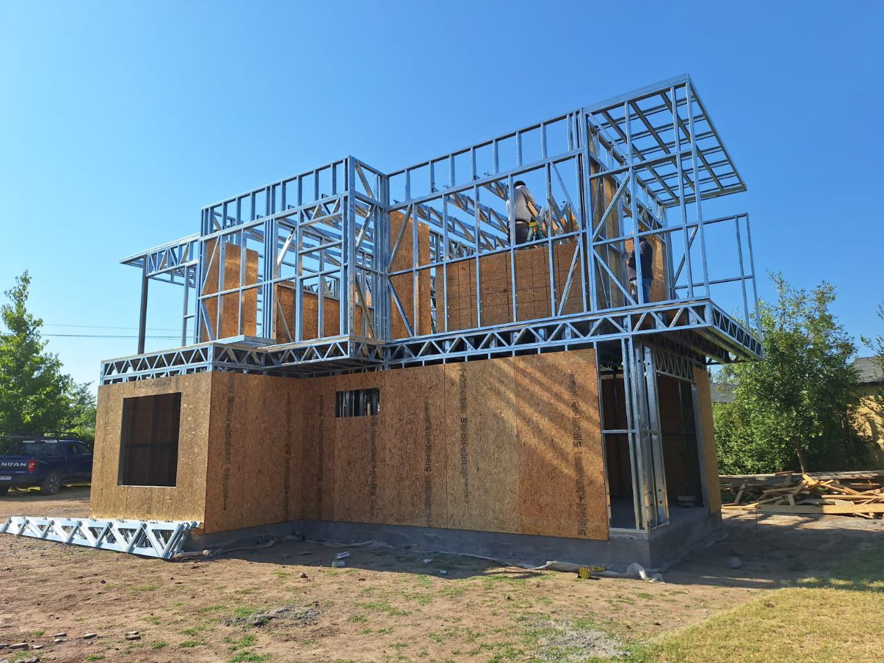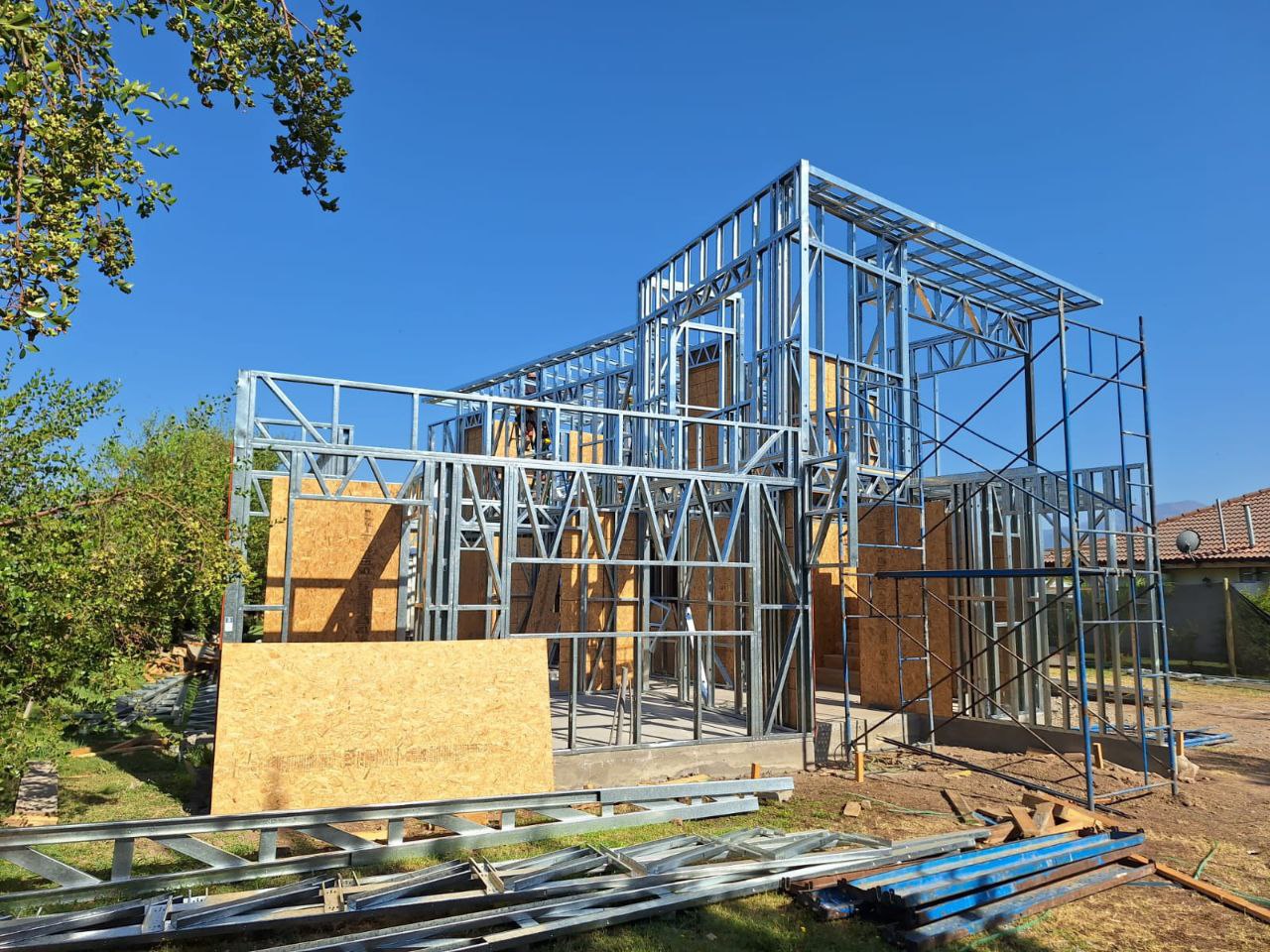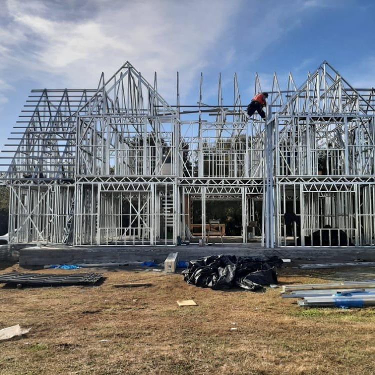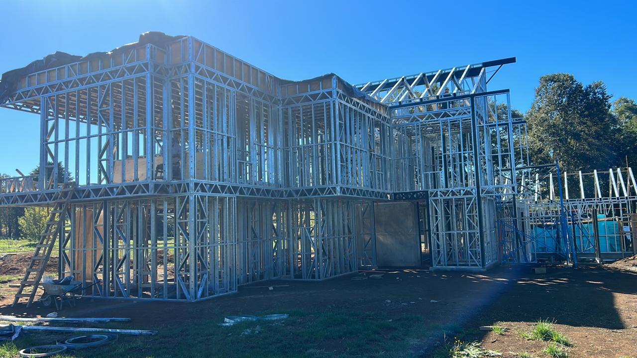 El proyecto destaca por la robustez y limpieza estructural, permitiendo levantar una vivienda de dos niveles en poco tiempo y con gran eficiencia constructiva. Se realizó el montaje de una estructura de acero liviano prefabricada para una casa de dos pisos, utilizando el sistema SteelFrame.