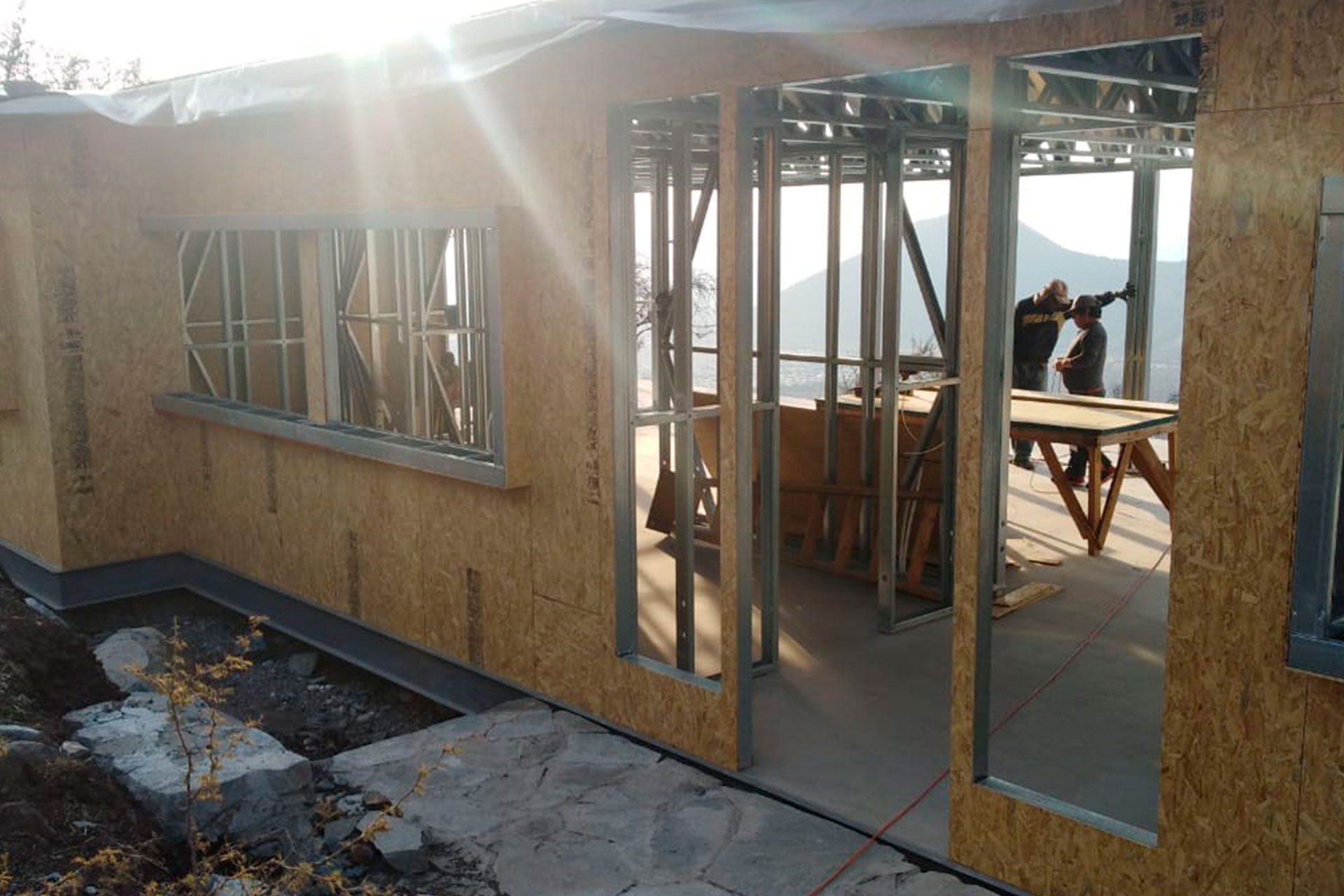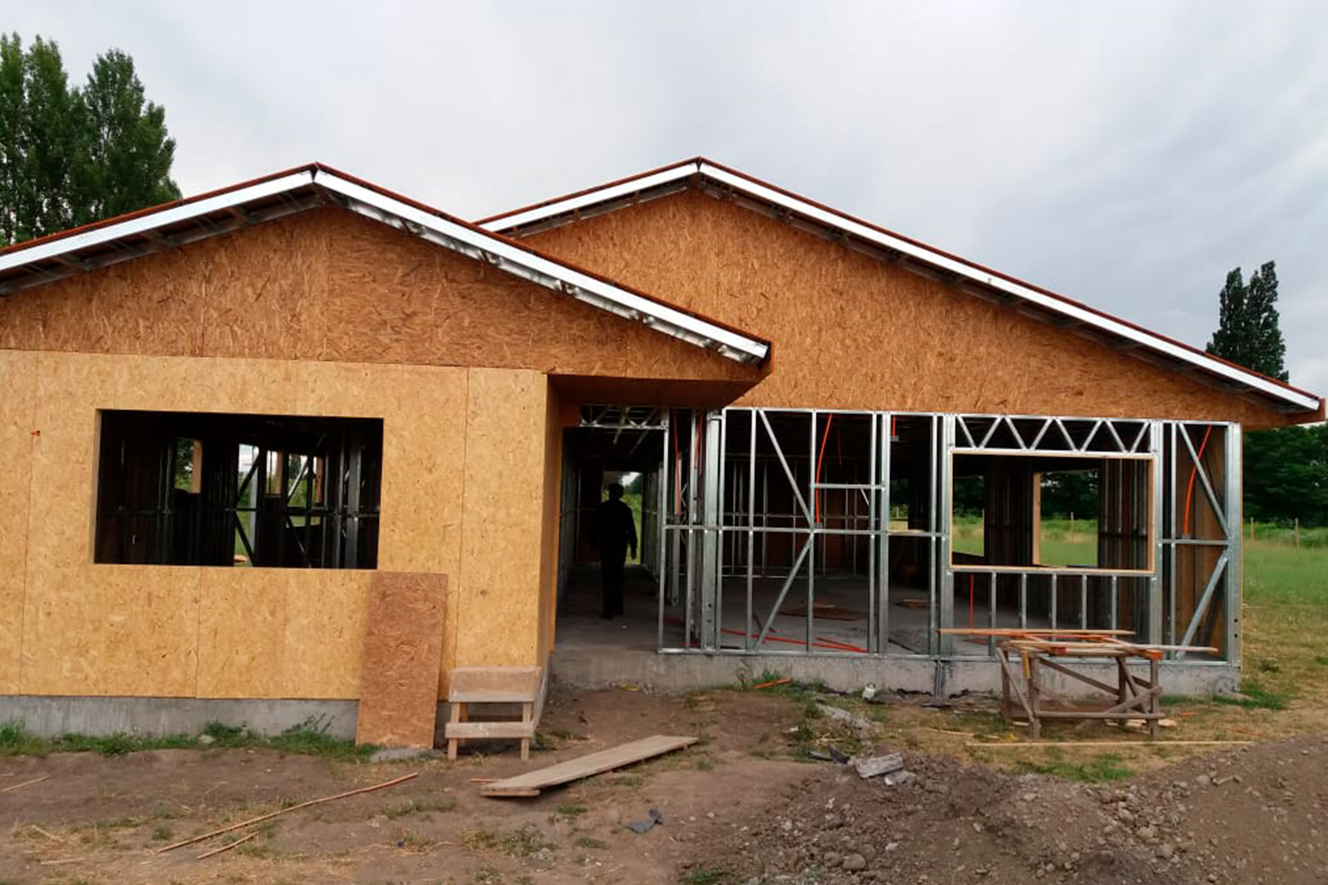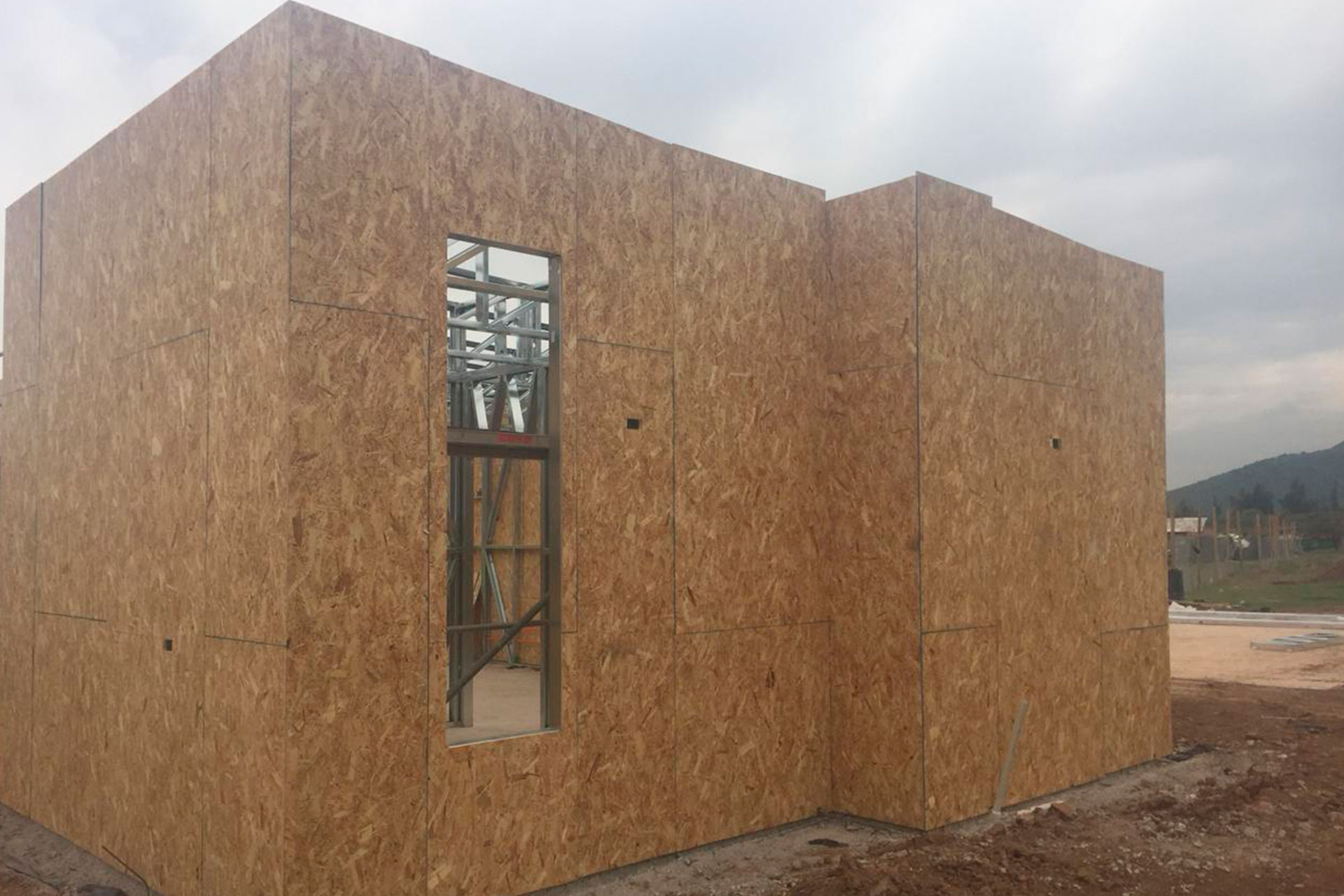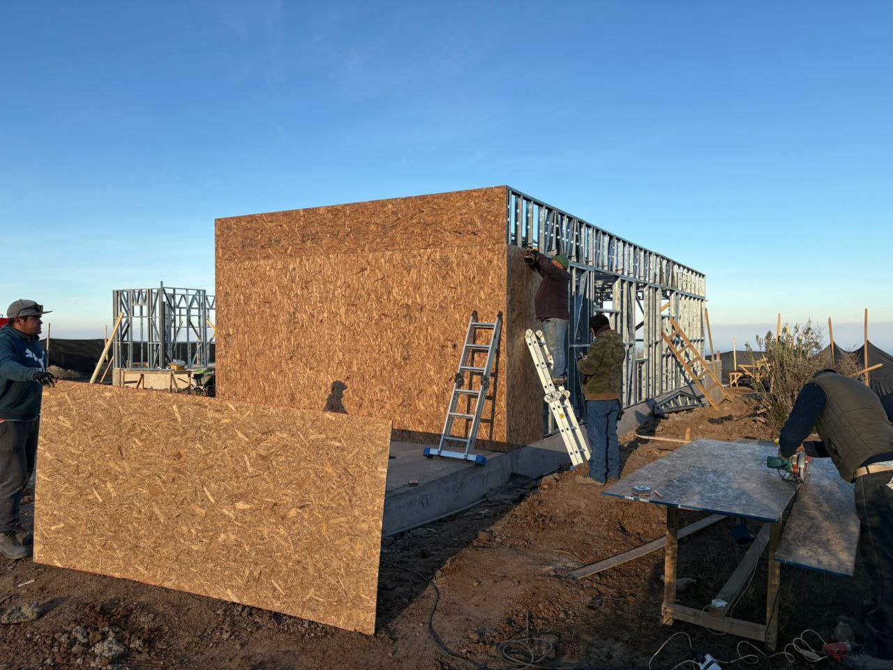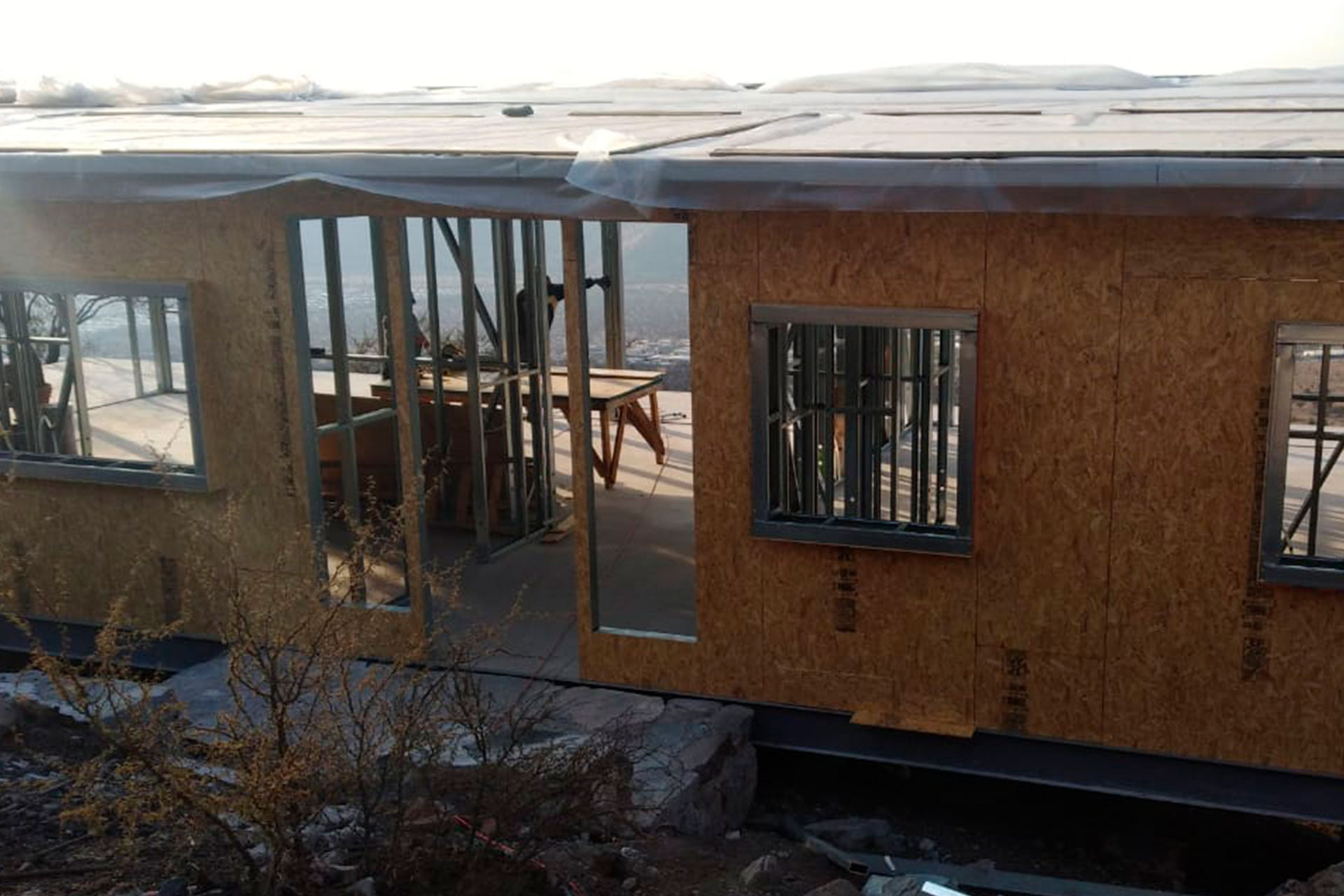 El sistema fue anclado sobre fundación corrida de hormigón armado y preparado para recibir cerramientos con OSB estructural, lo que permite una rápida continuidad en obra seca. Esta estructura aporta rigidez, estabilidad dimensional y una base técnica sólida para avanzar hacia terminaciones interiores y exteriores.