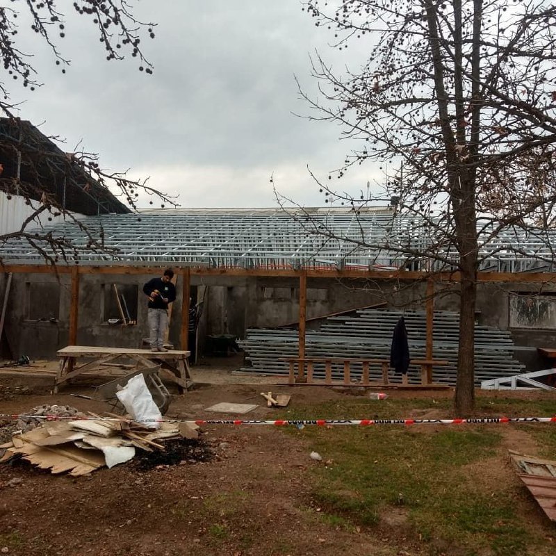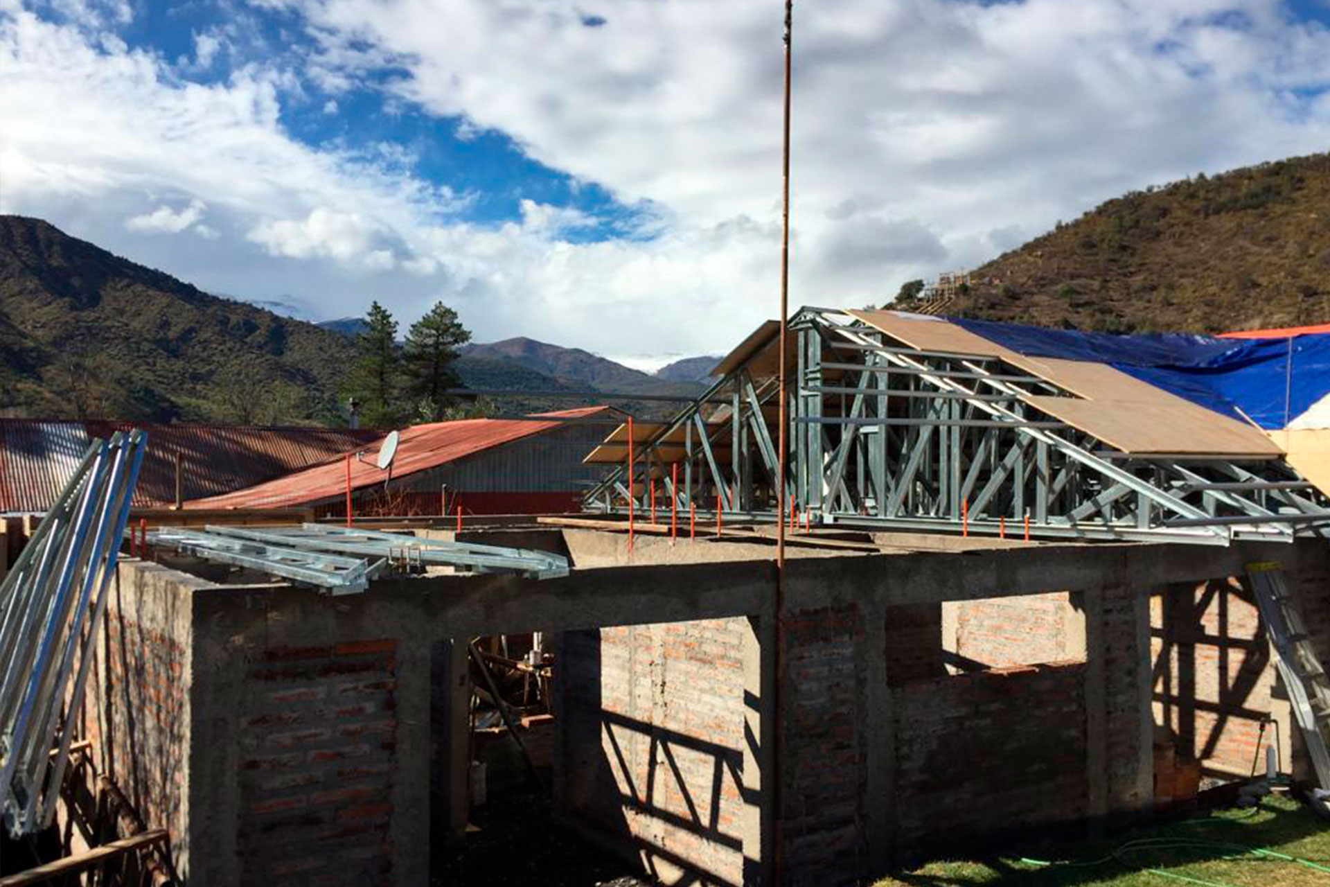 Montaje de techumbre para colegio en Colina con cerchas prefabricadas.