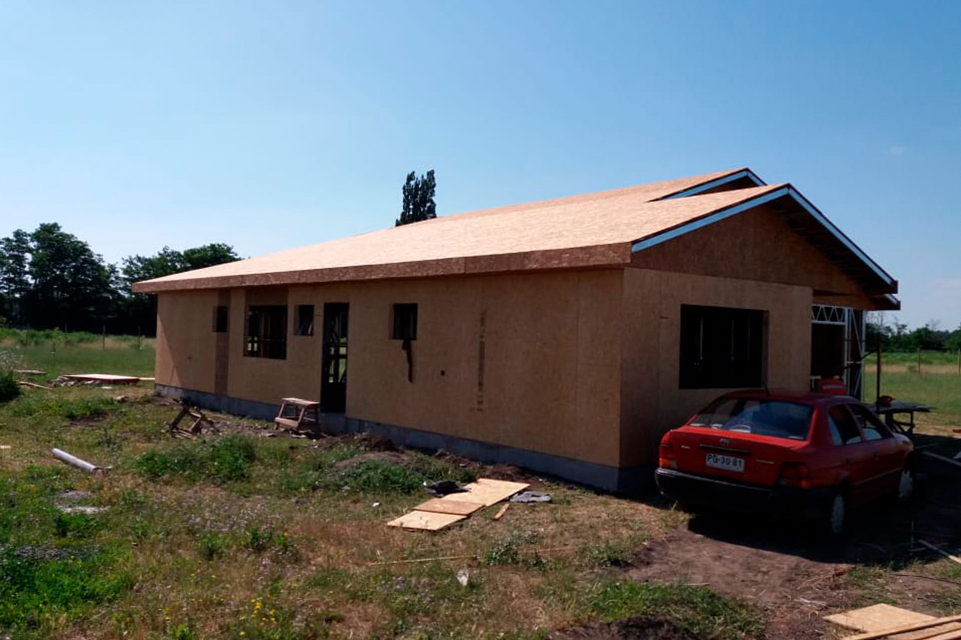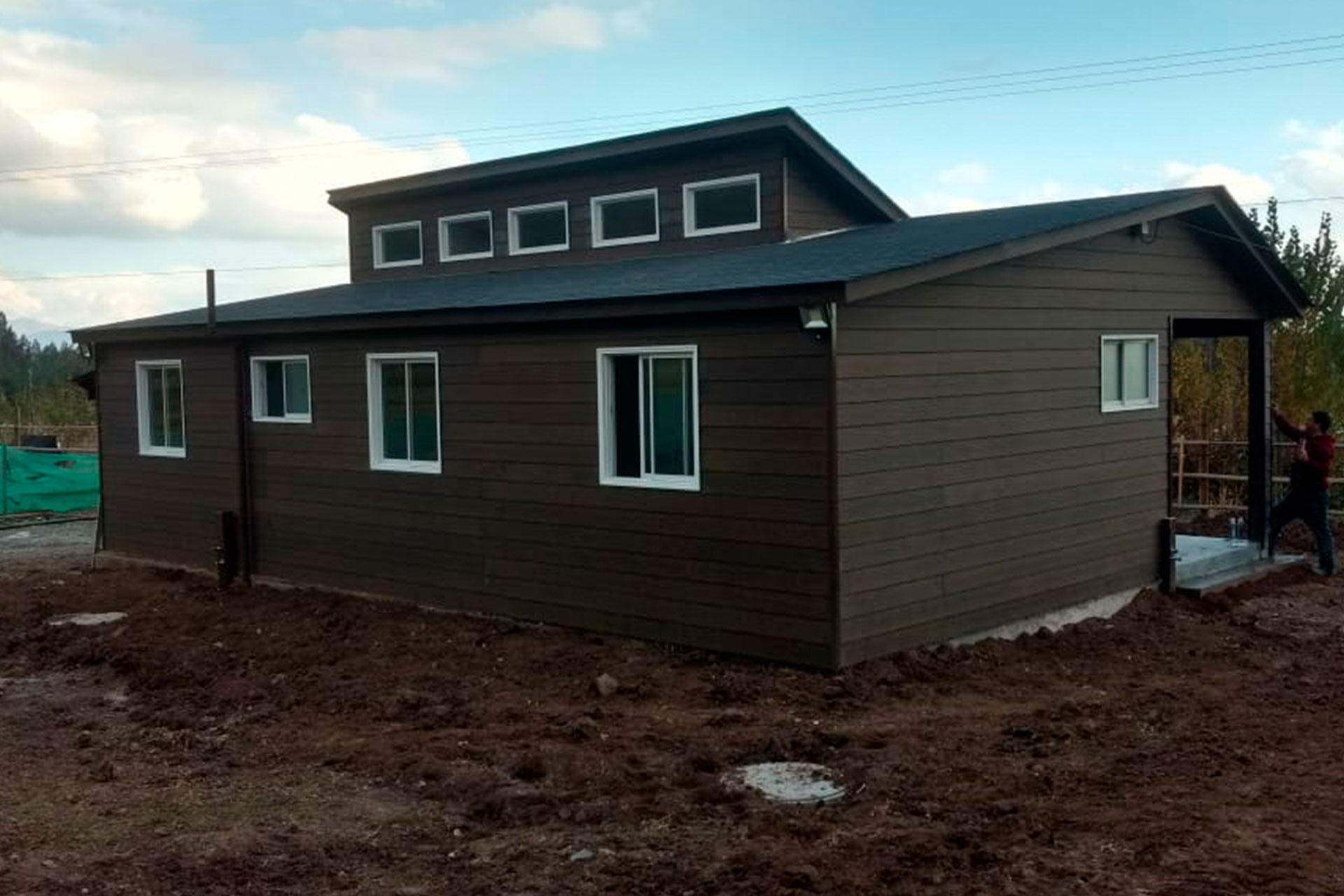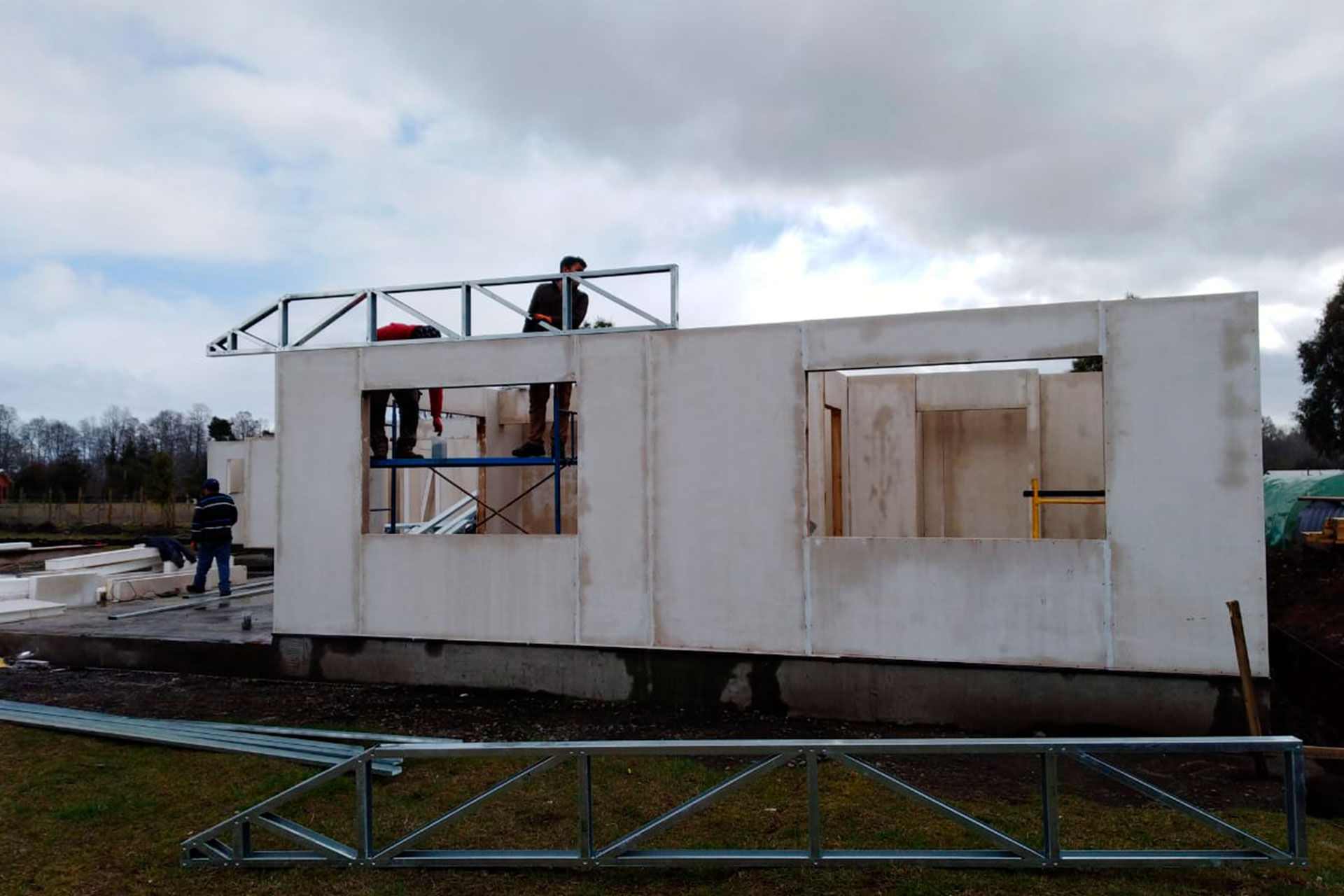 Estructura prefabricada con techo inclinado, armada e instalada por el cliente en Puerto Varas.