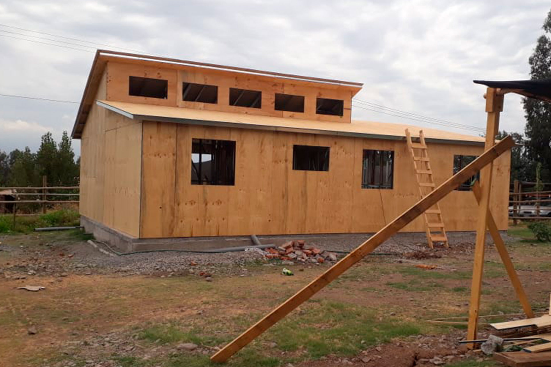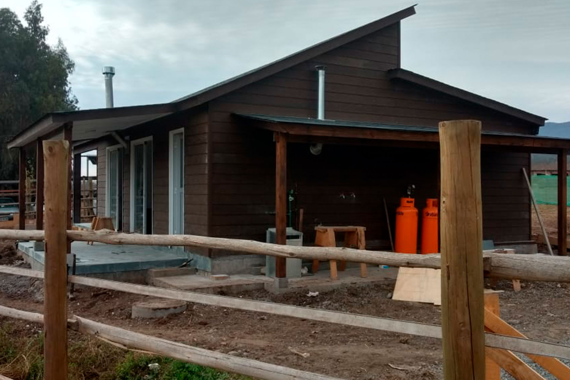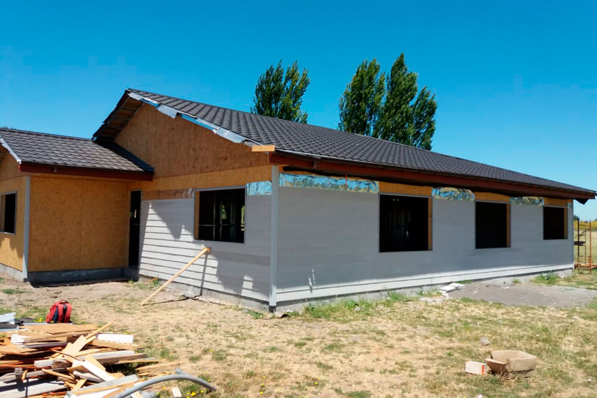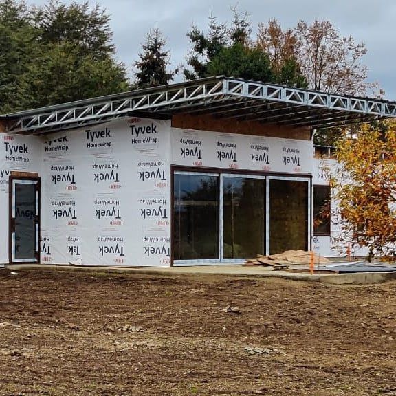 Estructura prefabricada con techo inclinado, armada e instalada por el cliente en Puerto Varas.