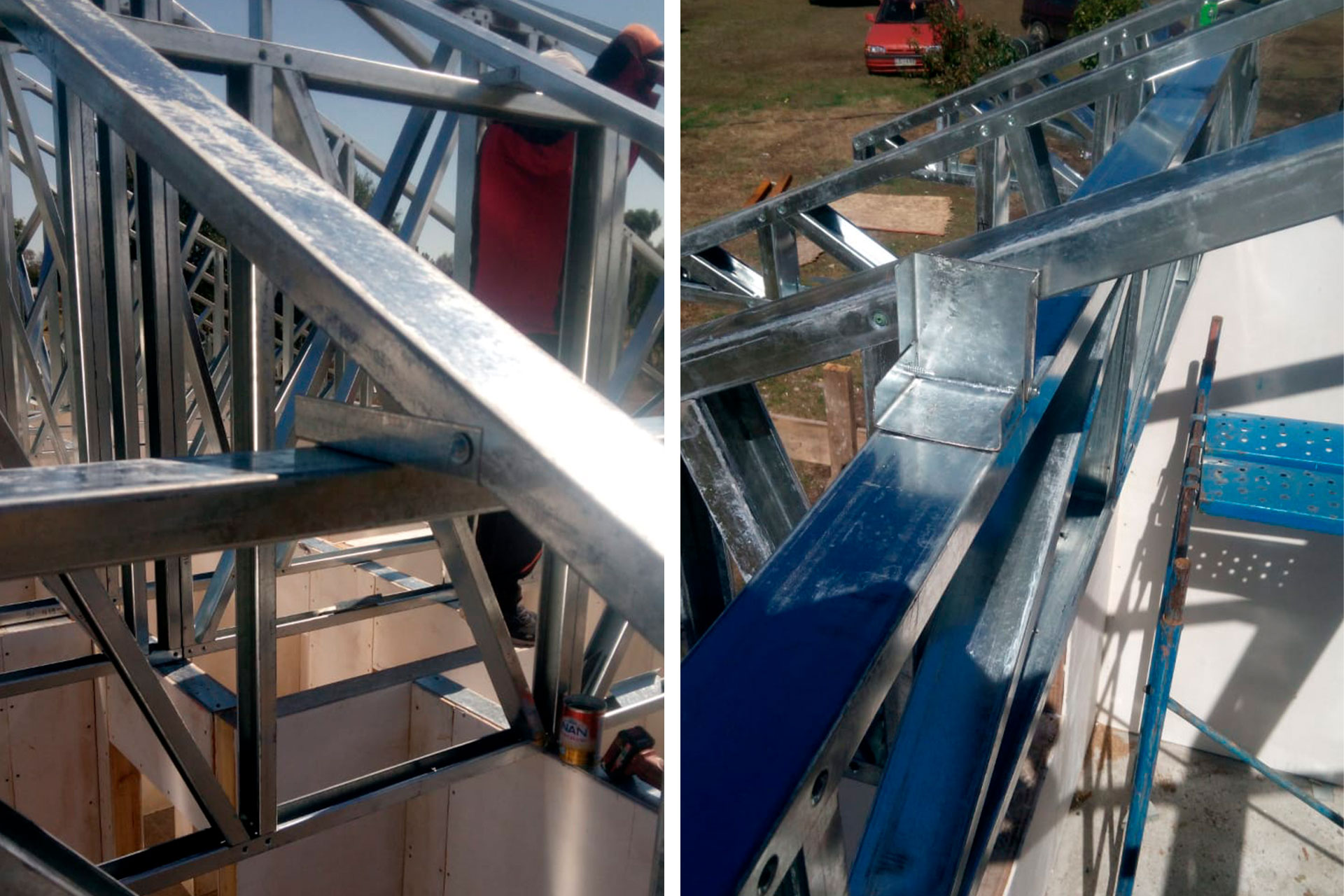 Estructura de acero galvanizado, entregada desarmada y montada por el cliente.