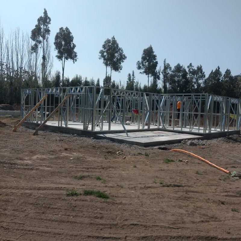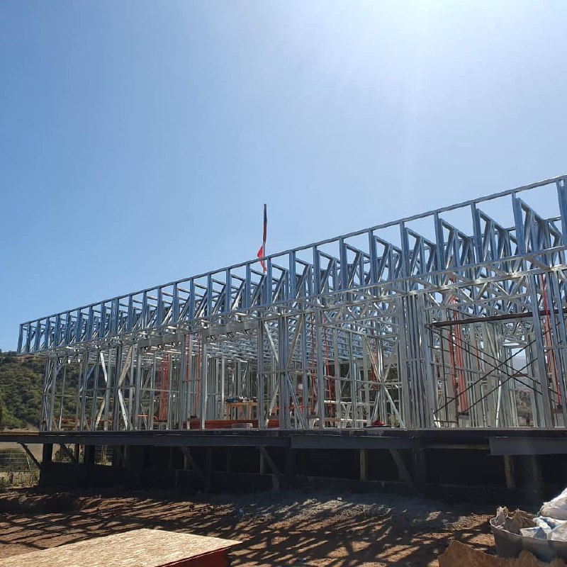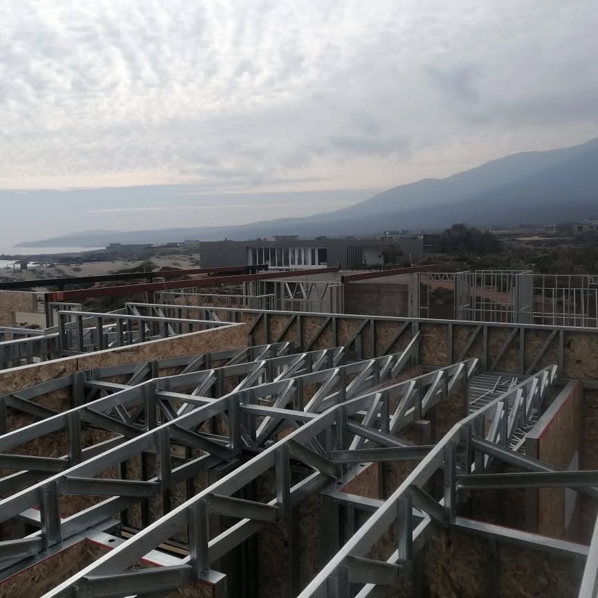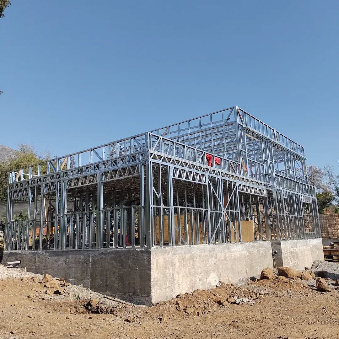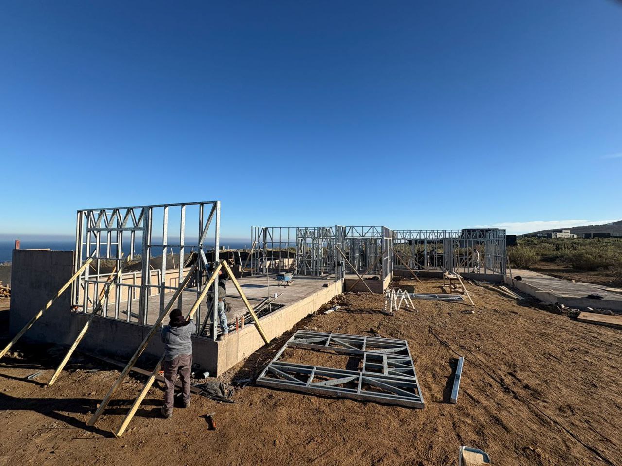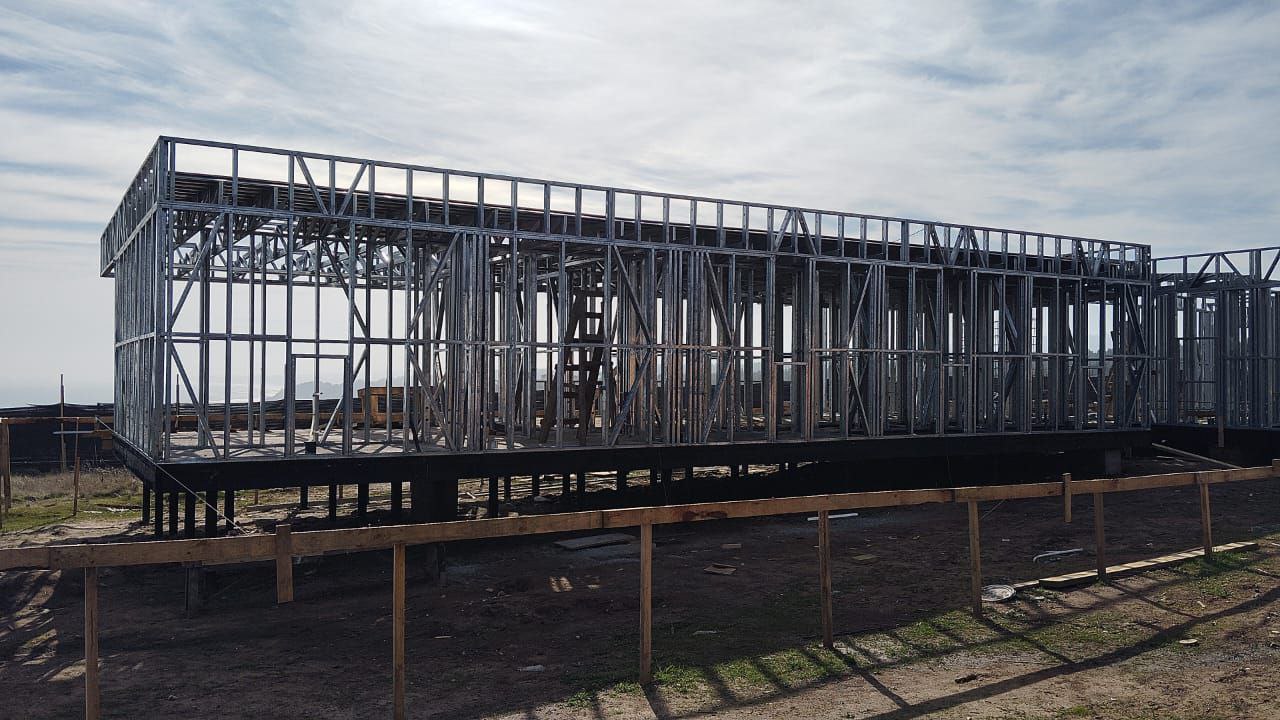 Este proyecto en Bucalemu corresponde a la primera etapa de una vivienda estructurada completamente en acero galvanizado tipo Steel Frame. La obra ya cuenta con la instalación de paneles exteriores con OSB y una cimentación elevada para protección contra humedad. Este tipo de construcción ofrece alta resistencia, menor tiempo de ejecución y eficiencia térmica y estructural, ideal para zonas costeras como Bucalemu. La estructura ya está lista para continuar con el proceso de cerramientos e instalaciones.