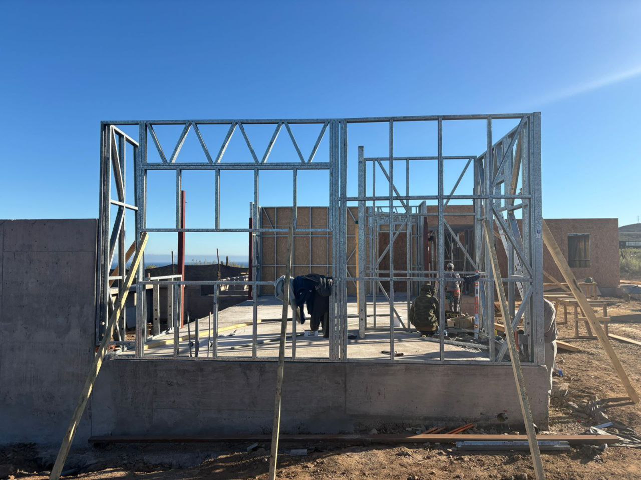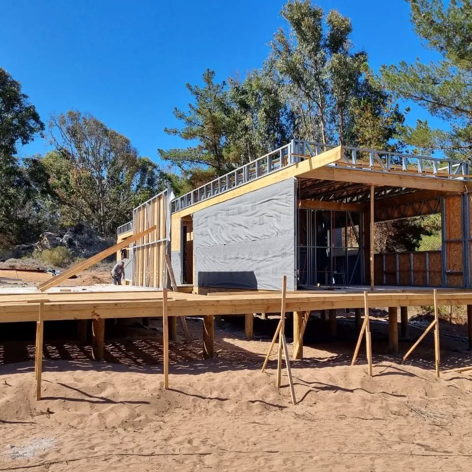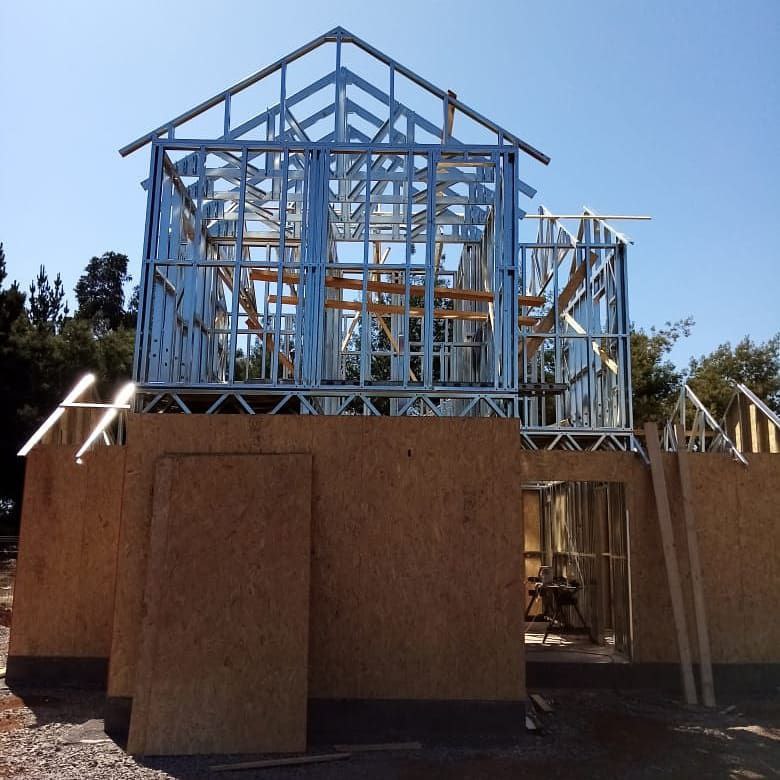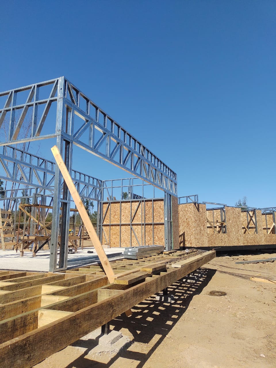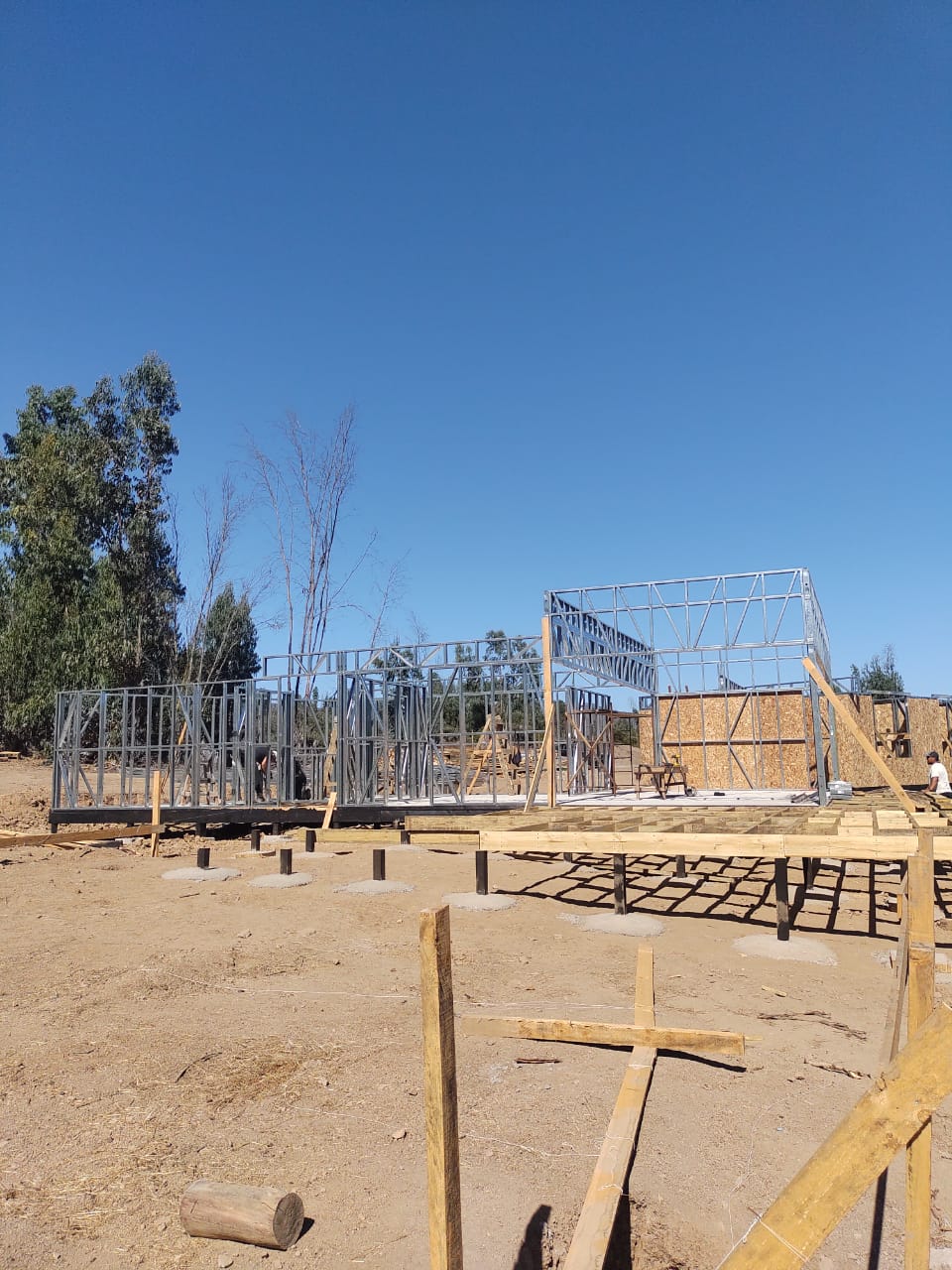 Este proyecto en Bucalemu corresponde a la primera etapa de una vivienda estructurada completamente en acero galvanizado tipo Steel Frame. La obra ya cuenta con la instalación de paneles exteriores con OSB y una cimentación elevada para protección contra humedad. Este tipo de construcción ofrece alta resistencia, menor tiempo de ejecución y eficiencia térmica y estructural, ideal para zonas costeras como Bucalemu. La estructura ya está lista para continuar con el proceso de cerramientos e instalaciones.
