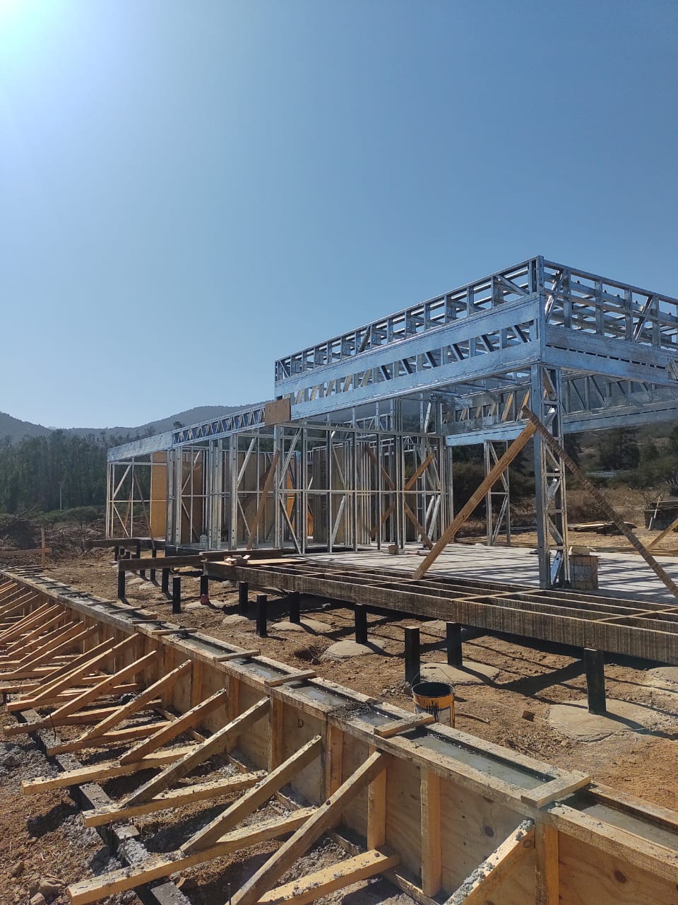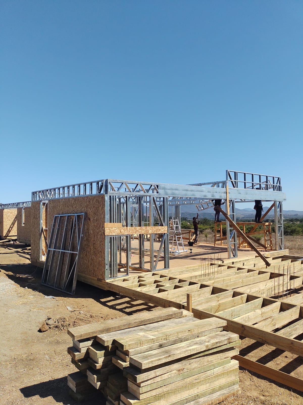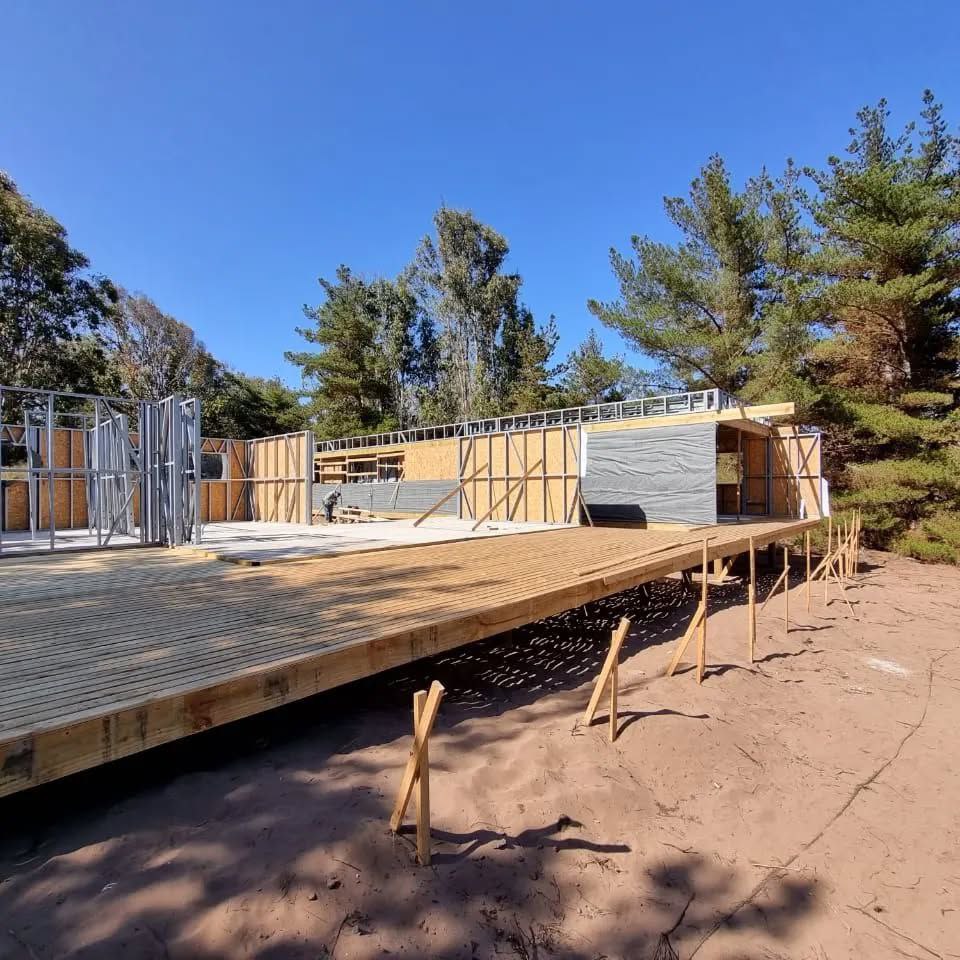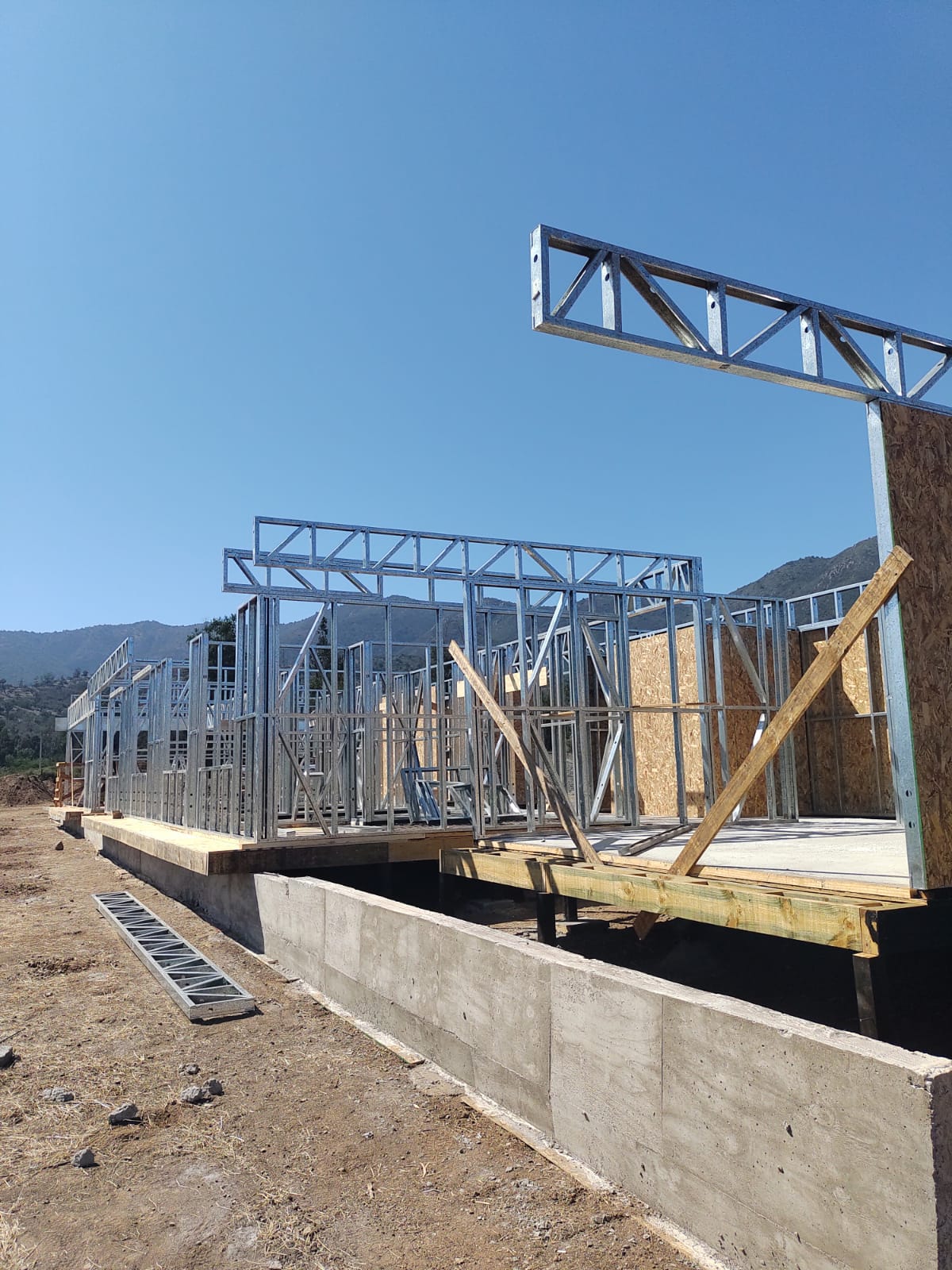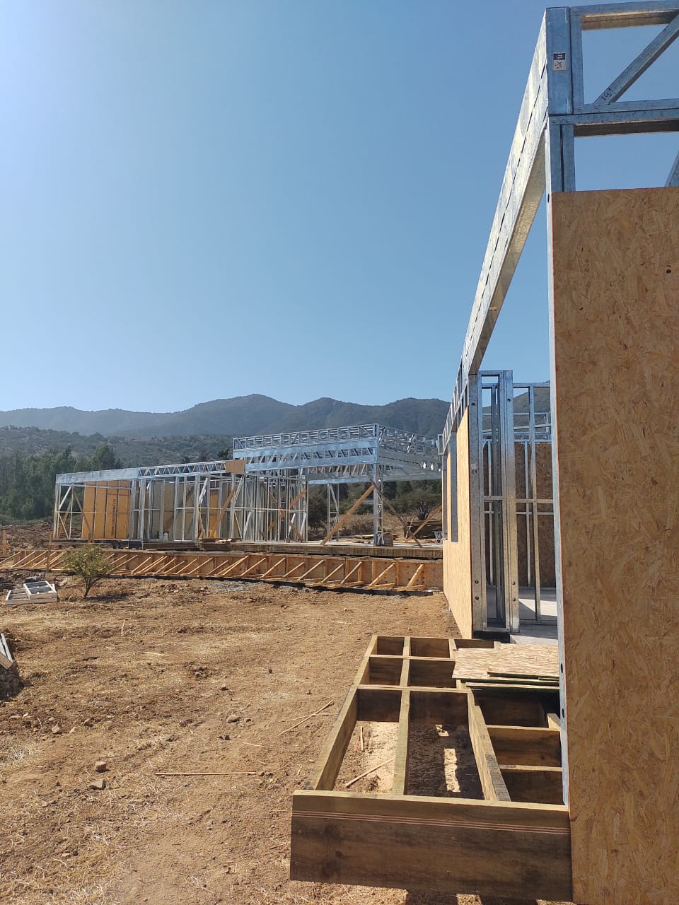 Este proyecto en Bucalemu corresponde a la primera etapa de una vivienda estructurada completamente en acero galvanizado tipo Steel Frame. La obra ya cuenta con la instalación de paneles exteriores con OSB y una cimentación elevada para protección contra humedad. Este tipo de construcción ofrece alta resistencia, menor tiempo de ejecución y eficiencia térmica y estructural, ideal para zonas costeras como Bucalemu. La estructura ya está lista para continuar con el proceso de cerramientos e instalaciones.