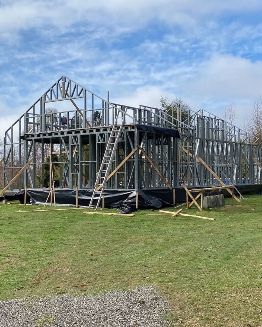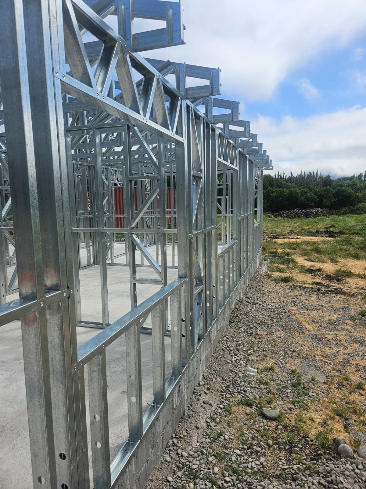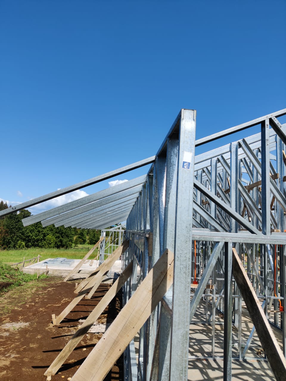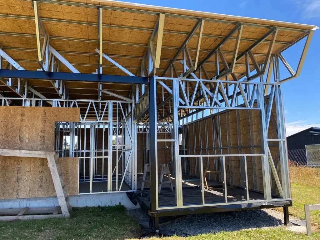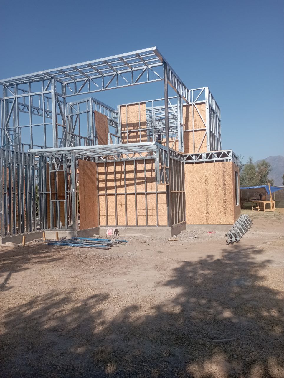 Este proyecto en Bucalemu corresponde a la primera etapa de una vivienda estructurada completamente en acero galvanizado tipo Steel Frame. La obra ya cuenta con la instalación de paneles exteriores con OSB y una cimentación elevada para protección contra humedad. Este tipo de construcción ofrece alta resistencia, menor tiempo de ejecución y eficiencia térmica y estructural, ideal para zonas costeras como Bucalemu. La estructura ya está lista para continuar con el proceso de cerramientos e instalaciones.