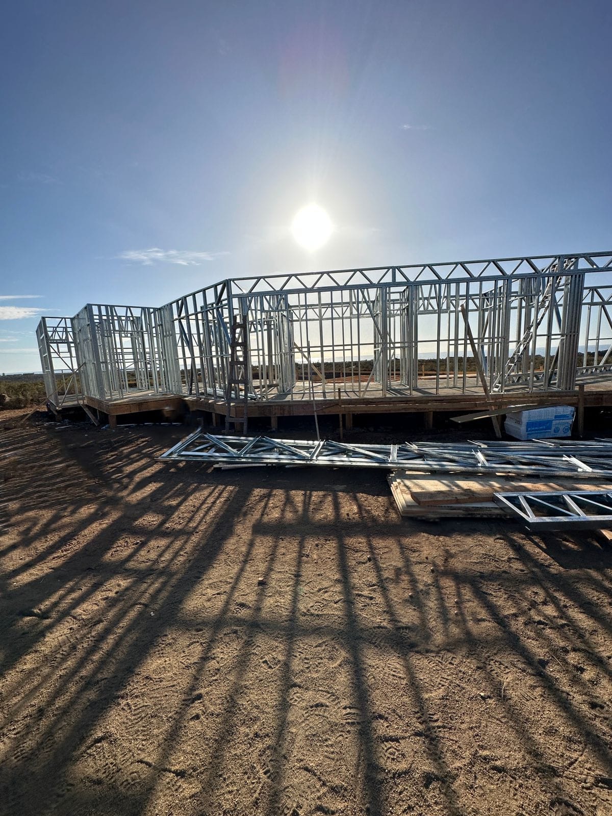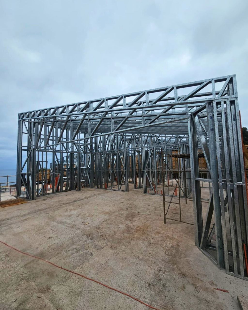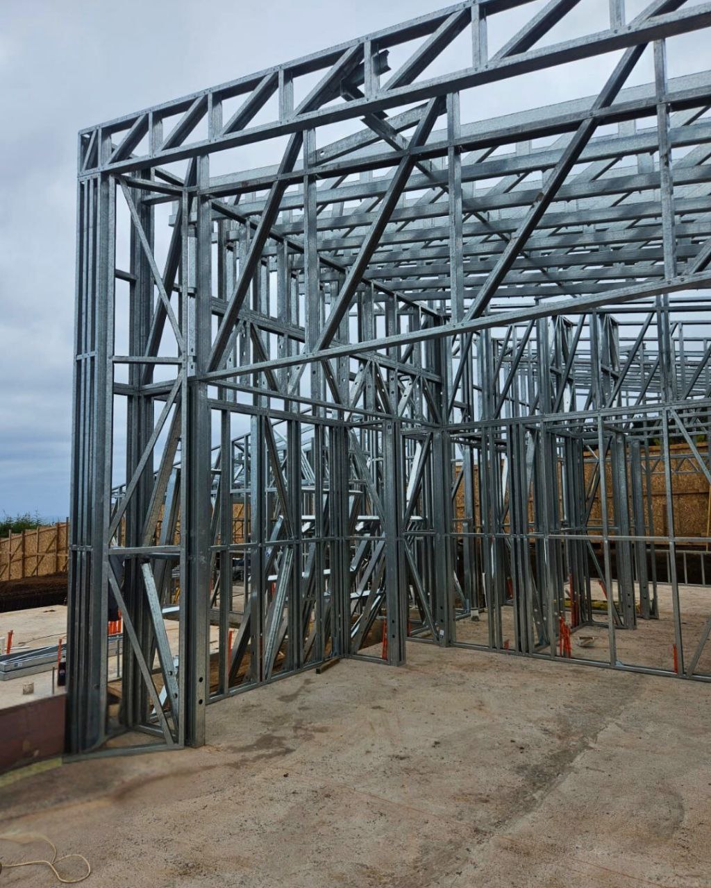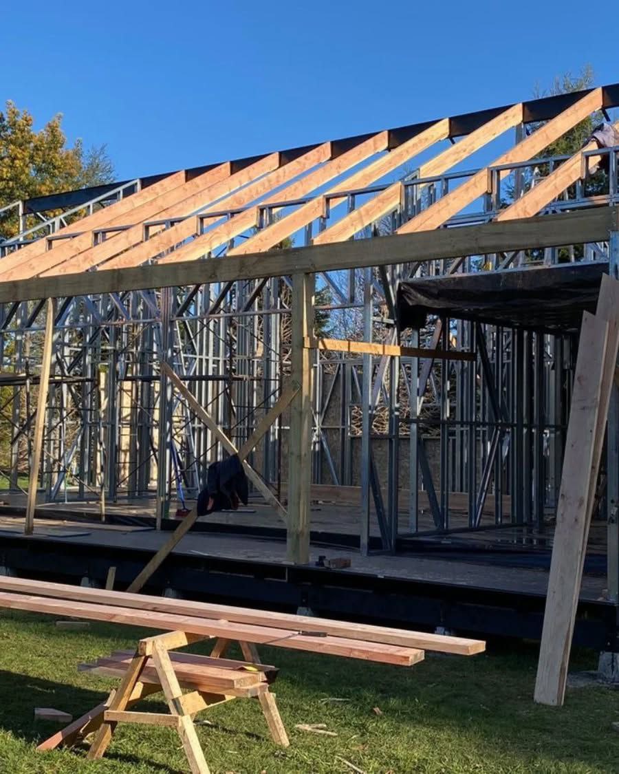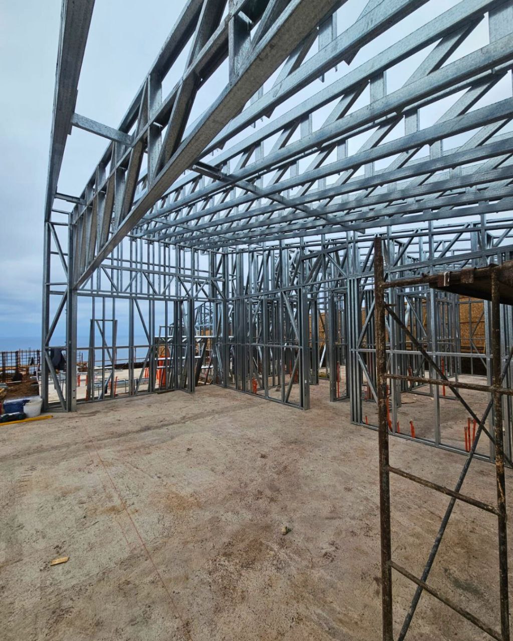 Este proyecto en Bucalemu corresponde a la primera etapa de una vivienda estructurada completamente en acero galvanizado tipo Steel Frame. La obra ya cuenta con la instalación de paneles exteriores con OSB y una cimentación elevada para protección contra humedad. Este tipo de construcción ofrece alta resistencia, menor tiempo de ejecución y eficiencia térmica y estructural, ideal para zonas costeras como Bucalemu. La estructura ya está lista para continuar con el proceso de cerramientos e instalaciones.