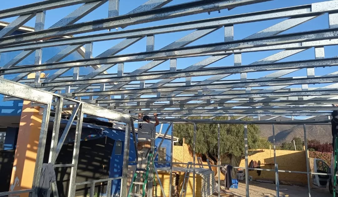 Instalación de techumbre con estructura Steel Frame, diseñada a la medida en Graneros, Rancagua.