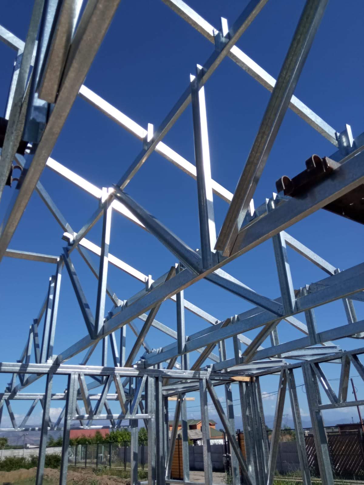 Fabricación y montaje de cerchas metálicas para techumbre en obra ubicada en Chicureo. Trabajo enfocado exclusivamente en la estructura superior.