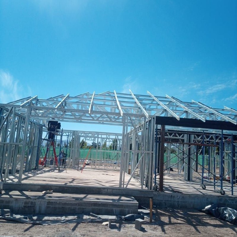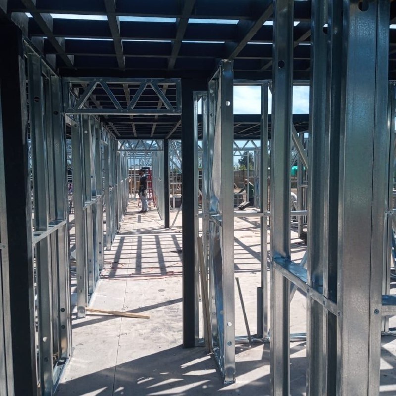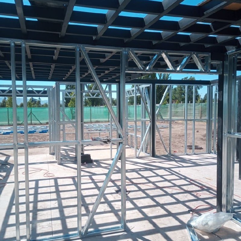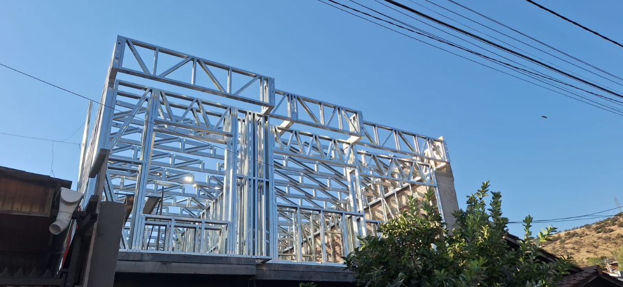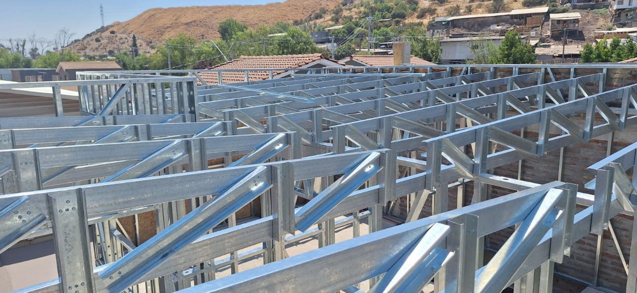 Se utilizaron perfiles de acero galvanizado de 90 mm de alma, entregando una estructura liviana, resistente y con excelente comportamiento frente a cargas y esfuerzos.