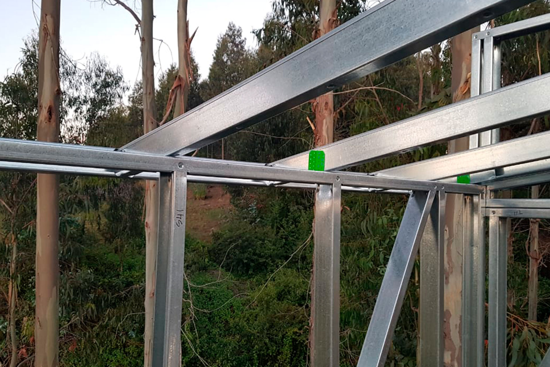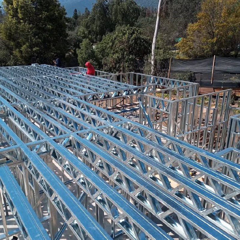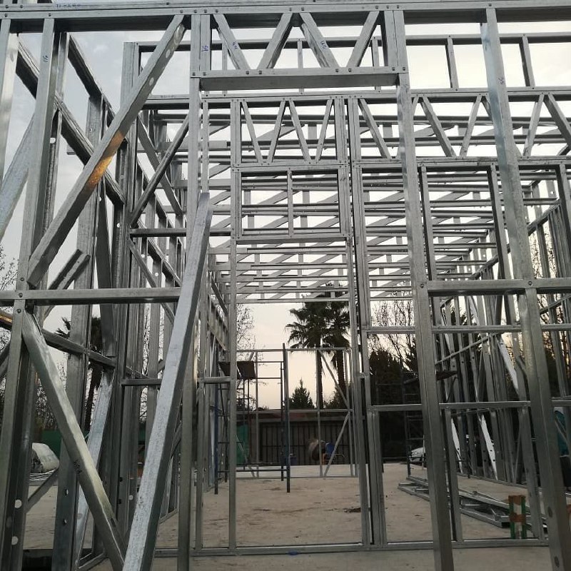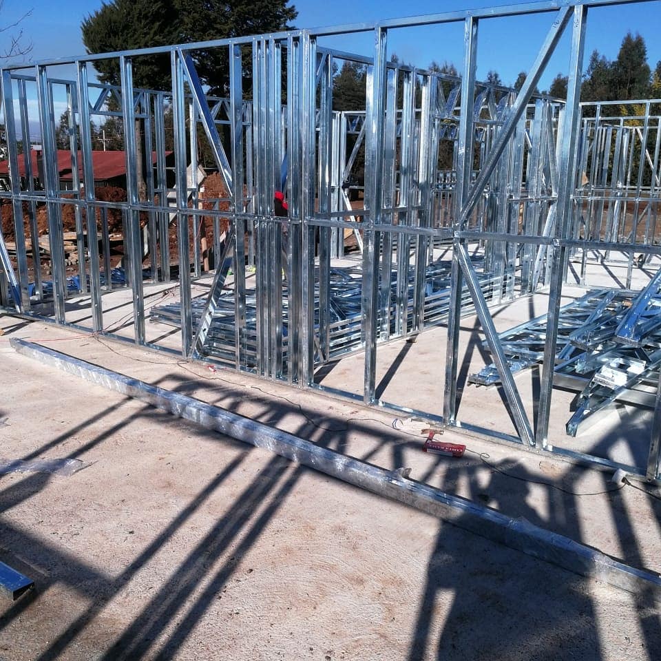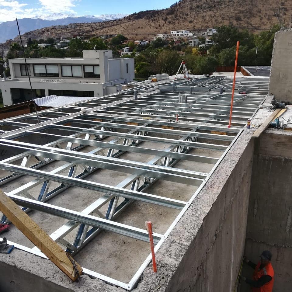 Se utilizaron perfiles de acero galvanizado de 90 mm de alma, entregando una estructura liviana, resistente y con excelente comportamiento frente a cargas y esfuerzos.