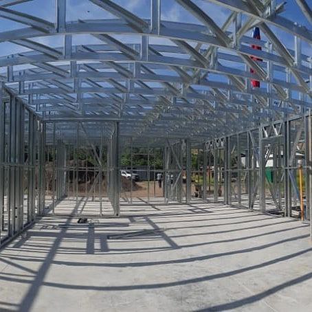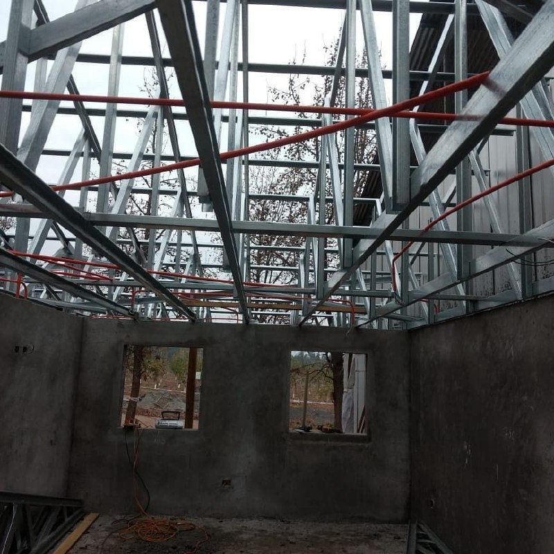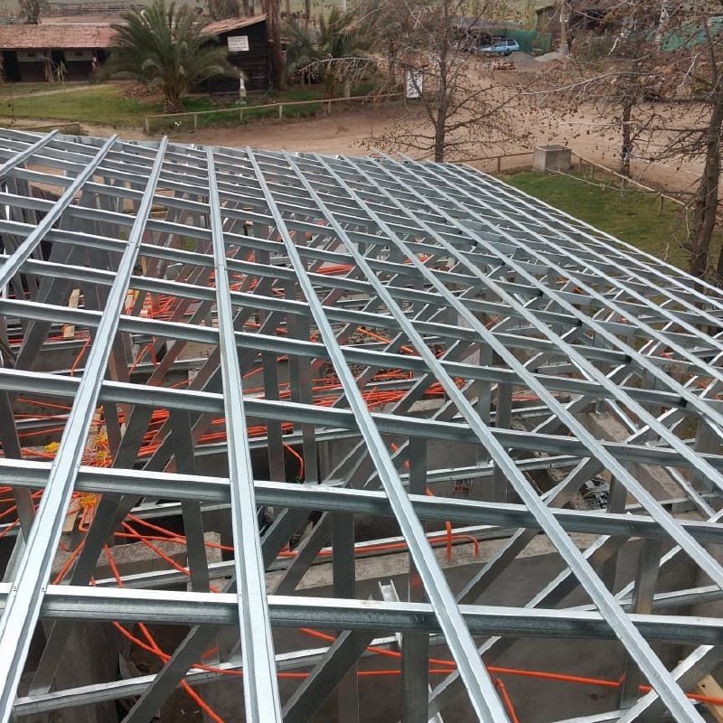 se ejecutó exclusivamente la fabricación de cerchas estructurales de acero galvanizado tipo Steel Frame. Estas cerchas fueron diseñadas para cubrir grandes luces sin comprometer la estabilidad estructural del techo, permitiendo una correcta distribución de cargas y una óptima resistencia al viento y a la humedad.