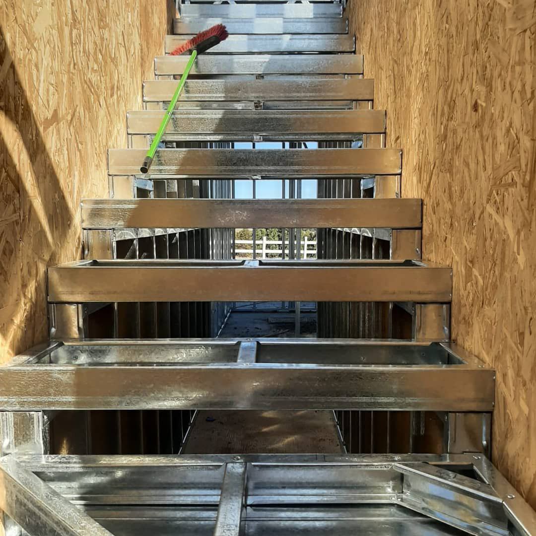 El diseño incluyó una escalera estructural hecha también con perfiles de acero, completamente integrada a la estructura general.