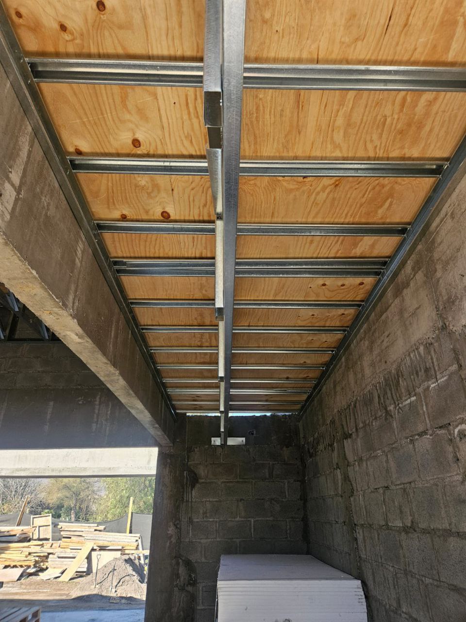 En este proyecto, los tabiques interiores no solo cumplen función de división, sino que también aportan estructuralmente, lo que permitió reducir el uso de canales y optimizar la distribución de cargas.