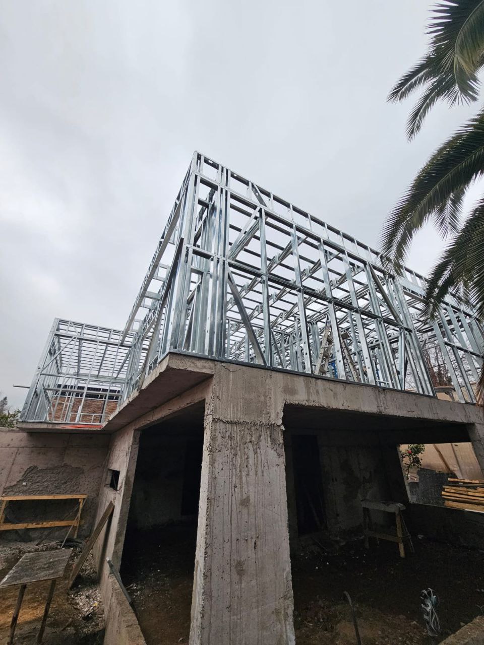 Se utilizó estructura de acero liviano tecnificado para la ampliación de un segundo piso, integrando un diseño moderno con techo tipo mediterráneo. Esta solución permite una construcción más rápida, limpia y liviana, sin comprometer la resistencia ni el diseño arquitectónico.